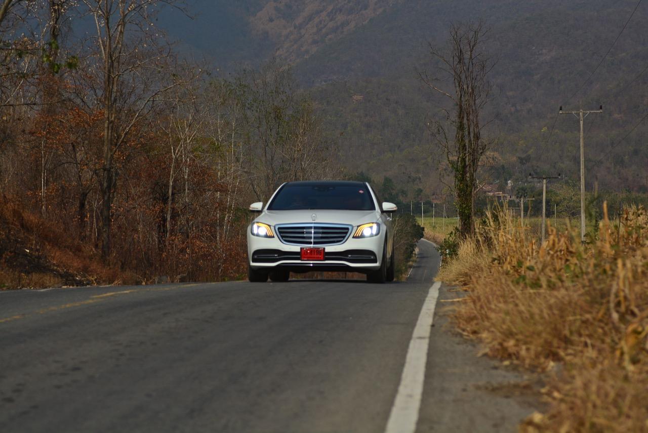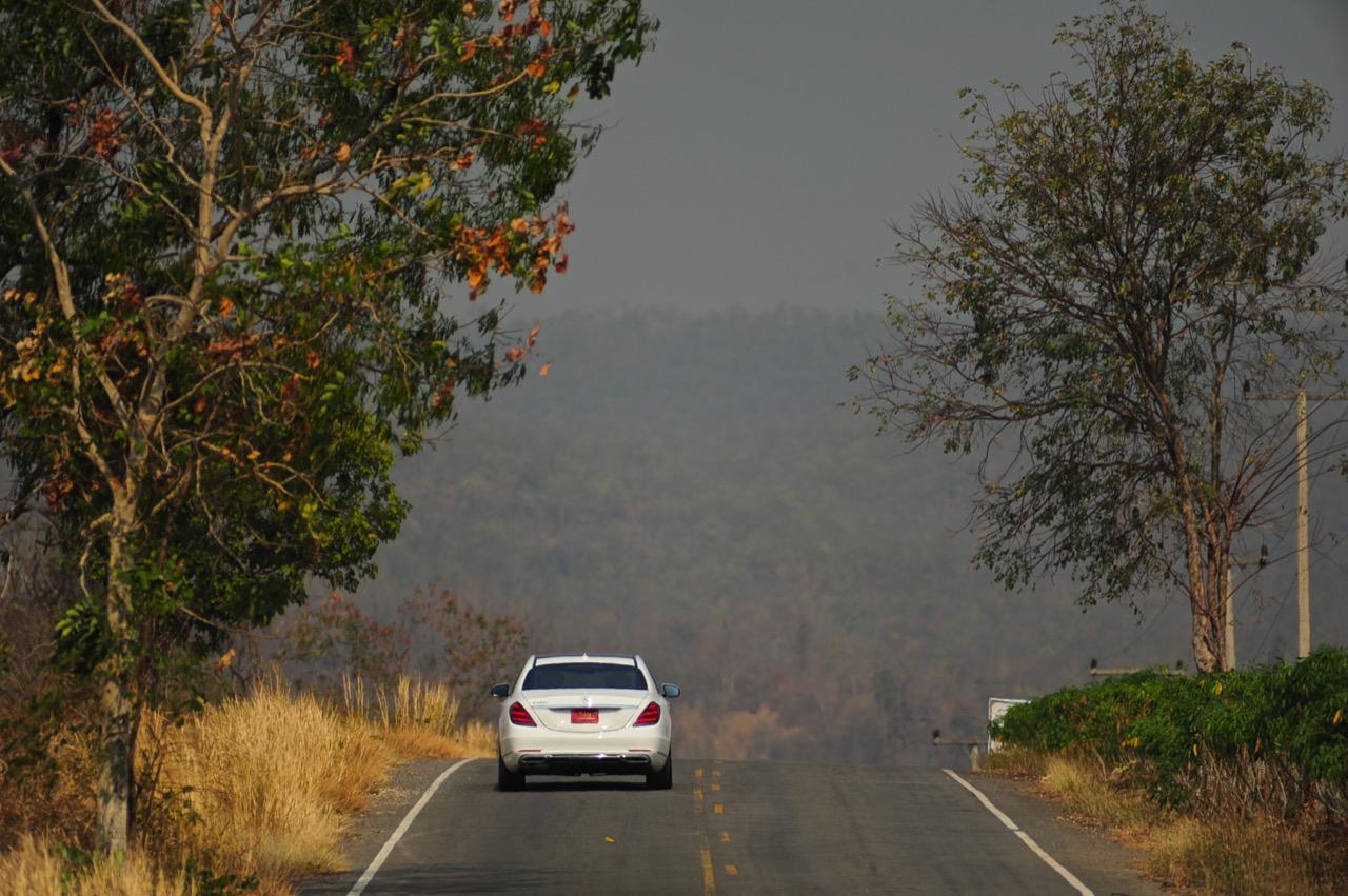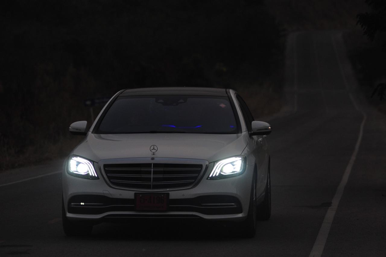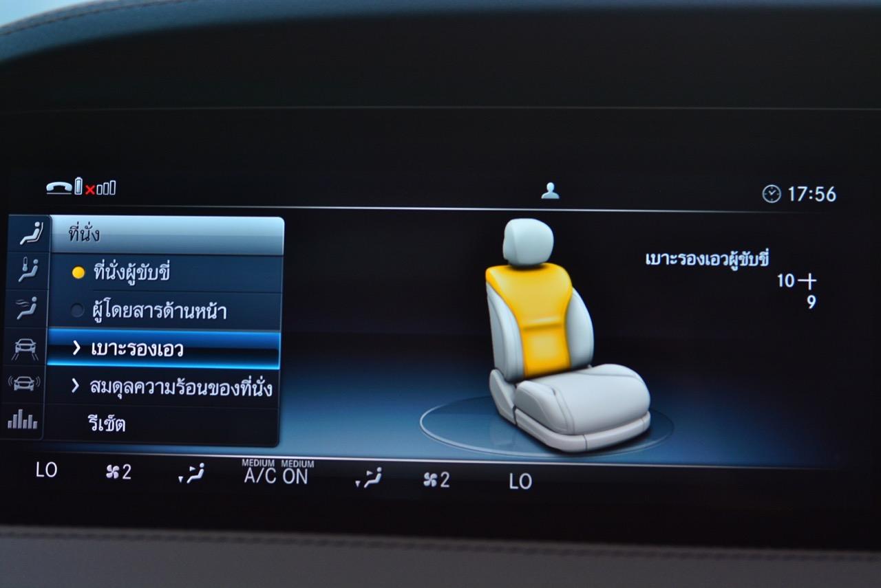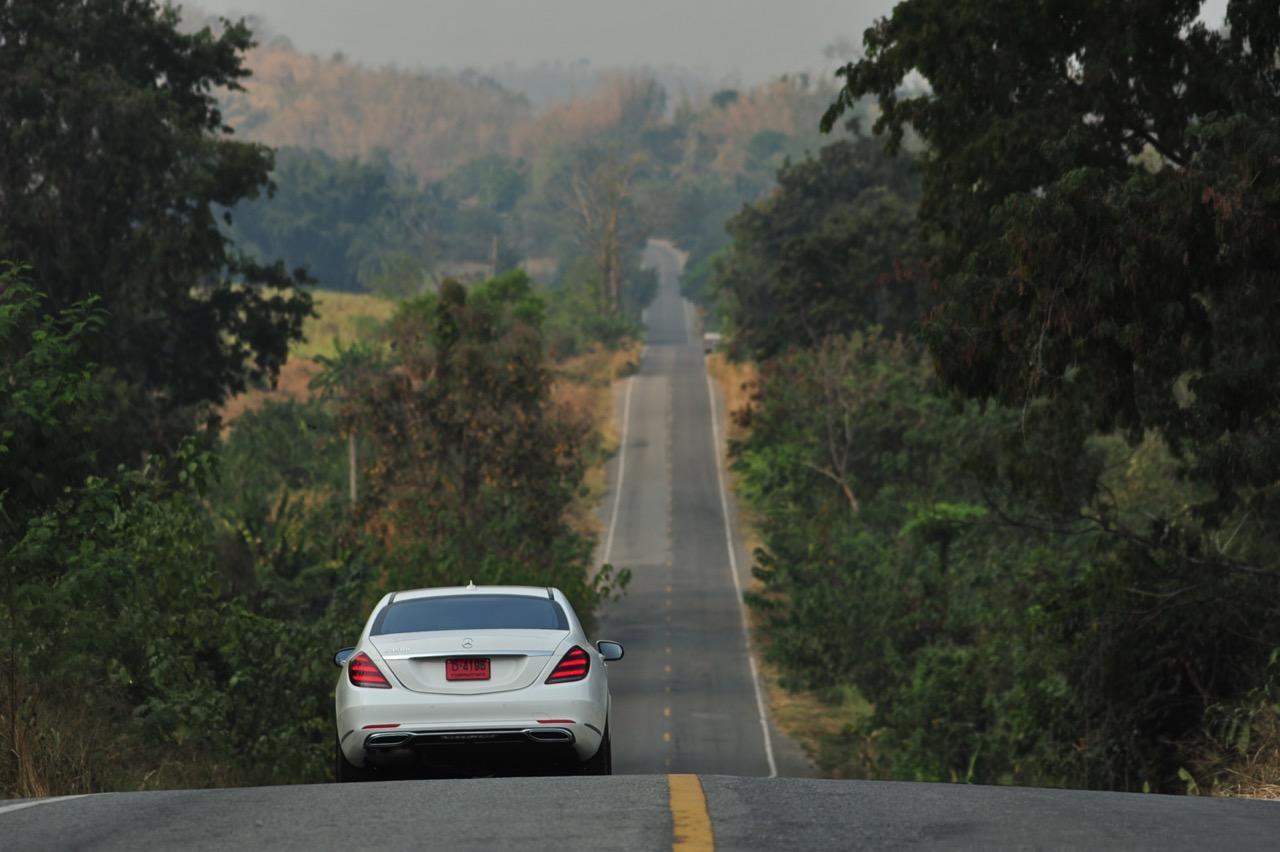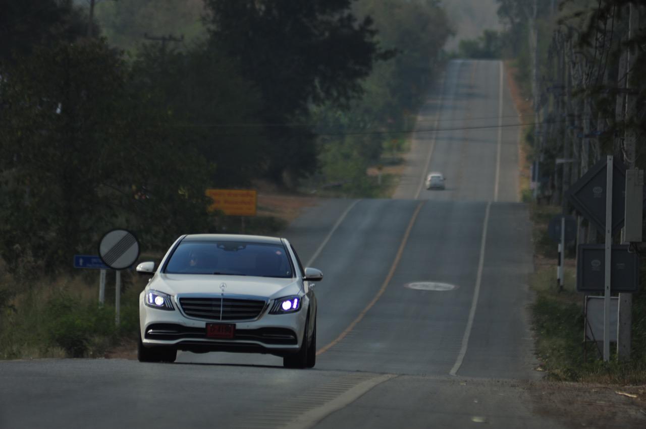 เมื่อกำลังโลดแล่นอยู่ในเรือธงตราดาวที่วิ่งได้อย่างนุ่มนวลบนถนนสองเลนที่ต้องขับขึ้น-ลงเนินเขาเตี้ยๆ ในเขตจังหวัดกาญจนบุรี ภายในห้องโดยสารรายล้อมไปด้วยงานลายไม้ พลาสติก ผ้าและหนังแท้นุ่มละมุน ระบบปรับอากาศที่มีฟังก์ชั่นเพียบ จอภาพ 12.3 นิ้วแสดงผลระบบนำทางด้วยดาวเทียมในรูปแบบ 3D ที่ชัดแจ๋ว ขณะที่เครื่องเสียง Burmester Audiosound System 13 Speaker กำลังเล่นเพลง Jazz และเมื่อมีเสียงโทรศัพท์เรียกเข้าก็แค่กดปุ่มรับสายในระบบบลูทูธ S-Class รุ่นปรับโฉมเป็นการนำเสนอสิ่งดีๆ ที่เคยโดดเด่นและโด่งดังของ Mercedes-Benz ให้กลับมายิ่งใหญ่เหมือนในอดีต ตัวถังช่วงฐานล้อยาว long wheelbase มีภายที่ที่หุ้มหนังแท้จากพื้นเกือบจะถึงเพดานรถ พรมหนาเป็นพิเศษเพื่อเพิ่มความนุ่มและช่วยลดเสียงแปลกปลอมจากภายนอก S350d Exclusive เป็นตัวอย่างที่ดีของการผสมผสานกันระหว่างสมรรถนะกับประสิทธิภาพ ความคล่องตัวกับความนุ่มนวล รวมถึงความเป็นส่วนตัวของผู้โดยสารตอนหลัง ช่วงล่าง AIRMATIC ใช้ถุงลมปรับระดับความสูง-ต่ำแบบอัตโนมัติหรือจะเลือกปรับเองก็ยังได้ ช่วยทำให้ S350d เป็นได้ทั้งยานพาหนะที่ใช้สำหรับขับทางไกลหรือแปลงกายเป็นออฟฟิศส่วนตัวสำหรับนั่งทำงานเวลาเดินทาง โหมด Comfort สบายคล้ายกับ Series-7 คุณจะสัมผัสได้ถึงความใหญ่โตและน้ำหนักของมันเมื่อต้องเลี้ยวโค้งในย่านความเร็วสูง โหมดสปอร์ตลดความสูงลงโดยอัตโนมัติและเปิดทุกสิ่งทุกอย่างเพื่อการขับที่เร็วขึ้น Sport Mode ให้ความรู้สึกถึงความมั่นคงของตัวถังและพวงมาลัยโดยไม่มีความจำเป็นต้องยัดล้อขนาดใหญ่ที่สิ้นเปลืองเชื้อเพลิงและขับยากจากแก้มยางที่ต่ำเตี้ย Sport Mode มีช่วงล่างที่ค่อนข้างยืดหยุ่น ซึ่งคุณสามารถปรับเอาไว้ตรงนั้นและไม่จำเป็นต้องไปยุ่งกับมันให้มากเรื่อง