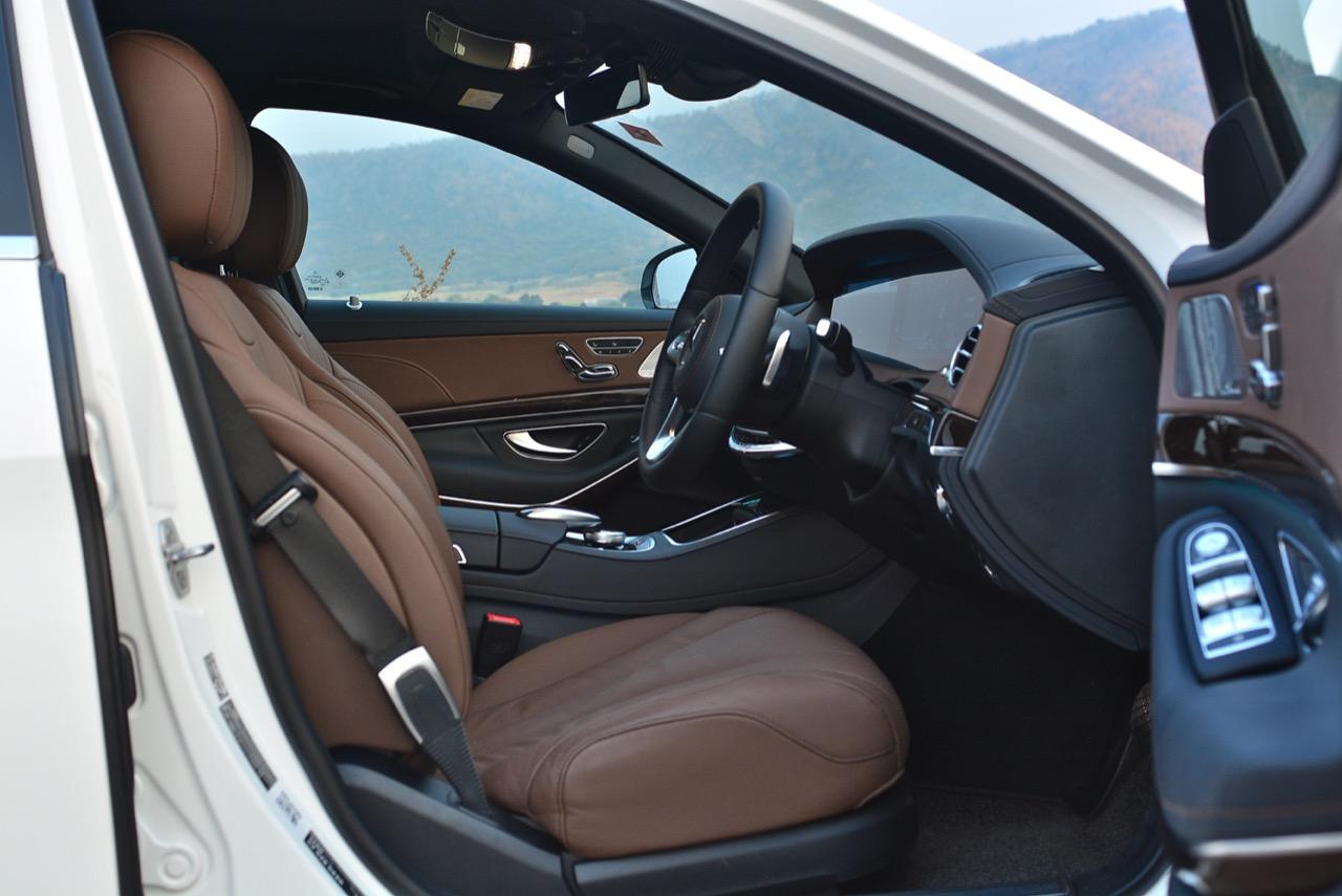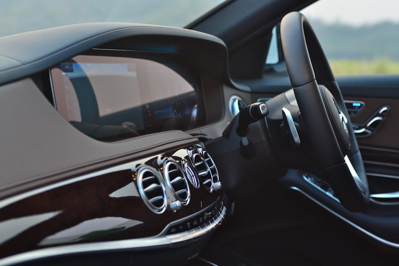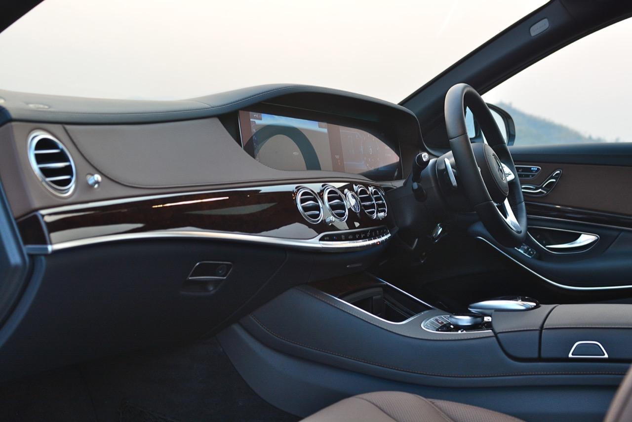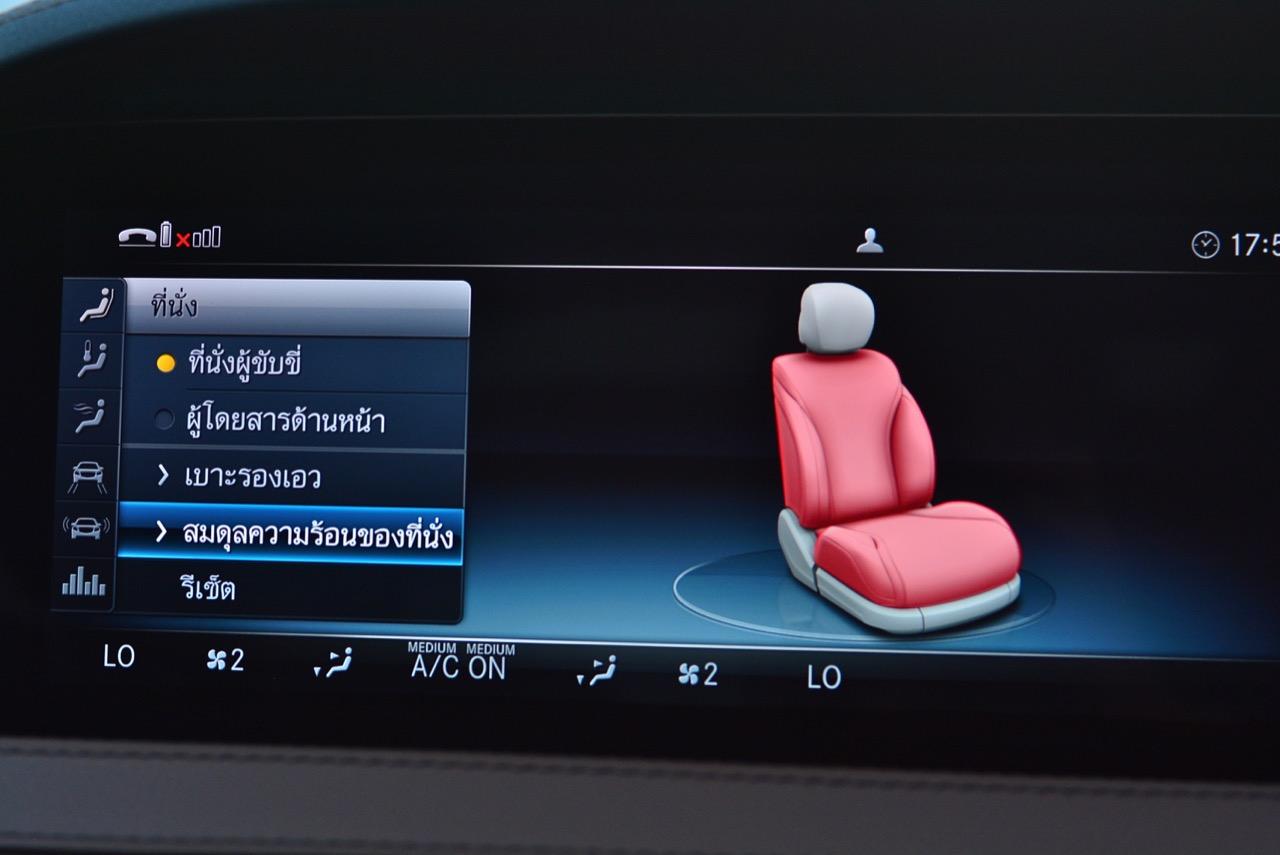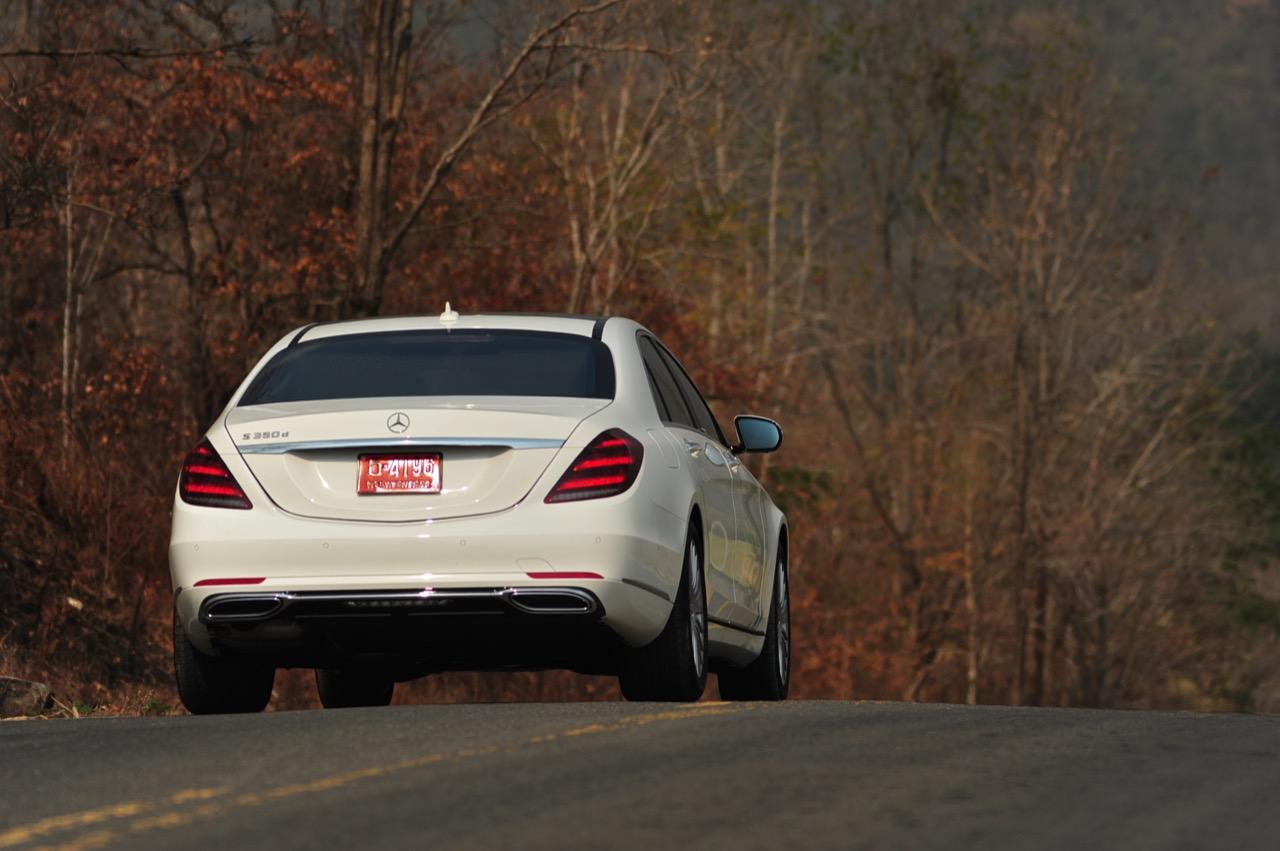เมื่อกำลังโลดแล่นอยู่ในเรือธงตราดาวที่วิ่งได้อย่างนุ่มนวลบนถนนสองเลนที่ต้องขับขึ้น-ลงเนินเขาเตี้ยๆ ในเขตจังหวัดกาญจนบุรี ภายในห้องโดยสารรายล้อมไปด้วยงานลายไม้ พลาสติก ผ้าและหนังแท้นุ่มละมุน ระบบปรับอากาศที่มีฟังก์ชั่นเพียบ จอภาพ 12.3 นิ้วแสดงผลระบบนำทางด้วยดาวเทียมในรูปแบบ 3D ที่ชัดแจ๋ว ขณะที่เครื่องเสียง Burmester Audiosound System 13 Speaker กำลังเล่นเพลง Jazz และเมื่อมีเสียงโทรศัพท์เรียกเข้าก็แค่กดปุ่มรับสายในระบบบลูทูธ S-Class รุ่นปรับโฉมเป็นการนำเสนอสิ่งดีๆ ที่เคยโดดเด่นและโด่งดังของ Mercedes-Benz ให้กลับมายิ่งใหญ่เหมือนในอดีต ตัวถังช่วงฐานล้อยาว long wheelbase มีภายที่ที่หุ้มหนังแท้จากพื้นเกือบจะถึงเพดานรถ พรมหนาเป็นพิเศษเพื่อเพิ่มความนุ่มและช่วยลดเสียงแปลกปลอมจากภายนอก S350d Exclusive เป็นตัวอย่างที่ดีของการผสมผสานกันระหว่างสมรรถนะกับประสิทธิภาพ ความคล่องตัวกับความนุ่มนวล รวมถึงความเป็นส่วนตัวของผู้โดยสารตอนหลัง ช่วงล่าง AIRMATIC ใช้ถุงลมปรับระดับความสูง-ต่ำแบบอัตโนมัติหรือจะเลือกปรับเองก็ยังได้ ช่วยทำให้ S350d เป็นได้ทั้งยานพาหนะที่ใช้สำหรับขับทางไกลหรือแปลงกายเป็นออฟฟิศส่วนตัวสำหรับนั่งทำงานเวลาเดินทาง โหมด Comfort สบายคล้ายกับ Series-7 คุณจะสัมผัสได้ถึงความใหญ่โตและน้ำหนักของมันเมื่อต้องเลี้ยวโค้งในย่านความเร็วสูง โหมดสปอร์ตลดความสูงลงโดยอัตโนมัติและเปิดทุกสิ่งทุกอย่างเพื่อการขับที่เร็วขึ้น Sport Mode ให้ความรู้สึกถึงความมั่นคงของตัวถังและพวงมาลัยโดยไม่มีความจำเป็นต้องยัดล้อขนาดใหญ่ที่สิ้นเปลืองเชื้อเพลิงและขับยากจากแก้มยางที่ต่ำเตี้ย Sport Mode มีช่วงล่างที่ค่อนข้างยืดหยุ่น ซึ่งคุณสามารถปรับเอาไว้ตรงนั้นและไม่จำเป็นต้องไปยุ่งกับมันให้มากเรื่อง