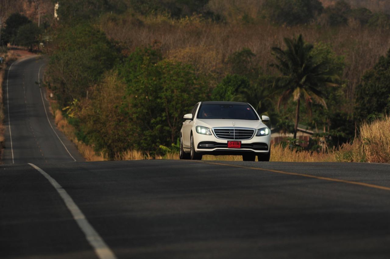 ประสบการณ์ที่สัมผัสได้จาก Mercedes-Benz S350d Exclusive เป็นประสบการณ์ของการขับใช้งานที่ปราศจากการลวงความรู้สึก ช่วงล่างถุงลม Adaptiv Air Suspension AIRMATIC โคตรจะนุ่มจนดูเหมือนจะย้วยแต่ไม่ใช่ ความหนึบนุ่มที่ส่งผ่านช่วงล่างไฟฟ้ามายังเบาะนั่งที่ออกแบบให้ช่วยซับแรงสั่นสะเทือนนั่งขับแล้วพลานจะหลับท่าเดียวเพราะมันสบายเกินหน้าเกินตารถยนต์ทั่วไป S350d มีน้ำหนัก 2 ตัน เมื่อจะเร่งความเร็ว เบรกหรือเลี้ยวกลับลำ ทำให้ผมต้องระวังในเรื่องของน้ำหนัก ตัวรถไม่ได้ตอบสนองอย่างดุดันแต่ออกมาในแบบค่อยเป็นค่อยไปเน้นความนิ่มนวลมากกว่ารถคู่แข่งอย่างเห็นได้ชัด การถ่ายเทน้ำหนักขณะขับเข้าโค้งด้วยความเร็วสูง (มาก) มีอาการค่อยข้างเป็นกลางผสมกับความย้วยบางๆ หากผิวถนนบริเวณโค้งไม่มีความสม่ำเสมอ การเบรกต้องมีระยะเผื่อเหลือเผื่อขาดไว้บ้าง เนื่องจากทั้งใหญ่ทั้งยาวและมีน้ำหนักตัวสูสีกับเอสยูวีคันโตๆ เมื่อวิ่งบนทางตรงในไฮเวย์ข้ามจังหวัดด้วยความเร็วคงที่ ผู้โดยสารตอนหลังจะได้รับความสะดวกสบายสูงสุด เรียกว่าสบายจนแทบจะสำลักกันเลยทีเดียวล่ะครับ