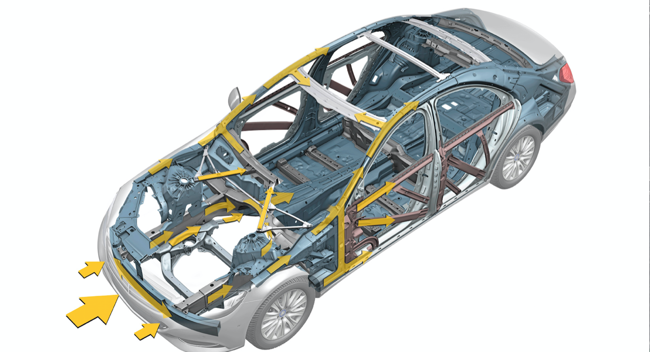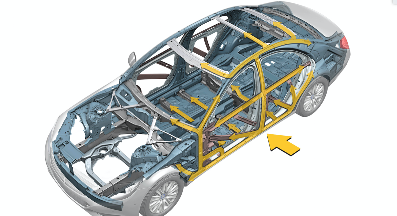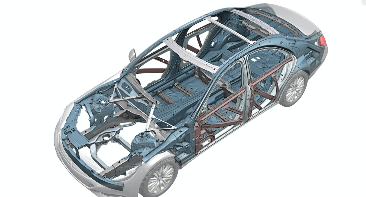 ตัวถังของ S-Class ใช้โลหะผสมทั้งเหล็กกล้าและอะลูมิเนียมเพื่อความแข็งแกร่งและลดน้ำหนัก การจัดวางชุดส่งกำลังทั้งเครื่องยนต์และเกียร์ที่ทำให้รถเกิดความสมดุลเมื่อใช้ความเร็วสูงทั้งทางตรงและโค้ง การถ่ายเทน้ำหนักขณะเร่งความเร็วอย่างฉับพลันทันทีหรือเบรกเต็มแรงอยู่ในเกณฑ์ดีเยี่ยม ระบบความปลอดภัยหลักนอกจากตัวช่วยอีเล็กทรอนิกส์แล้ว โครงสร้างของตัวถังยังช่วยรับแรงและกระจายแรงกระแทกที่เกิดจากการชนปะทะให้มีประสิทธิภาพดีกว่าเดิม PRE-SAFE System ปกป้องผู้โดยสารทั้งก่อนและหลังจากการเกิดอุบัติเหตุ เป็นเวอร์ชั่นอัปเกรดสมบูรณ์แบบทำงานร่วมกับระบบอื่นๆ เพื่อความปลอดภัยและติดตั้งเป็นอุปกรณ์มาตรฐาน เช่น ถุงลมนิรภัยด้านหน้า 2 ตำแหน่ง ถุงลมด้านข้าง 4 ตำแหน่ง ม่านถุงลมนิรภัย 4 จุด เข็มขัดนิรภัยแบบถุงลมสำหรับผู้โดยสารตอนหลัง ระบบควบคุมการทรงตัว ESP ระบบป้องกันล้อหมุนฟรี ASR ระบบเบรก ABS ระบบช่วยเบรก BAS ระบบเบรก Adaptive Brake ประตูดูด ระบบช่วยนำรถเข้าจอดอัตโนมัติ Parking Pilot including Active Parking Assist) กล้องมองรอบคันแบบ 360 องศา สัญญาณป้องกันการโจรกรรม พร้อมระบบตรวจจับความเคลื่อนไหวในห้องโดยสาร