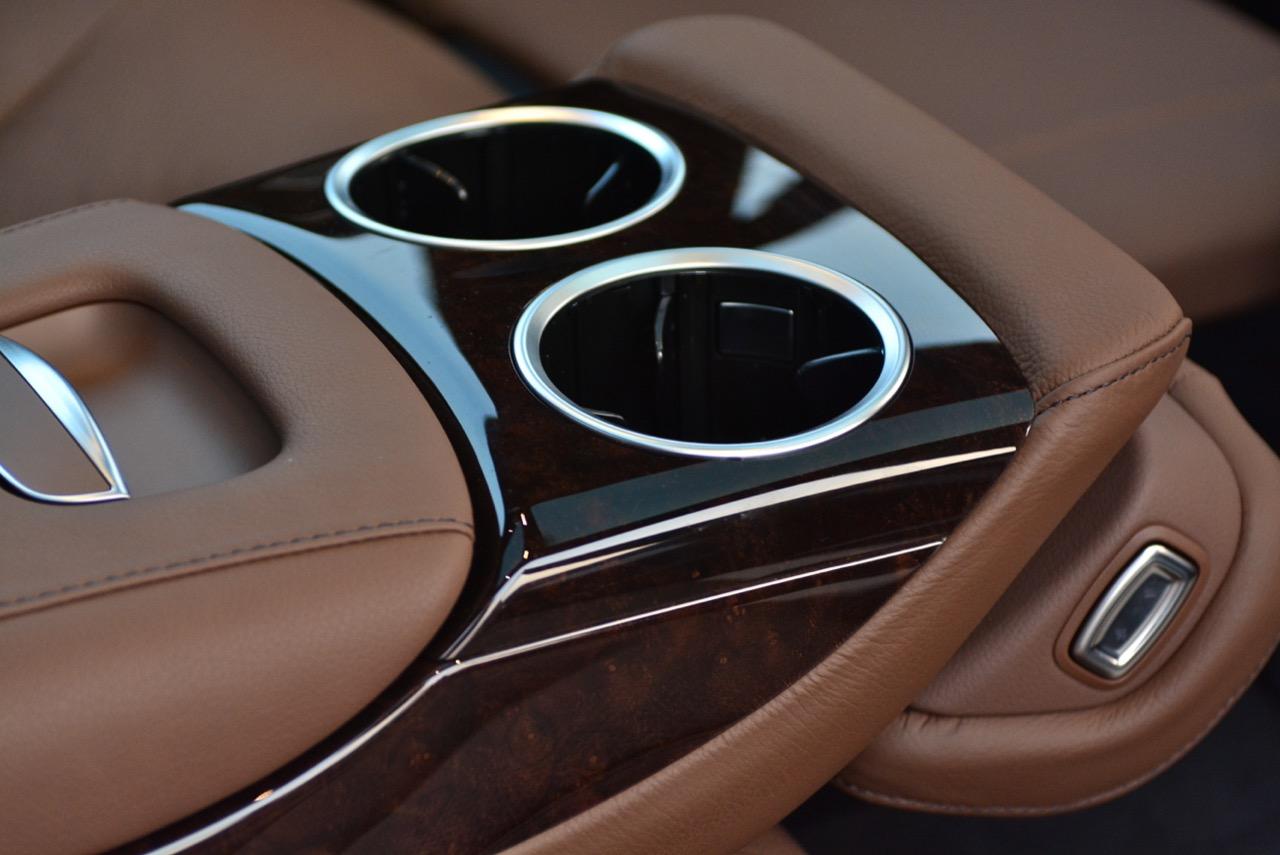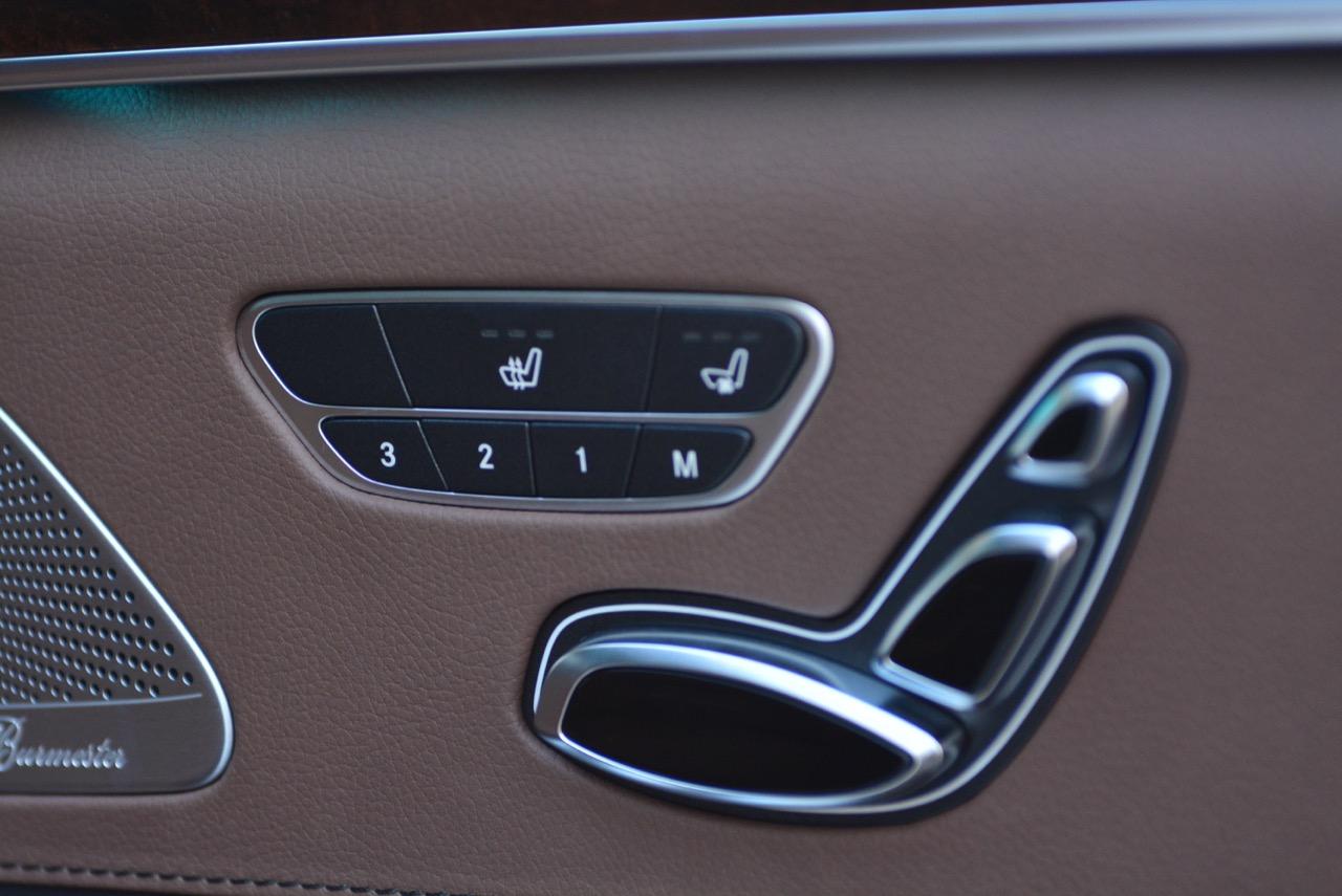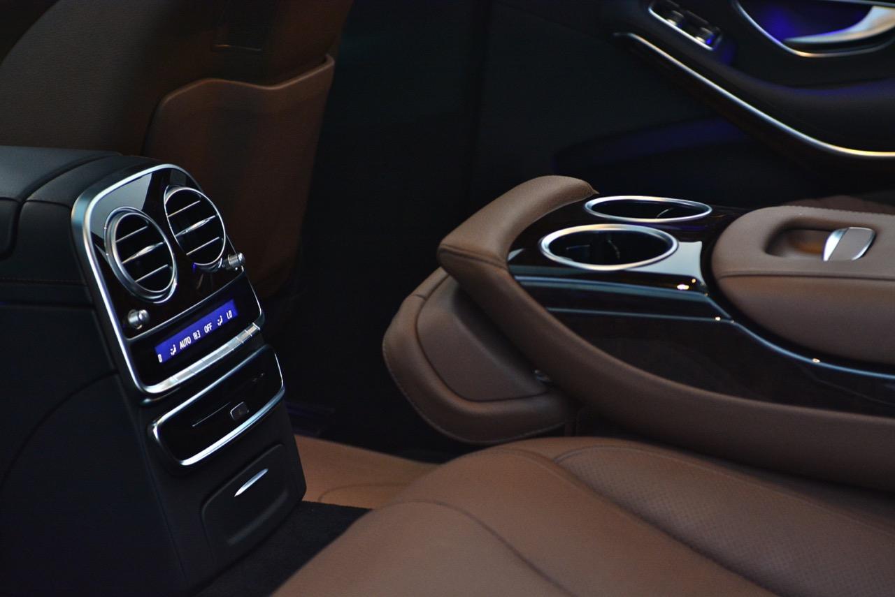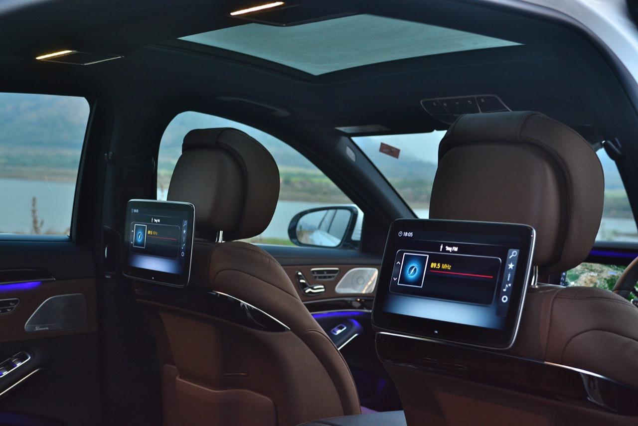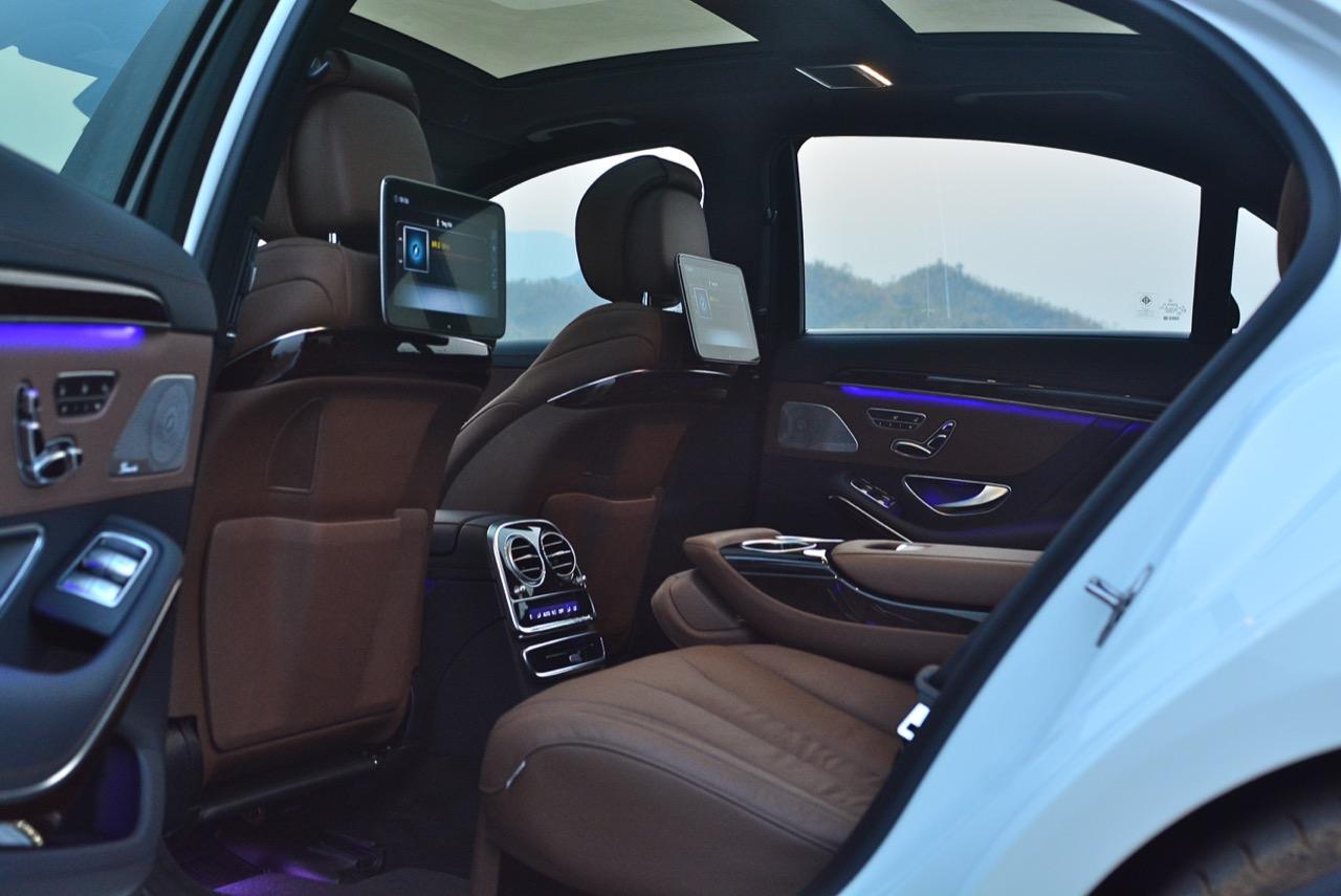เบาะหลังออกแบบเพื่อความผ่อนคลายพร้อมความสบายในการนั่งโดยสาร เบาะหลังตำแหน่งซ้ายติดตั้งเบาะรองขาแบบไฟฟ้า สามารถปรับตั้งได้อย่างหลากหลายพร้อมๆไปกับการปรับเอนเบาะหลังโดยร่นเบาะผู้โดยสารตอนหน้าไปจนชิดกับคอนโซลหน้าเพื่อเปิดพื้นที่ของการวางเท้าแบบโซฟา! มีลายไม้เพิ่มเติมบริเวณแผงประตู ช่องแอร์สำหรับเพิ่มอากาศเย็นที่สดชื่นสำหรับผู้โดยสารตอนหลัง ติดตั้งทั้งบริเวณกึ่งกลางอุโมงค์เกียร์และที่เสากลาง Mercedes-Benz ออกแบบเบาะหลังของ S-Class ให้เป็นแบบ 3 ที่นั่งแต่เหมาะและลงตัวกับ 2 ที่นั่งมากกว่า เนื่องจากเมื่อกางพนักเท้าแขนออกมาผู้โดยสารทั้งซ้ายและขวาจะได้รับความสบายอย่างเต็มที่ เนื่องจากพื้นที่ที่มีอย่างเหลือเฟือนั่นเอง