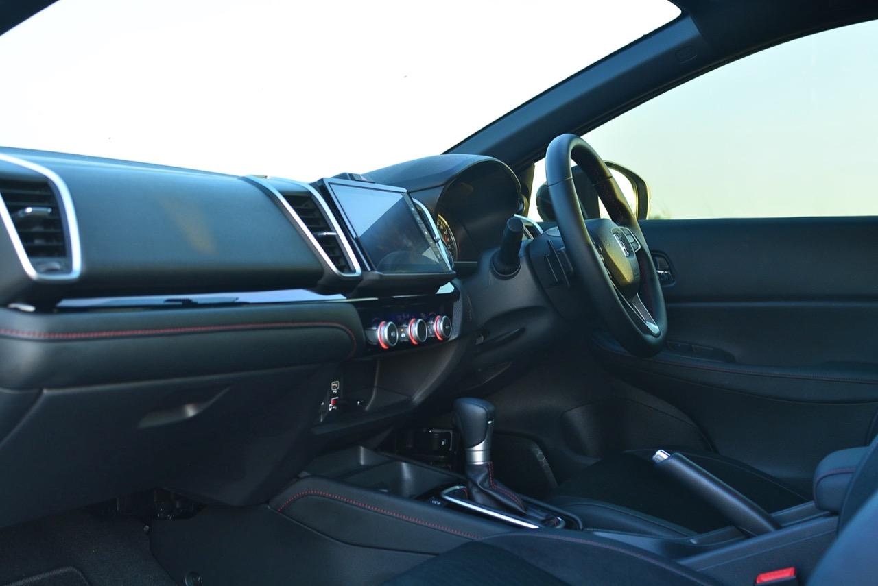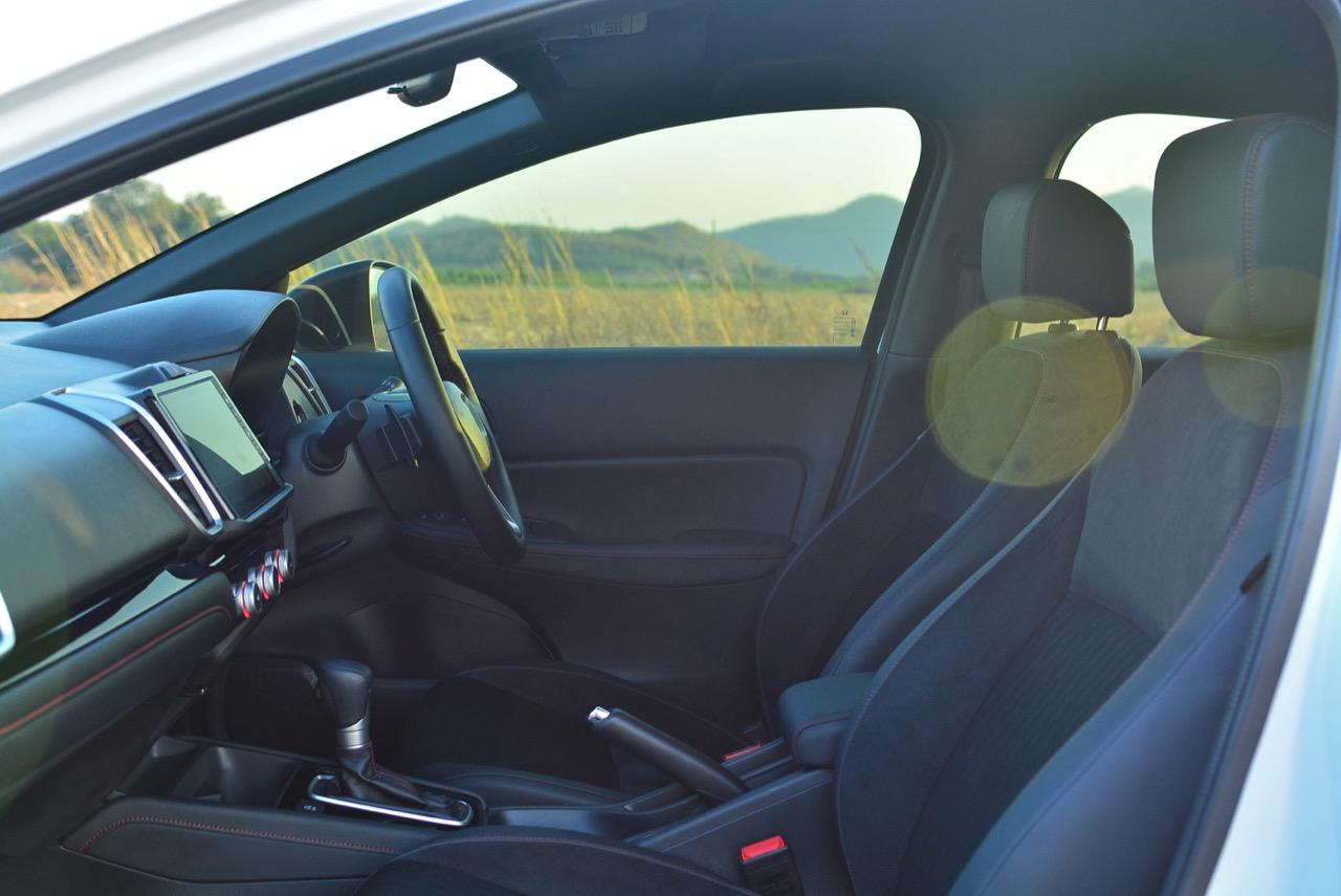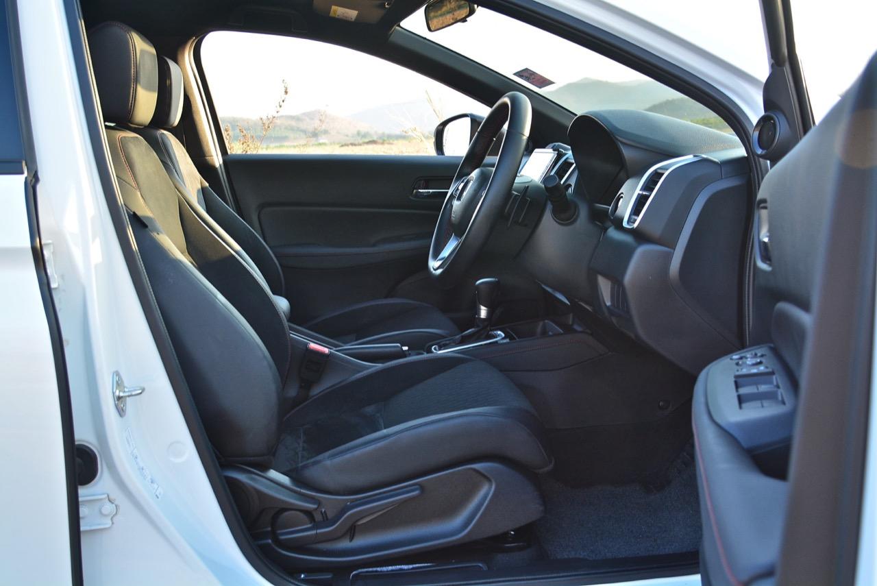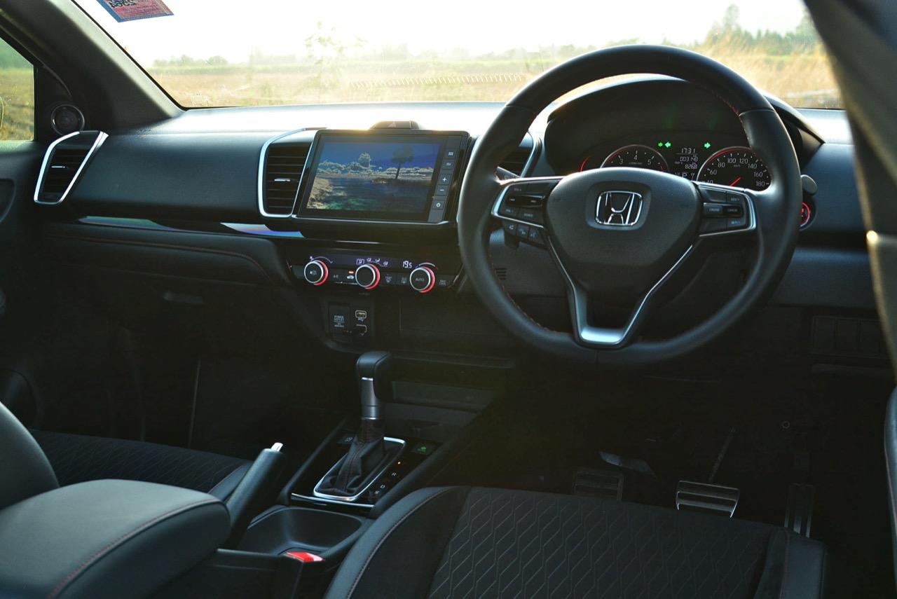 ห้องโดยสารของ New City RS อุดมไปด้วยพลาสติกเกรดกลางๆ ที่ยังคงตามหลังภายในของ Mazda 2 ในด้านของวัสดุและรูปแบบ แดชบอร์ดทำจากพลาสติกฉีดขึ้นรูปเชื่อมต่อกับคอนโซลกลาง ช่องแอร์ทรง 5 เหลี่ยมล้อมกรอบด้วยพลาสติกสีเงินเพื่อยกระดับความหรู เบาะนั่งปรับด้วยมือหุ้มด้วยหนังและผ้าเนื้อดีตัดเย็บอย่างละเอียดด้วยการโชว์ตะเข็บด้ายสีแดง เบาะคู่หน้าหนังกลับปรับด้วยมือ ส่วนเบาะหลังก็ยังมีพื้นที่กว้างมากพอสำหรับผู้ใหญ่ตัวโตๆ สองคน หรือคนที่มีรูปร่างไม่อวบอ้วนก็ยังนั่งได้ถึง 3 คน จุดเด่นของ New City ก็คือช่องเก็บของ ที่วางแก้ว ทั้งบริเวณแผงประตูทั้งสี่บานและที่คอนโซลกลาง พนักเท้าแขนกึ่งกลางระหว่างเบาะคู่หน้าแม้จะทำให้รู้สึกสบายแต่ถ้าผู้โดยสารด้านข้างคนขับวางแขนลงไปบางทีก็จะโดนแขนคนขับแบบไม่ตั้งใจ! ตำแหน่งที่สบายก็คือเบาะหลังสำหรับคนที่มีรูปร่างปกติ พื้นที่วางขาและพื้นที่เหนือศีรษะ ในจุดนี้ New City สามารถเอาชนะ Mazda 2 ไปได้แบบไม่ยากเย็นนัก