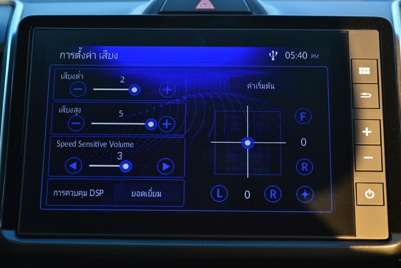 จอแสดงผลกลางสั่งงานด้วยระบบสัมผัส ขนาด 8 นิ้ว เป็นจอภาพแบบใหม่ที่มีความคมชัดใช้ได้ สามารถใช้งานระบบเครื่องเสียง 8 ลำโพง (หน้า 4 หลัง 4) ผ่านจอภาพ รวมถึงการเชื่อมต่อต่างๆ เช่น Apple CarPlay Google Maps เชื่อมต่อกับโทรศัพท์มือถือด้วยระบบบลูทูธ เล่นเพลงผ่าน USB วิทยุ AM/FM iPOD เป็นหน้าจอมอนิเตอร์ระบบสัมผัสแบบใหม่ที่ใช้งานง่าย แถมยังมีกล้องมองหลังที่คมชัดมากติดมาให้ กล้องมองหลังทำงานร่วมกับตำแหน่งเกียร์ถอยหลัง เมื่อขับในตอนกลางคืนตัวเลนส์ก็ยังให้ภาพที่ค่อนข้างคมชัดแม้จะถอยหลังในที่มืดแต่สามารถมองเห็นได้อย่างชัดเจน เป็นอีกจุดที่ช่วยเพิ่มความปลอดภัยเวลาขับถอยหลังเพื่อจอดในพื้นที่คับแคบ