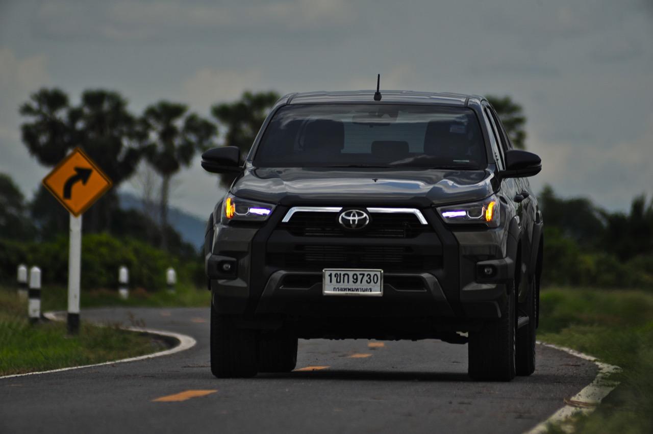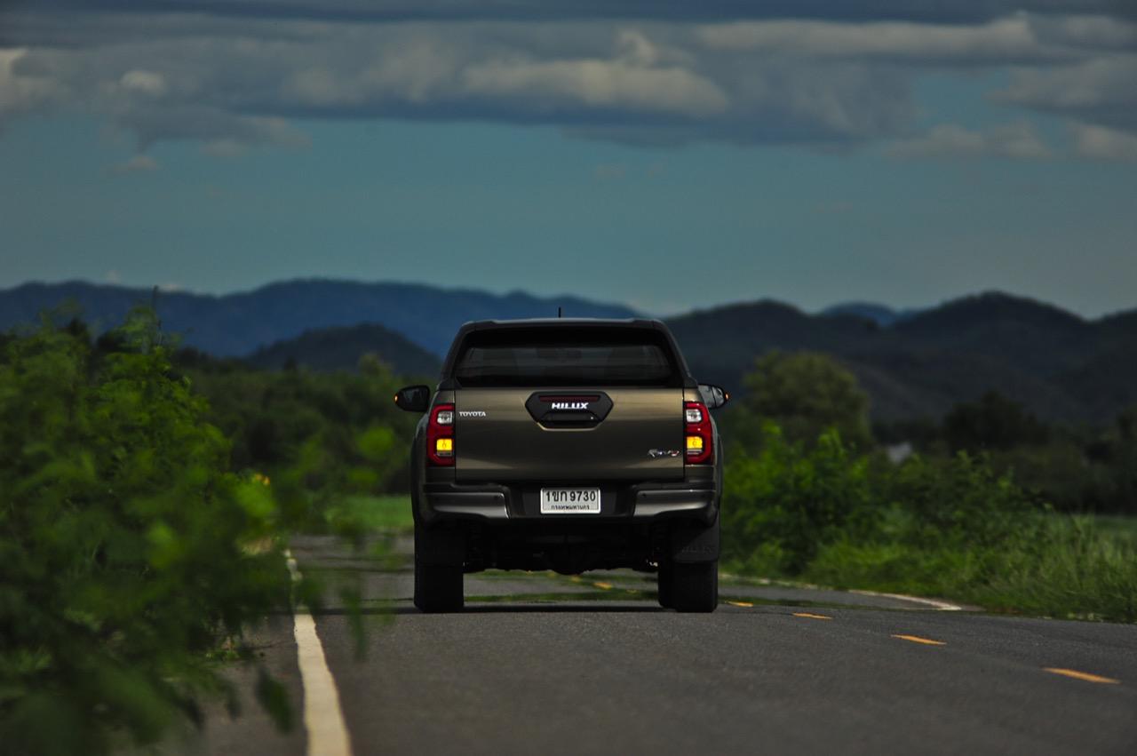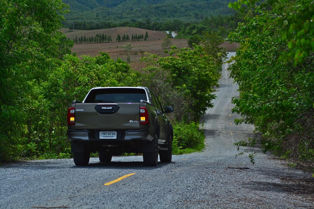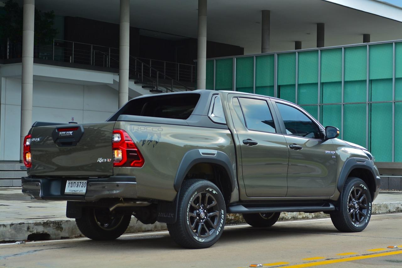 แม้จะยกช่วงล่างจนสูงปรี๊ด Hilux REVO Rocco ก็เป็นรถกระบะที่มีเสถียรภาพการทรงตัวอยู่ในเกณฑ์ดี ขอขอบคุณทีมวิศวกรและทีมทดสอบในช่วงของการพัฒนาซึ่งใช้เวลาปรับปรุงช่วงล่างนานถึง 3 ปี เพื่อหาค่าที่เหมาะสมมากที่สุดสำหรับความสบายหลังพวงมาลัย การเก็บเสียงเมื่อลองขับทดสอบบนถนนเส้นสุพรรณบุรีที่มีทั้งทางปูนและทางลาดยางบวกคอสะพานที่แสนชัน! Hilux REVO Rocco นั้นเก็บเสียงได้ดีสุดในบรรดากระบะดับเบิ้ลแค็บเมื่อเทียบกับรถคู่แข่งทั้งหมด วิ่งด้วยความเร็ว 80 กิโลเมตรต่อชั่วโมง แทบจะไม่ได้ยินทั้งเสียงลมและเสียงยาง ต้องเพิ่มความเร็วไปที่ 100 กิโลเมตรต่อชั่วโมงก็จะเริ่มได้ยินเสียงยางบดลงไปบนผิวถนนและเสียงการทำงานของเครื่องดีเซล