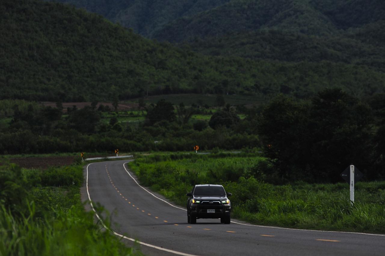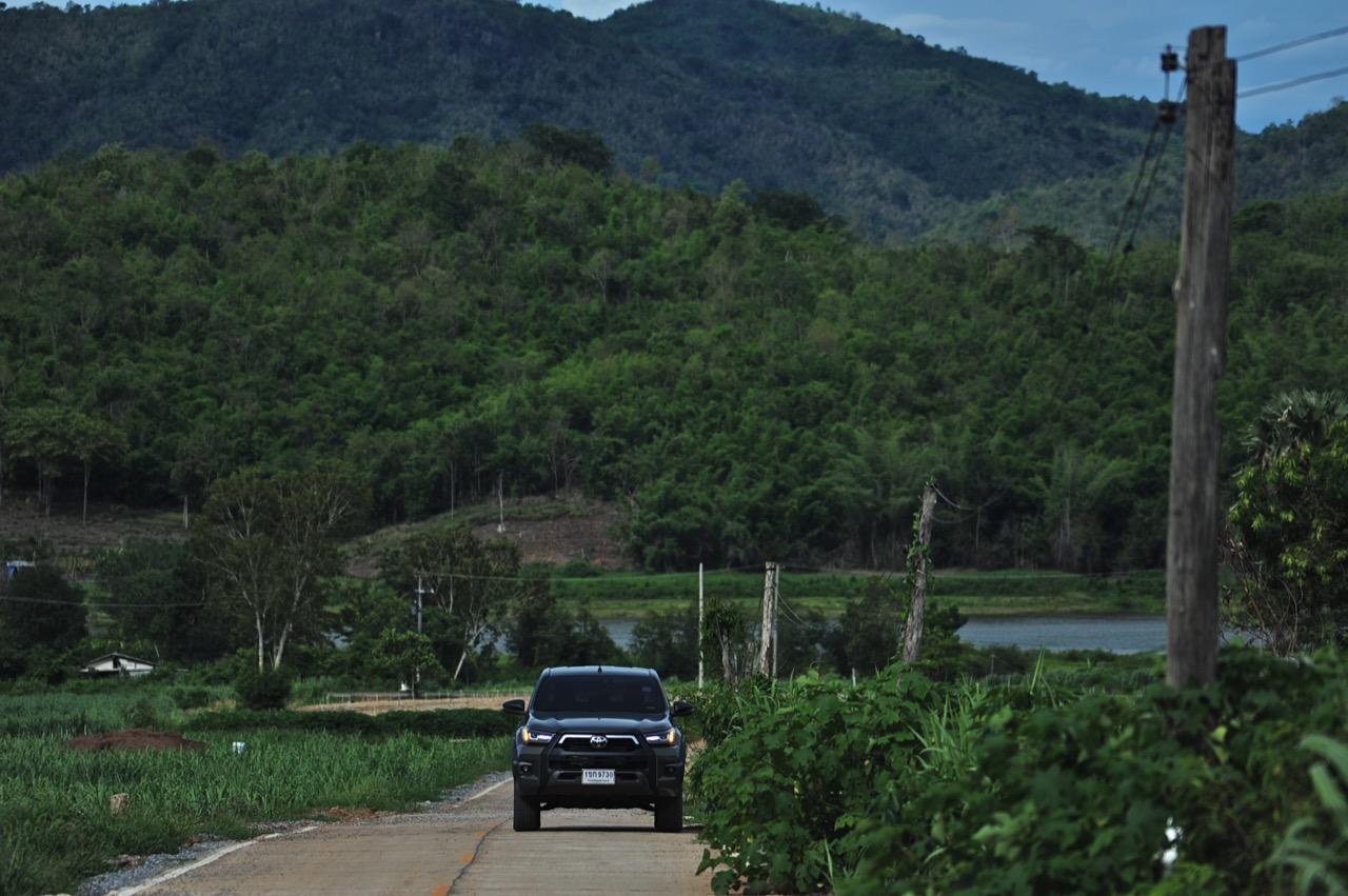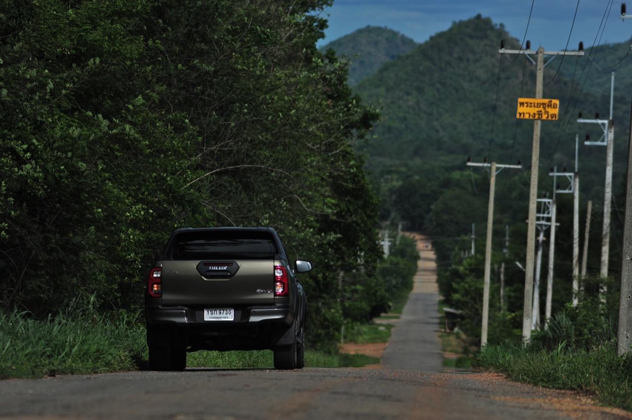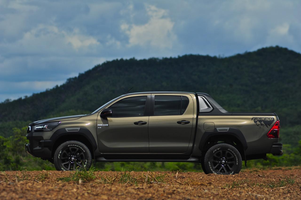 แม้จะยกช่วงล่างจนสูงปรี๊ด Hilux REVO Rocco ก็เป็นรถกระบะที่มีเสถียรภาพการทรงตัวอยู่ในเกณฑ์ดี ขอขอบคุณทีมวิศวกรและทีมทดสอบในช่วงของการพัฒนาซึ่งใช้เวลาปรับปรุงช่วงล่างนานถึง 3 ปี เพื่อหาค่าที่เหมาะสมมากที่สุดสำหรับความสบายหลังพวงมาลัย การเก็บเสียงเมื่อลองขับทดสอบบนถนนเส้นสุพรรณบุรีที่มีทั้งทางปูนและทางลาดยางบวกคอสะพานที่แสนชัน! Hilux REVO Rocco นั้นเก็บเสียงได้ดีสุดในบรรดากระบะดับเบิ้ลแค็บเมื่อเทียบกับรถคู่แข่งทั้งหมด วิ่งด้วยความเร็ว 80 กิโลเมตรต่อชั่วโมง แทบจะไม่ได้ยินทั้งเสียงลมและเสียงยาง ต้องเพิ่มความเร็วไปที่ 100 กิโลเมตรต่อชั่วโมงก็จะเริ่มได้ยินเสียงยางบดลงไปบนผิวถนนและเสียงการทำงานของเครื่องดีเซล