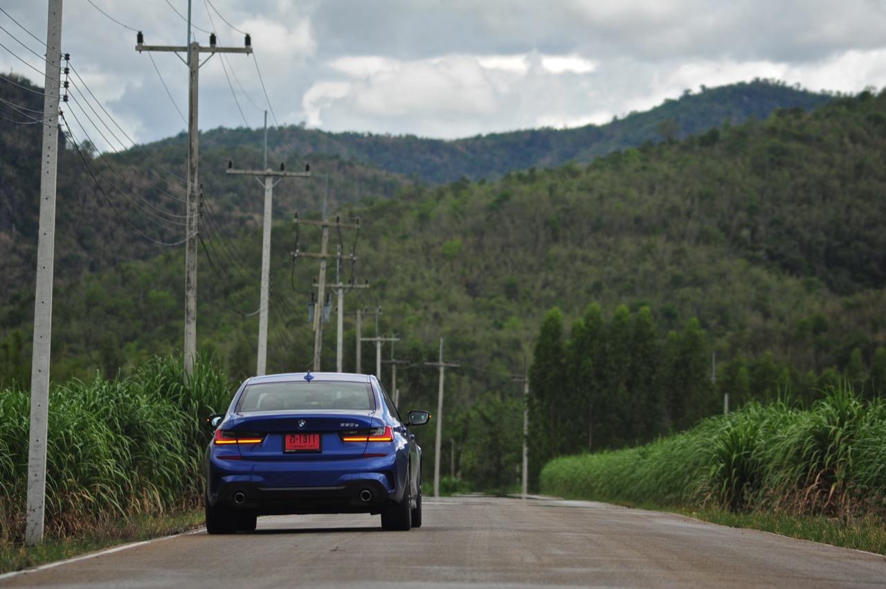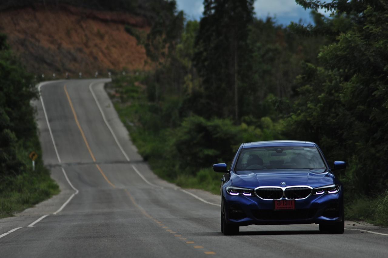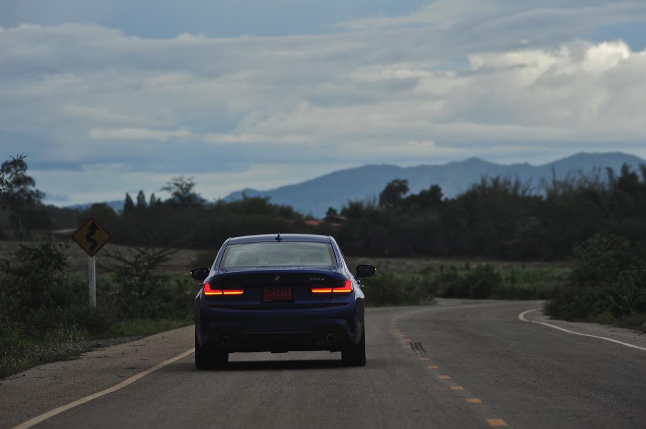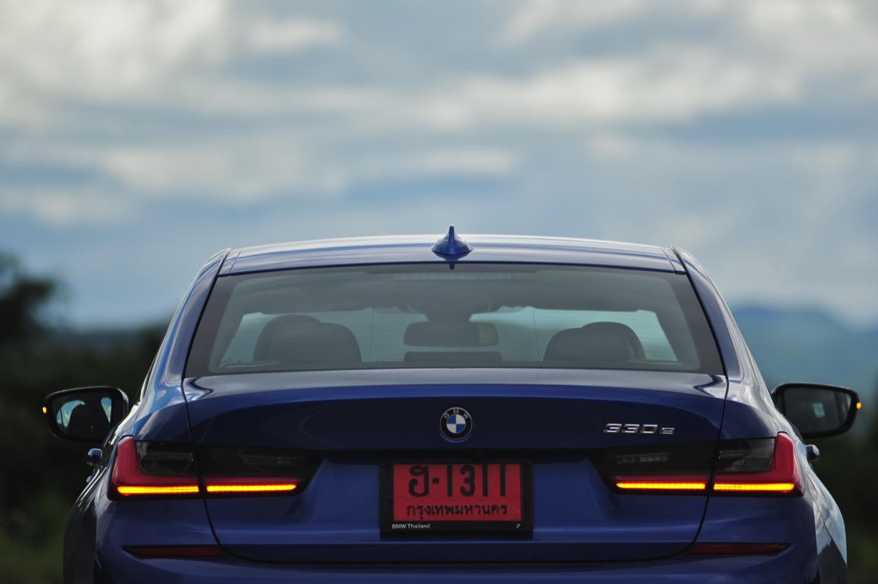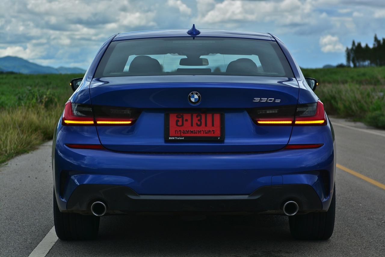 การเร่งเครื่องบนถนนที่คดเคี้ยวสอดรับกับการทำงานของช่วงล่างและชุดบังคับเลี้ยวได้อย่างน่าทึ่ง เลี้ยงรอบเอาไว้ในโค้งให้เหมาะสมแล้วกระแทกสวนในจังหวะที่หน้ารถกำลังจะออกจากปลายโค้งคุณจะพบกับการยึดเกาะที่มาดมั่นจนอยากจะไปให้เร็วมากกว่าเดิม ช่วงล่างที่เซตให้แข็งขึ้นกับยางสปอร์ตที่ใส่เข้ามาให้เพื่อสร้างแรงยึดเกาะ ทำให้เกิดความบันเทิงเริงรมย์ทุกครั้งที่เร่งความเร็วเพื่อแซงรถช้า และเมื่ออยากจะขับแบบเรื่อยๆ หากชาร์จไฟมาจนเต็ม BMW เคลมว่า 330e สามารถวิ่งด้วยมอเตอร์เพียวๆ ไกล 45-50 กิโลเมตร แต่เมื่อลองขับใช้งานจริง ด้วยความเร็วคงที่ 80-100 กิโลเมตรต่อชั่วโมง มันวิ่งบนด่วนอุดรรัถยาไกลเกือบ 40 กิโลเมตร เป็นรถปลั๊กอินที่ทำระยะทางจากพลังไฟในแบตฯ ได้ไกลเอาเรื่องเหมือนกัน