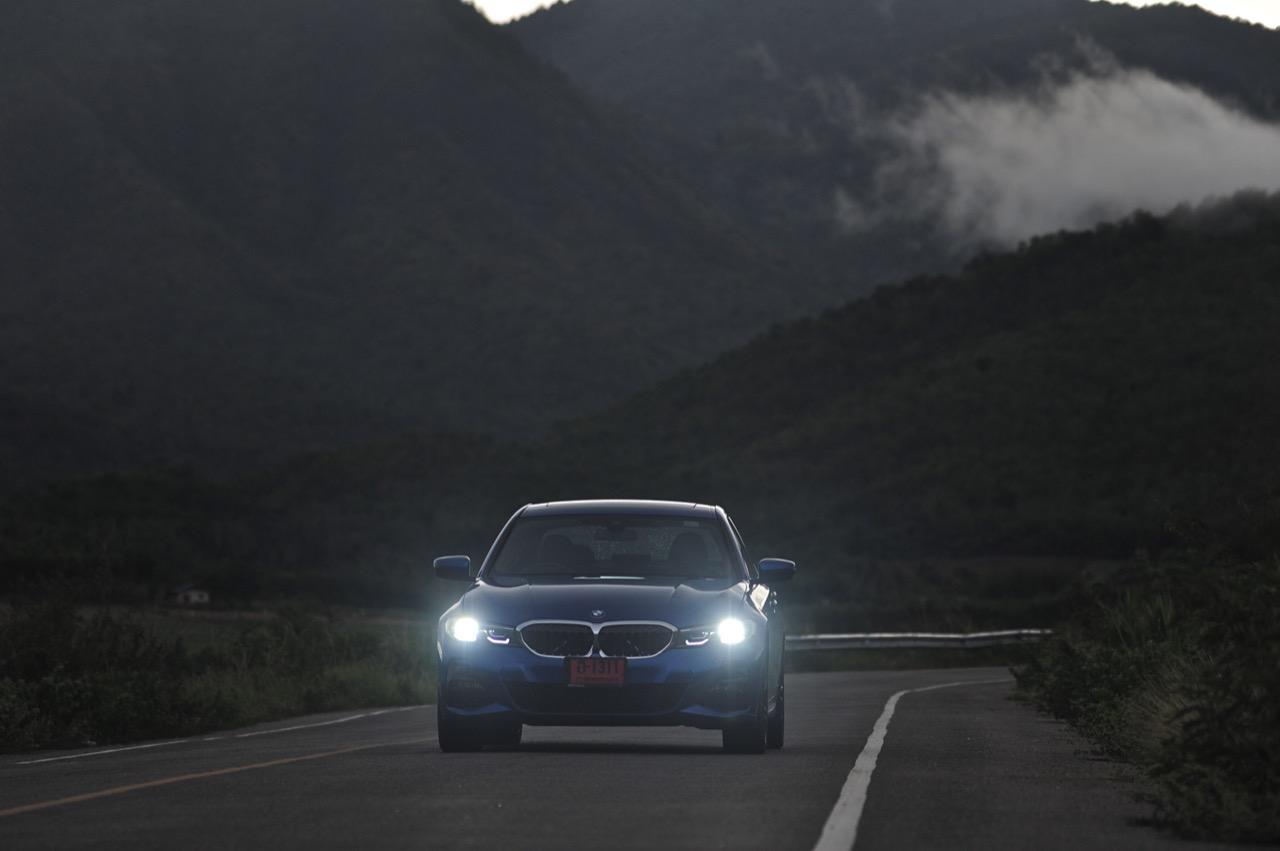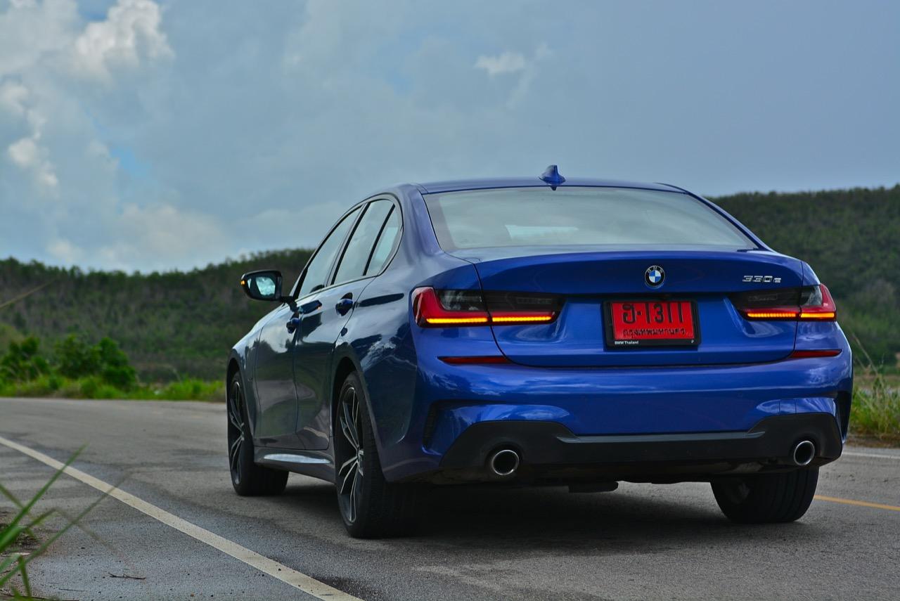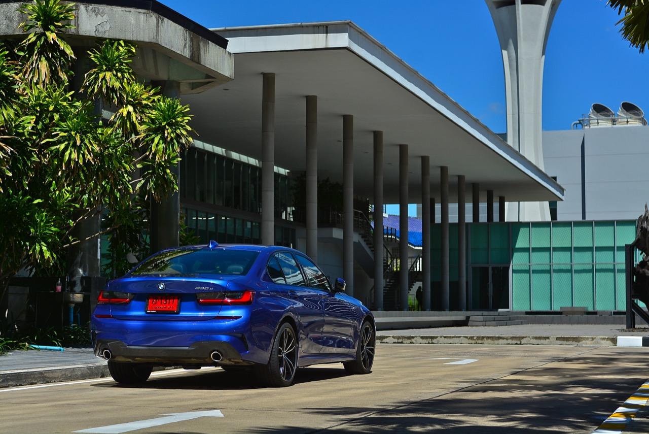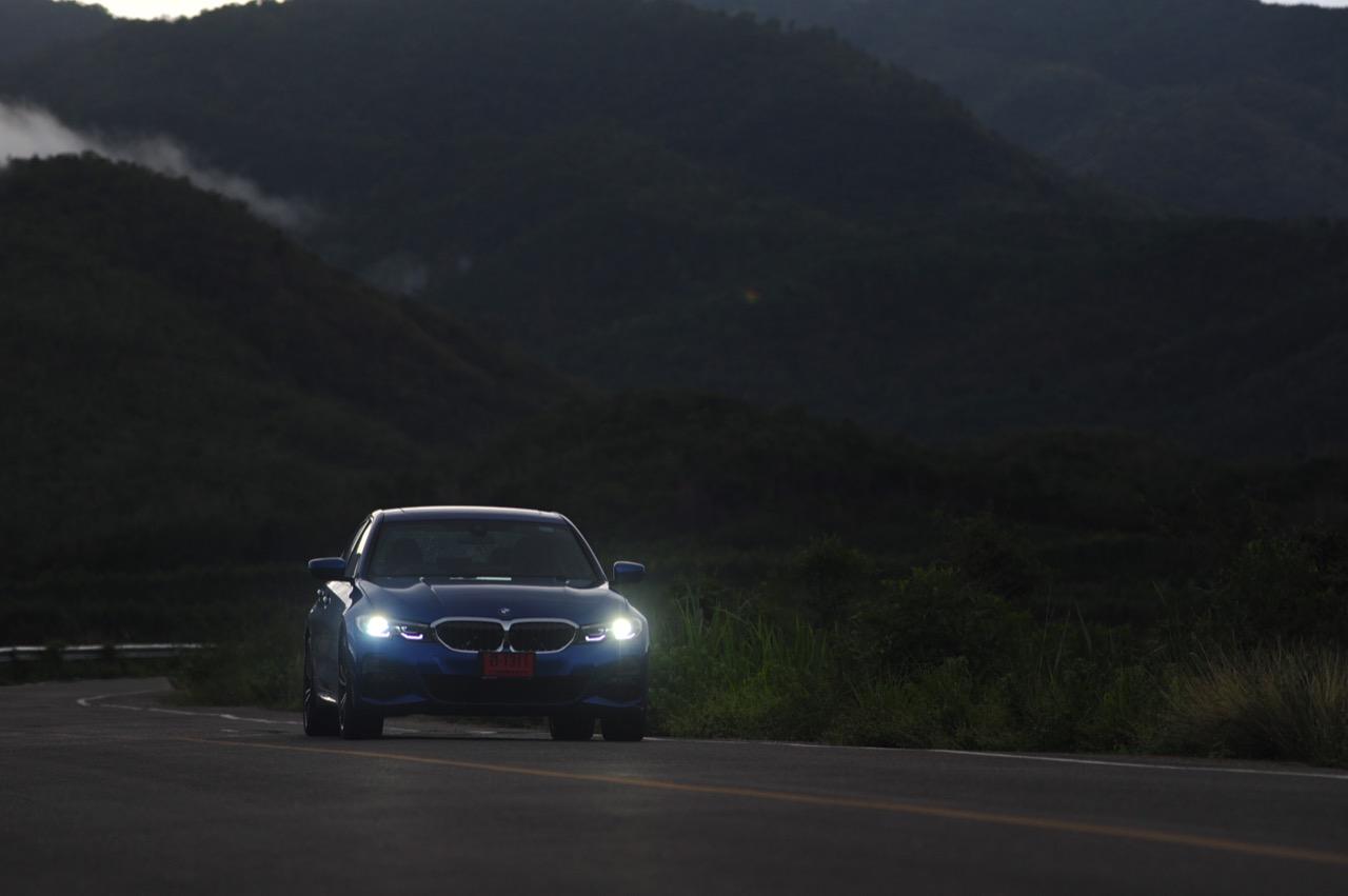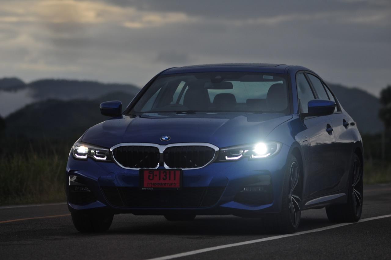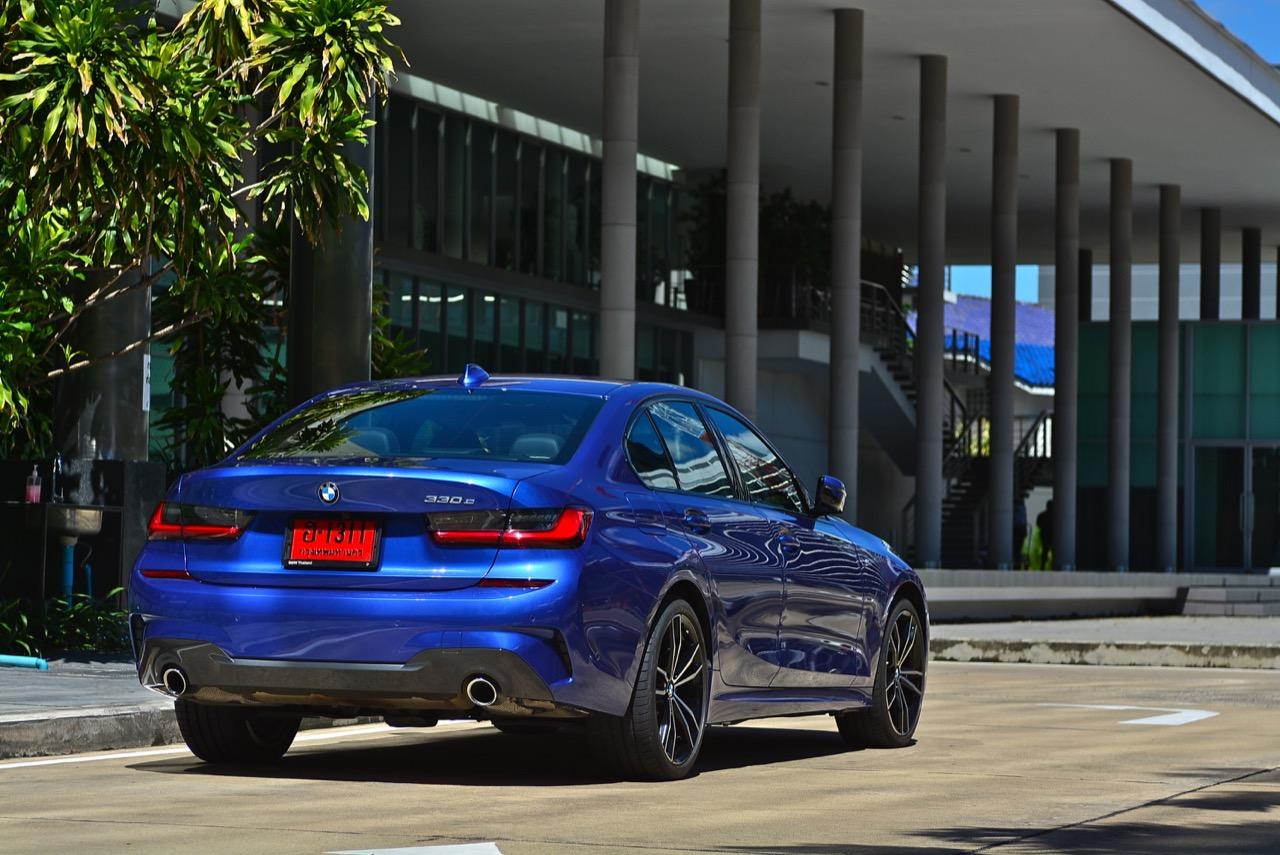 การเร่งเครื่องบนถนนที่คดเคี้ยวสอดรับกับการทำงานของช่วงล่างและชุดบังคับเลี้ยวได้อย่างน่าทึ่ง เลี้ยงรอบเอาไว้ในโค้งให้เหมาะสมแล้วกระแทกสวนในจังหวะที่หน้ารถกำลังจะออกจากปลายโค้งคุณจะพบกับการยึดเกาะที่มาดมั่นจนอยากจะไปให้เร็วมากกว่าเดิม ช่วงล่างที่เซตให้แข็งขึ้นกับยางสปอร์ตที่ใส่เข้ามาให้เพื่อสร้างแรงยึดเกาะ ทำให้เกิดความบันเทิงเริงรมย์ทุกครั้งที่เร่งความเร็วเพื่อแซงรถช้า และเมื่ออยากจะขับแบบเรื่อยๆ หากชาร์จไฟมาจนเต็ม BMW เคลมว่า 330e สามารถวิ่งด้วยมอเตอร์เพียวๆ ไกล 45-50 กิโลเมตร แต่เมื่อลองขับใช้งานจริง ด้วยความเร็วคงที่ 80-100 กิโลเมตรต่อชั่วโมง มันวิ่งบนด่วนอุดรรัถยาไกลเกือบ 40 กิโลเมตร เป็นรถปลั๊กอินที่ทำระยะทางจากพลังไฟในแบตฯ ได้ไกลเอาเรื่องเหมือนกัน