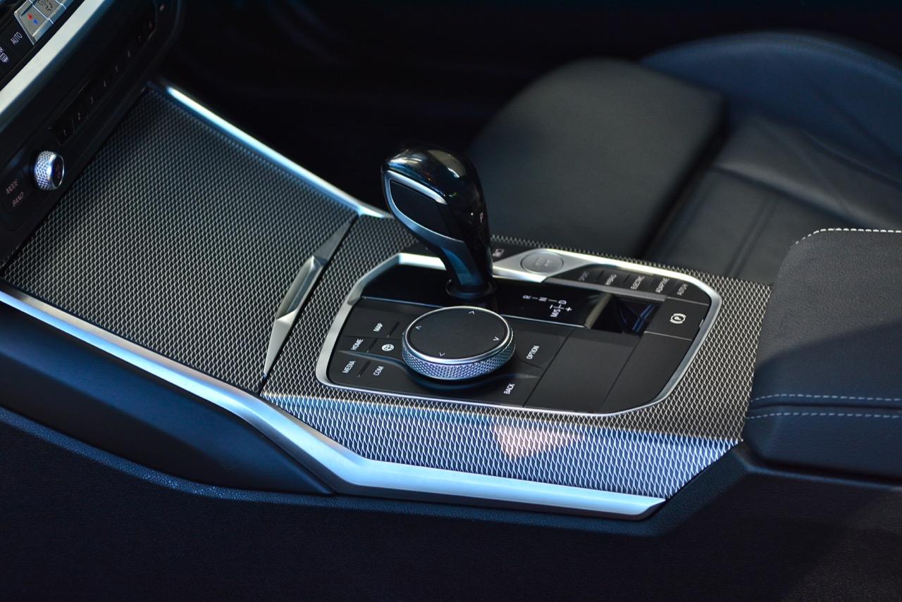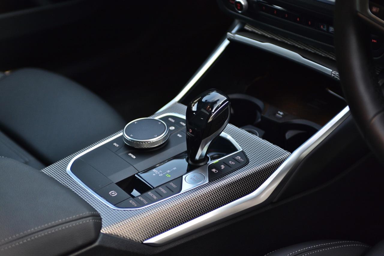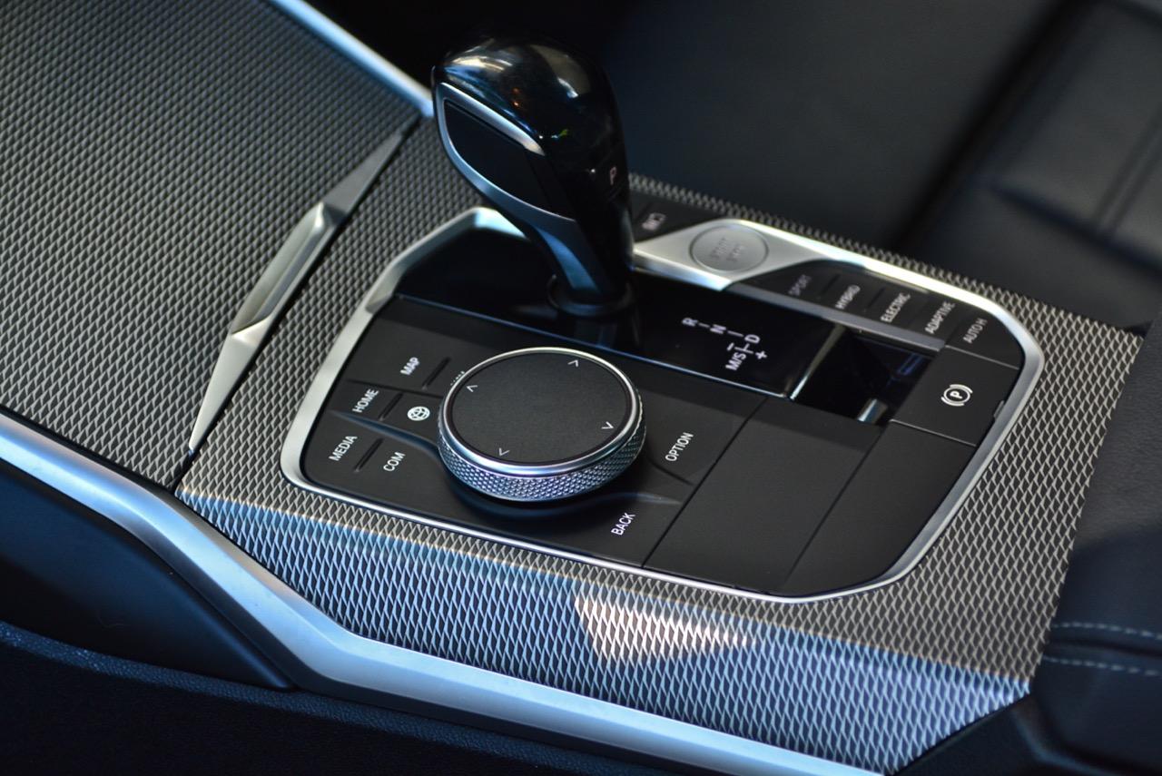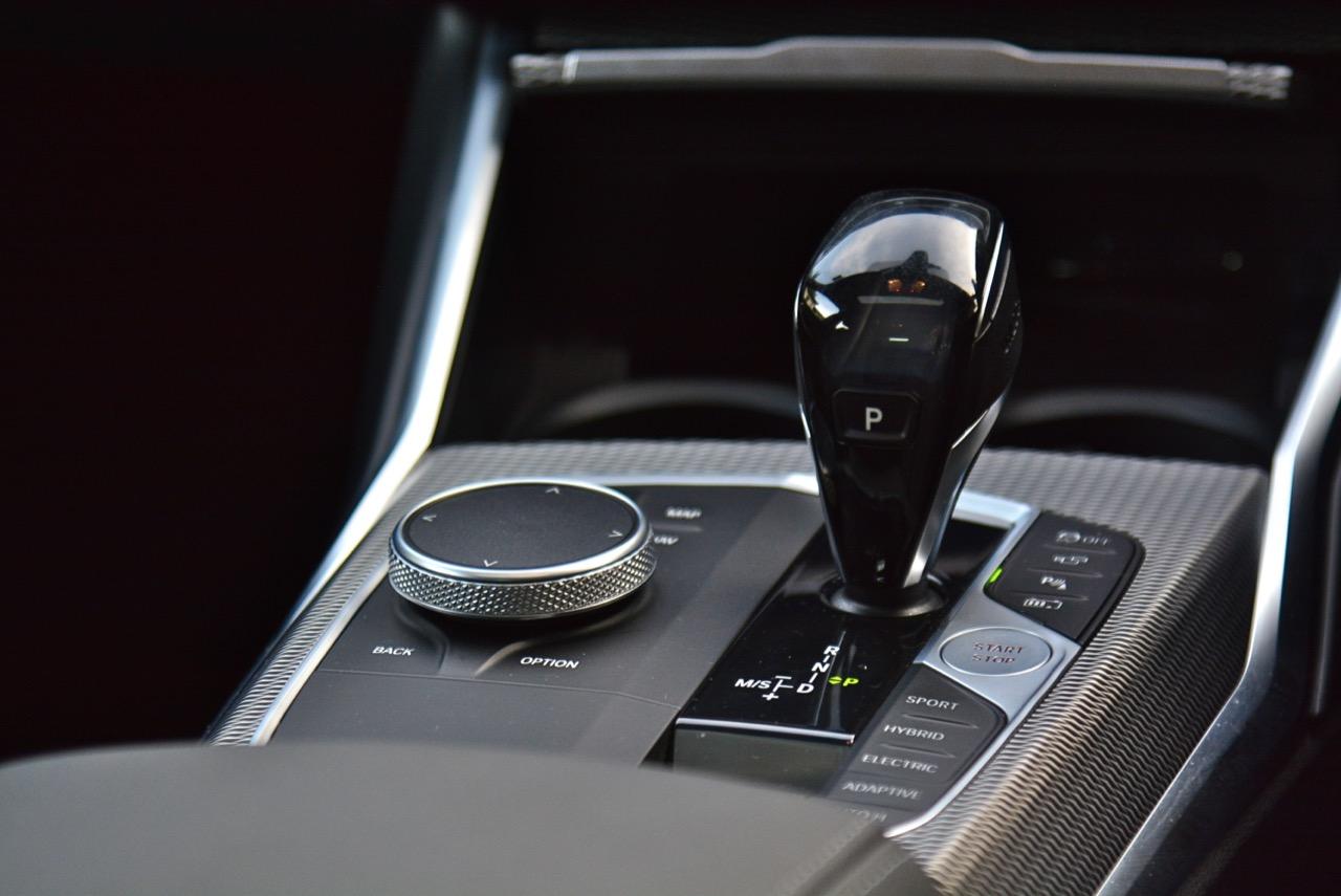 ซุ้มเกียร์มีดีไซน์ที่เก๋ไก๋ทันสมัยและมีขนาดใหญ่ขึ้น เชื่อมโยงกับช่องเก็บของที่เปิด-ปิดอย่างเรียบสนิท หัวเกียร์ ZF-8HP หน้าตาประหลาด จะกลมก็ไม่ใช่จะมนก็ไม่เชิงแต่ยึดจับได้ถนัดมือใช้งานแค่การโยกขึ้นลงในตำแหน่ง D-N R หรือผลักคันเกียร์ไปที่ด้านซ้ายในตำแหน่งแมนวล ข้างคันเกียร์ด้านซ้ายมีปุ่มควบคุมอยู่เพียบ เช่น ปุ่มแทรคชั่นคอนโทรล ปุ่มสตาร์ตเครื่องยนต์สีเงินยวง ปุ่มปรับโหมดของการขับเคลื่อน เช่น SPORT / HYBRID / ELECTRIC / ADAPTIVE ปุ่มควบคุมระบบเบรก Auto Brake hold ปุ่มกล้องมองรอบคัน ปุ่มระบบช่วยจอดอัตโนมัติ และสวิตช์เบรกมือไฟฟ้า ด้านซ้ายของคันเกียร์ติดตั้งสวิตช์ควบคุมมัลติฟังก์ชันระบบ iDRIVE แบบใหม่เชื่อมโยงกับระบบ BMW live cockpit professional มาพร้อมเมนูภาษาไทยและฟังก์ชันใช้งานเพิ่มเติมที่ใส่เข้ามาให้ใช้กันอย่างนับไม่ถ้วน ที่ชอบก็คือการสั่งงานด้วยเสียงภาษาไทยที่ระบบจะตอบโต้กับคำสั่งและแสดงให้เห็นว่ามันรู้เรื่องบ้าง ไม่รู้เรื่องบ้างพอให้ขำๆ