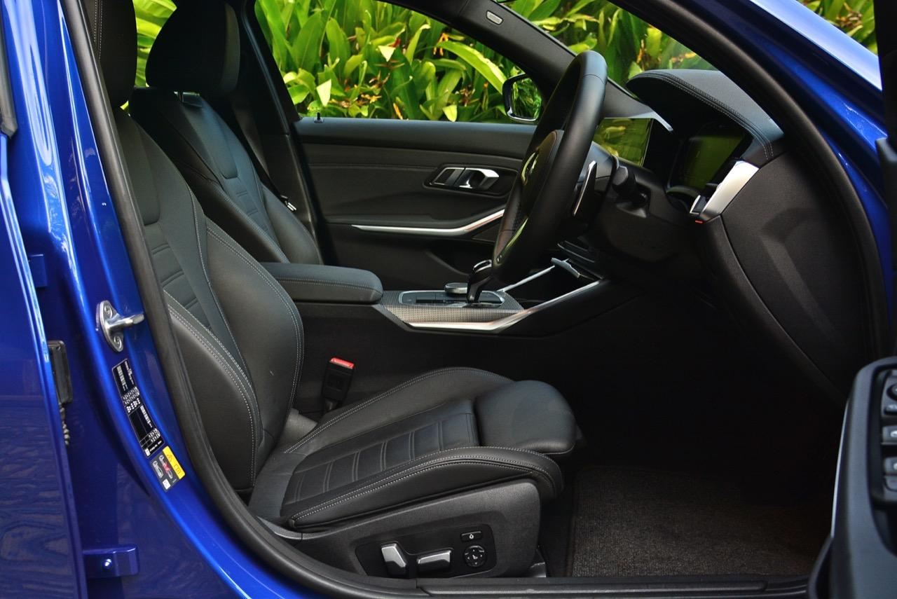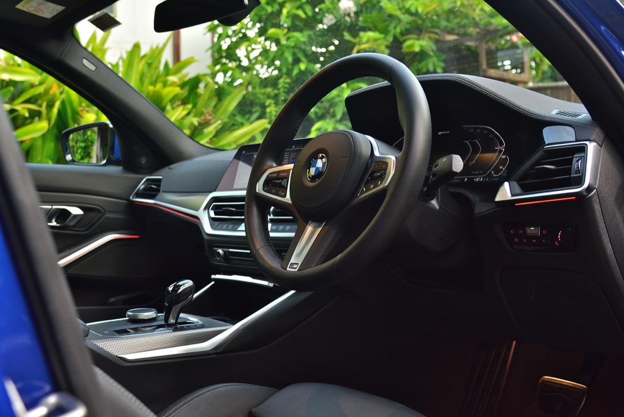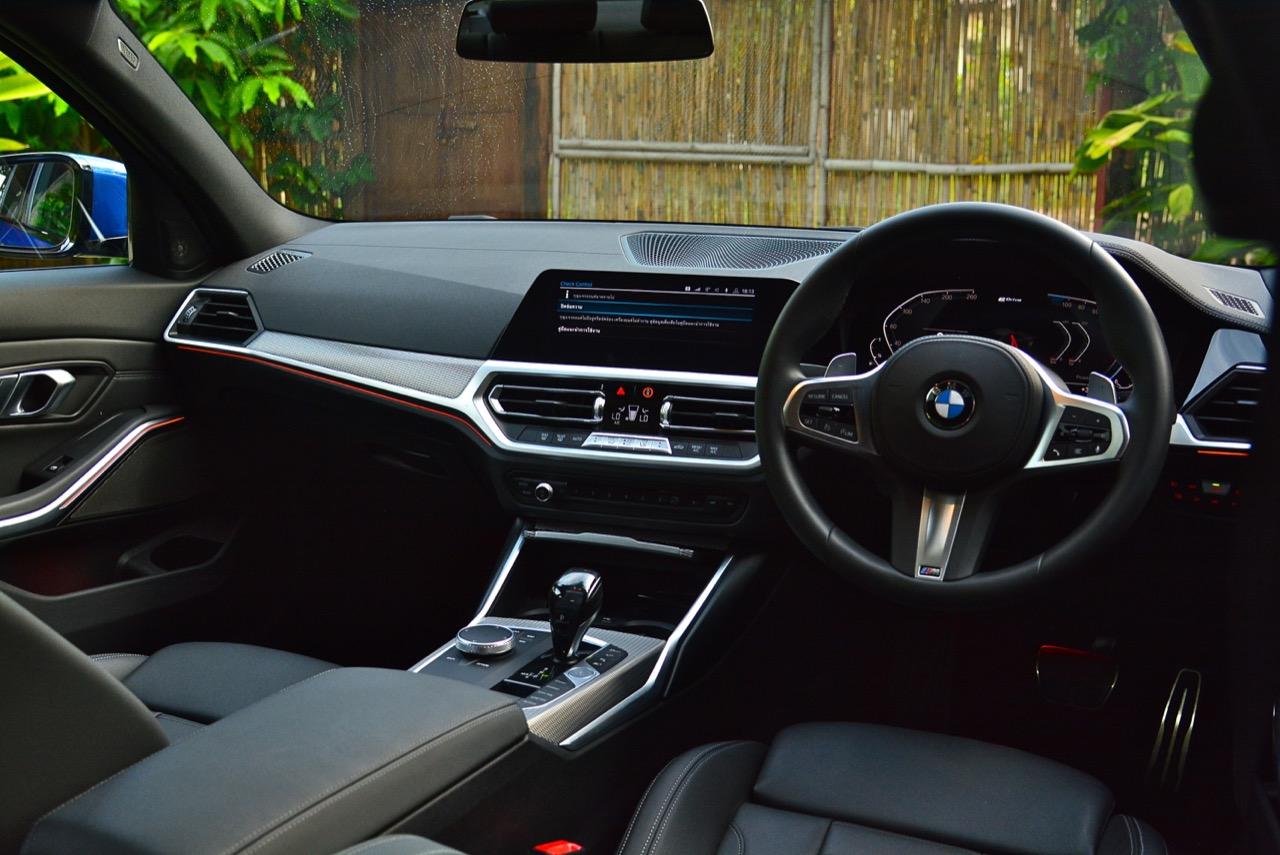 ห้องโดยสารของ BMW ยุคใหม่ มีการปรับปรุงที่ดีขึ้นในด้านของความทันสมัย เบาะไฟฟ้าแบบใหม่ที่สามารถกดต่ำให้เตี้ยได้ราวกับเบาะรถแข่ง พวงมาลัย M อวบอ้วนจับได้เต็มไม้เต็มมือดีพร้อมแป้น Paddle ที่ใหญ่โต สำหรับชุดแต่ง M-Sport ของ 330e คุณจะได้กันชนหน้า-หลังของ M ล้อ M ขอบ 19 นิ้ว เบรก M Performance คาร์ลิปเปอร์สีฟ้าที่สวยงามและมีพลังเบรกเหมาะสมกับย่านกำลังที่มากกว่า Series-3 รุ่นอื่นยกเว้น M340i