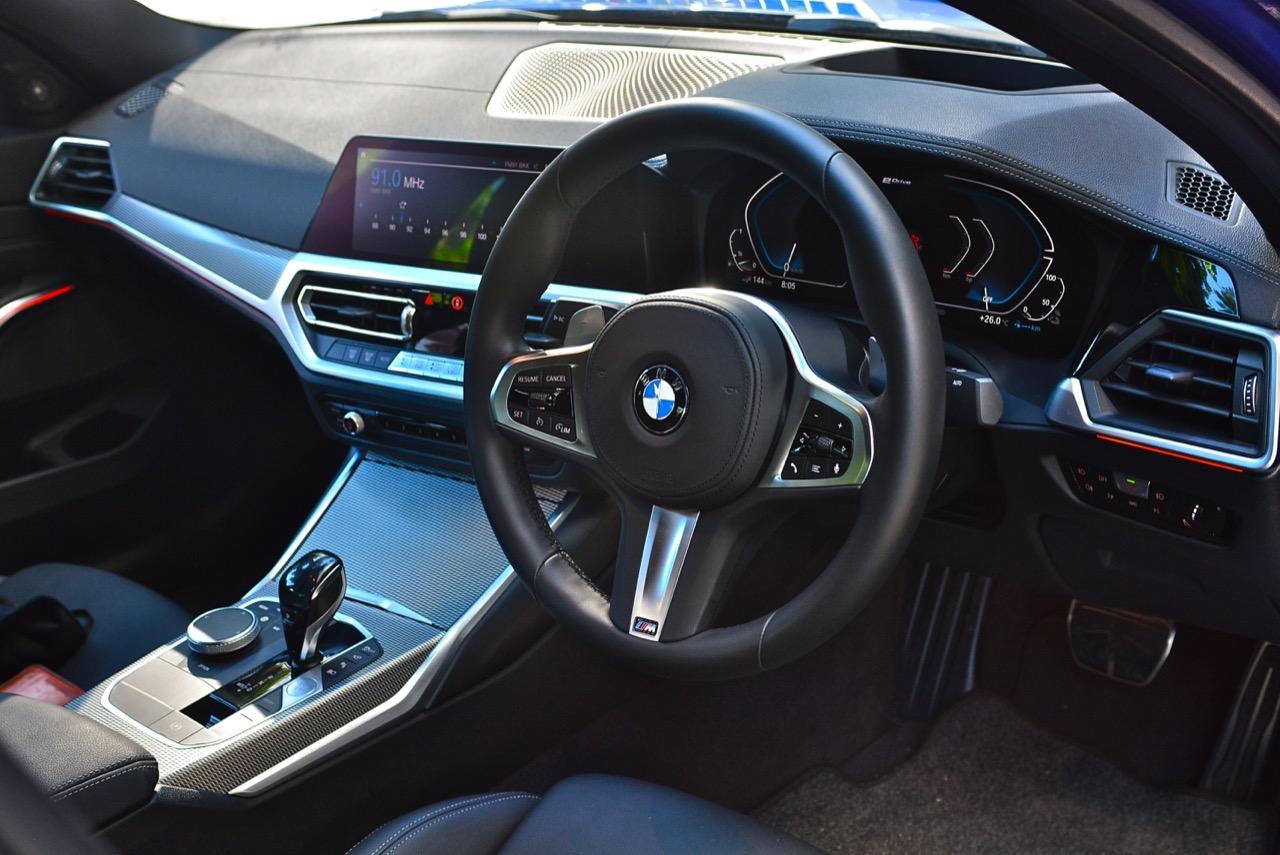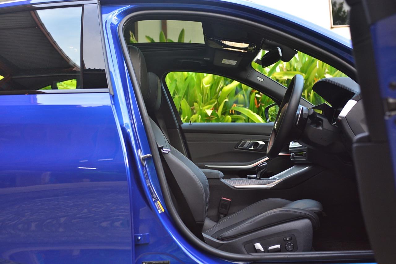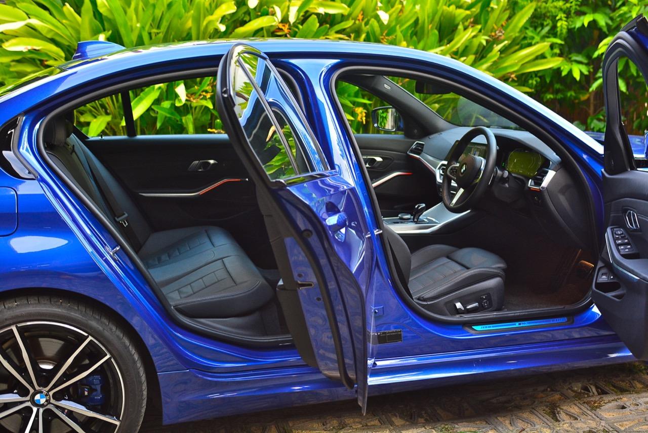 ห้องโดยสารของ BMW ยุคใหม่ มีการปรับปรุงที่ดีขึ้นในด้านของความทันสมัย เบาะไฟฟ้าแบบใหม่ที่สามารถกดต่ำให้เตี้ยได้ราวกับเบาะรถแข่ง พวงมาลัย M อวบอ้วนจับได้เต็มไม้เต็มมือดีพร้อมแป้น Paddle ที่ใหญ่โต สำหรับชุดแต่ง M-Sport ของ 330e คุณจะได้กันชนหน้า-หลังของ M ล้อ M ขอบ 19 นิ้ว เบรก M Performance คาร์ลิปเปอร์สีฟ้าที่สวยงามและมีพลังเบรกเหมาะสมกับย่านกำลังที่มากกว่า Series-3 รุ่นอื่นยกเว้น M340i