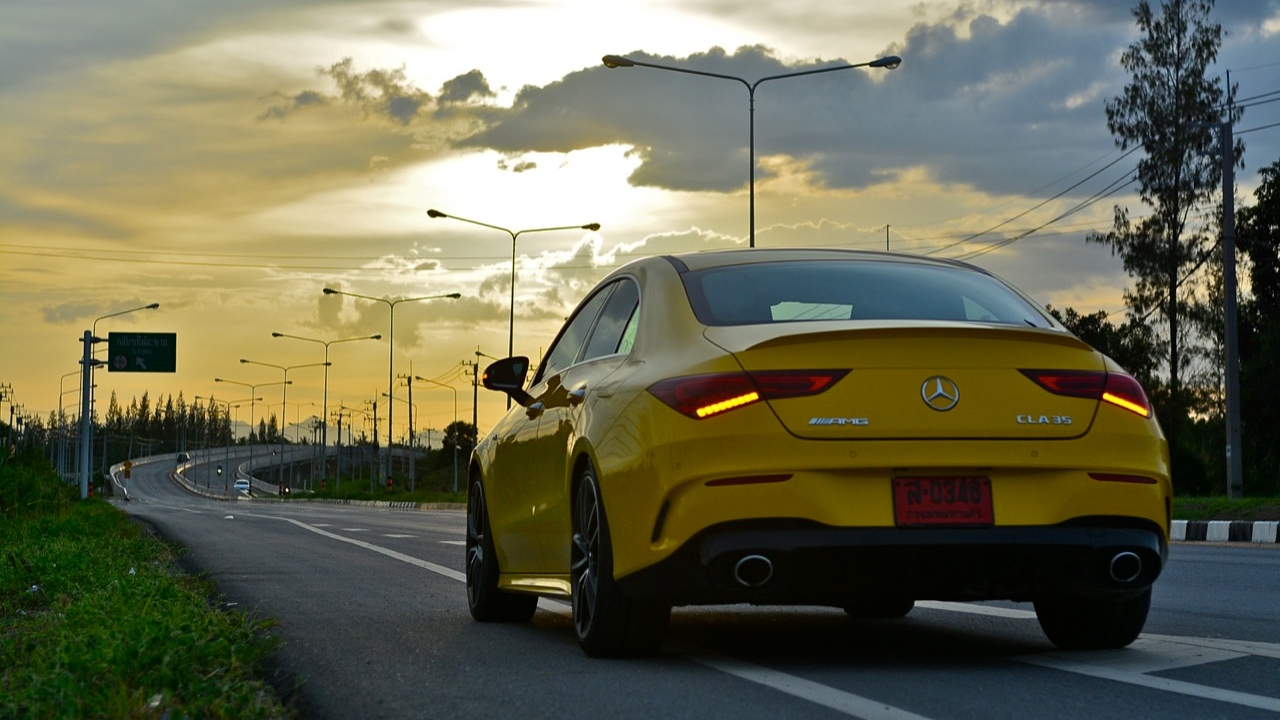 ทางตรงยาวส่วนใหญ่ในปากน้ำปราณบุรีไปจนถึงสามร้อยยอดและกุยบุรี มีทางโค้งยาวๆ ก่อนเข้าสู่เส้นปากน้ำปราณโดยแทบจะไม่มีทางลาดชันให้ทดสอบ การกระจายน้ำหนักบวกกับกลไกในการเฉลี่ยแรงบิดทำให้ไดนามิกส์ของรถดีเยี่ยม คอมพิวเตอร์ควบคุม Traction Control ทำงานร่วมกับยางได้ดี ทำให้หนูเล็กเด็กแสบสีเหลืองคันนี้วิ่งได้เนียนตาชนิดไร้ที่ติติง เป็นรถที่มีเครื่องยนต์ที่จะทำให้คุณขับแบบชอบกวาดให้รอบพุ่งขึ้นสูงอย่างรวดเร็ว เครื่องยนต์ 4 กระบอกสูบมีแรงบิดดีช่วงกลาง และไหลต่อเนื่องแบบยิงยาวราวกับเครื่อง 6 สูบเรียง หลังจากขับมาไกลถึง 300 กิโลเมตร จนมาปิดฉากด้วยการทดสอบอัตราเร่งที่ทางเข้าเขื่อนปราณบุรี AMG CLA35 เป็นรถเล็กที่มีศักยภาพในการทำความเร็วและการยึดเกาะสูงเอาเรื่อง หากไม่คำนึงถึงราคาเฉียดๆ 4 ล้านบาทของมัน การมี Baby CLS อยู่ในโรงจอดรถอีกคันคือเรื่องที่มีความเหมาะสมสำหรับนักขับหน้าใหม่ที่ไม่ต้องการรถแรงมากจนเกินไป เอาอยู่และขับหล่อได้ทุกครั้งตามที่ต้องการ มันให้ความรู้สึกเหมือน CLS53 แบบย่อส่วน เร่งติดเท้า เลี้ยวคมและเบรกดี ในราคานี้ จะมีอะไรที่ดีไปกว่า 35 อีกครับ!