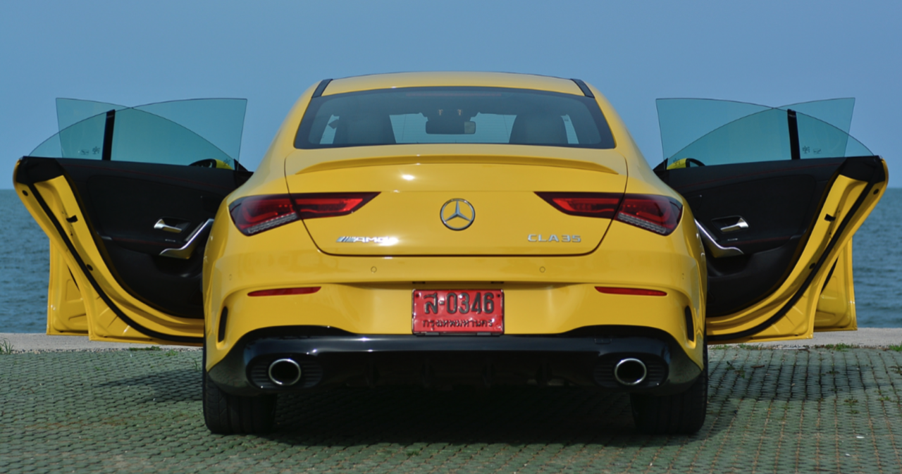 Mercedes-AMG CLA35 เปรียบเสมือนการนำรถคูเป้ 4 ประตูอย่าง Mercedes-Benz CLS มาย่อส่วนโดยใช้แพลตฟอร์มของ A-Class เจเนอเรชั่นที่ 2 ของ CLA ในเวอร์ชั่น AMG ยังคงใช้ระบบขับเคลื่อนหลักแบบขับเคลื่อน 4 ล้อ ด้วยกลไกไฟฟ้าในระบบ 4Matic ราคาขายที่โดยอัตราภาษีนำเข้าอย่างหนักหน่วง ทำให้ค่าตัวของมันทะยานขึ้นไปแตะ 3,999,000 บาท เมื่อมองดูรูปลักษณ์ทั่วทั้งคัน CLA เป็นรถที่สมส่วนแม้จะไม่งดงามลงตัวเท่ากับ CLS แต่บางจุดของตัวถัง โดยเฉพาะด้านข้างนั้นเหมือนถูกถอดแบบมาจากรถรุ่นพี่ งานดีไซน์ที่ไหลลื่นงดงามเกือบจะสมบูรณ์แบบ แต่เมื่อถอยห่างจากรถ คุณจะพบว่าด้านหน้าของมันสั้นและดูป้อมๆ มากกว่า CLS จากขนาดตัวถังที่เล็กกว่า ส่วนท้ายที่ลงตัวมากกว่ารุ่นแรก ในขณะที่ล้อทั้ง 4 ใส่ยางเท่ากันหมด ไม่ได้ใส่ยางหน้าเล็กหลังใหญ่เหมือน CLS สำหรับ CLA นี่คือรถขับเคลื่อน 4 ล้อที่มีเครื่องยนต์ 2.0 ลิตร อันทรงพลัง และอยู่ในกลุ่มเดียวกับคู่แข่งมากความสามารถอย่าง BMW M235i