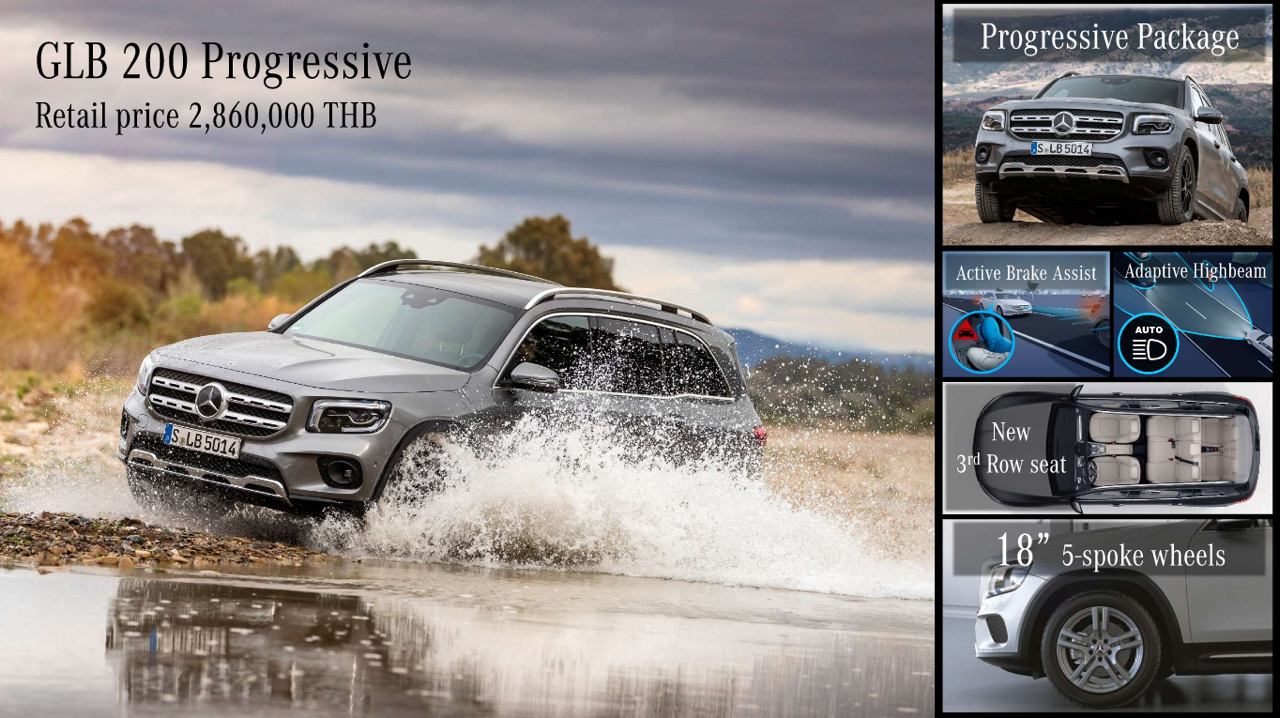 ขยับขึ้นไปอีกนิดคุณจะพบกับเอสยูวีไซส์เล็กแบบ 7 ที่นั่ง! นี่คือ Mercedes-Benz GLB รถอเนกประสงค์ประกอบต่างประเทศที่เพิ่งจะเปิดตัวไปสดๆ ร้อนๆ ในช่วงก่อนการแพร่ระบาดของไวรัสโควิด-19 แค่นิดเดียวเท่านั้น GLB มีขนาดเล็กกว่า GLC แต่ดันมี 7 ที่นั่ง เนื่องจากความต้องการพื้นที่โดยสารของลูกค้าที่เพิ่มมากขึ้นแต่ไม่ต้องการจ่ายแพงเพื่อซื้อรถที่มีขนาดใหญ่กว่า ราคา 2,860,000 บาท เป็นการนำเข้าจากต่างประเทศทั้งคัน Mercedes-Benz GLB ที่ขายในไทย เป็นรถรุ่น 200 Progressive วางเครื่องยนต์เบนซินแถวเรียง 4 สูบ เทอร์โบ รุ่นใหม่ล่าสุด ปริมาตรความจุเครื่องยนต์ 1.4 ลิตร อัดอากาศด้วยเทอร์โบ กำลัง 163 แรงม้า แรงบิด 250 นิวตันเมตร ระบบส่งกำลังใช้เกียร์อัตโนมัติ 7-G DCT ขับเคลื่อนล้อหน้า อัตราเร่งจาก 0-100 ใน 9.1 วินาที (ช้ากว่า GLA200 Urban ถึง 1 วินาที) จุดเด่นของGLB ก็คือการเป็นรถเอสยูวีไซส์เล็กรุ่นใหม่ล่าสุดพร้อม MBUX ระบบมัลติมีเดียแบบใหม่ล่าสุด จอภาพมาตรวัดและจอภาพมอนิเตอร์แบบใหม่ ห้องโดยสารทันสมัยด้วยอุปกรณ์ในยุค 2020 ซึ่งรวมถึงเบาะแถวที่ 3 ที่เข้ามาสร้างความแตกต่างไปจาก GLA ในด้านความจุอย่างชัดเจนที่สุด