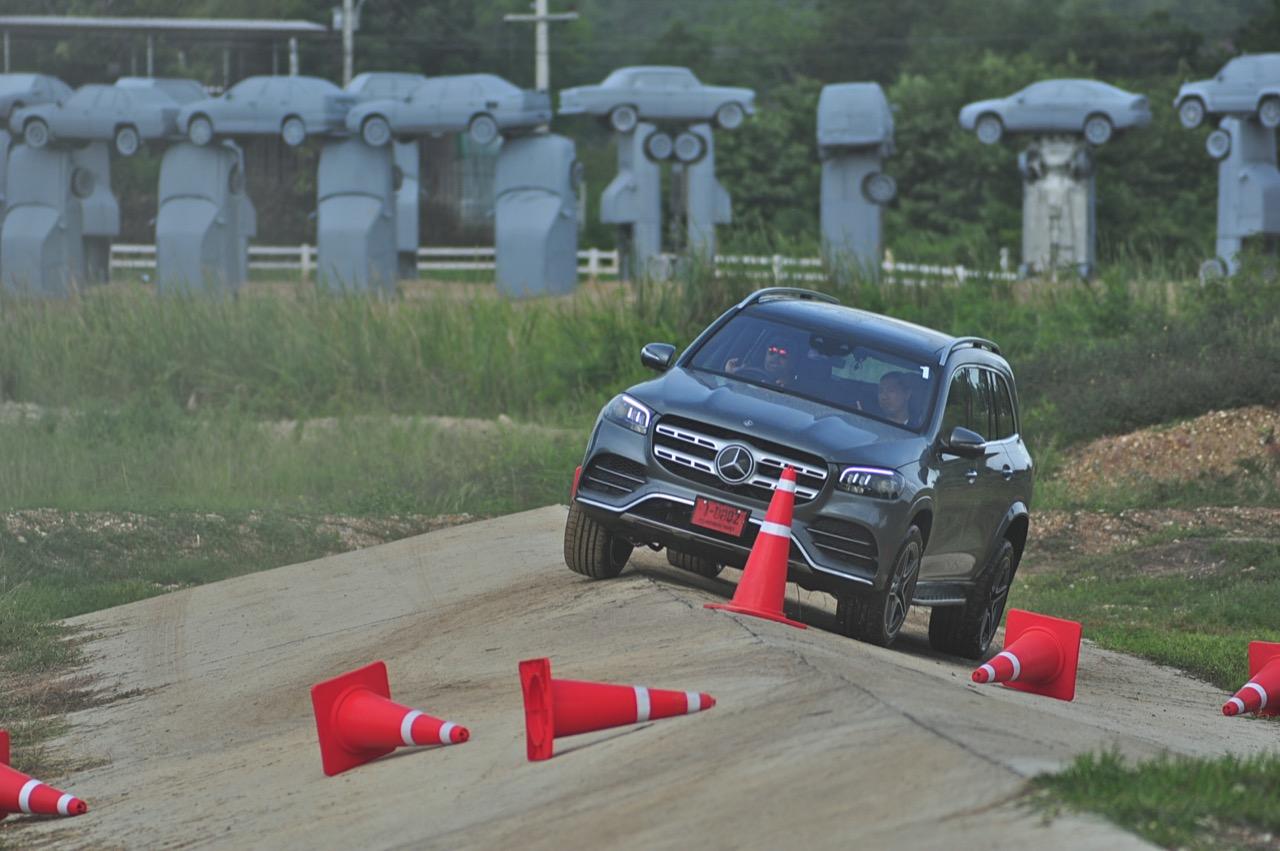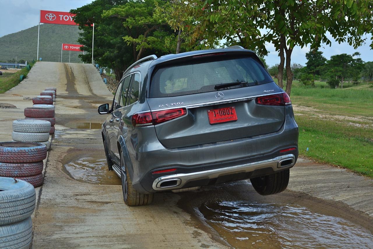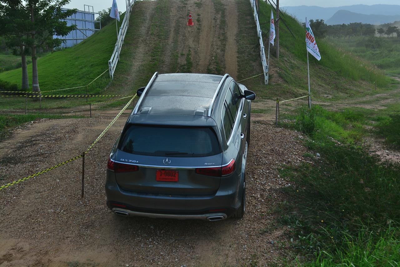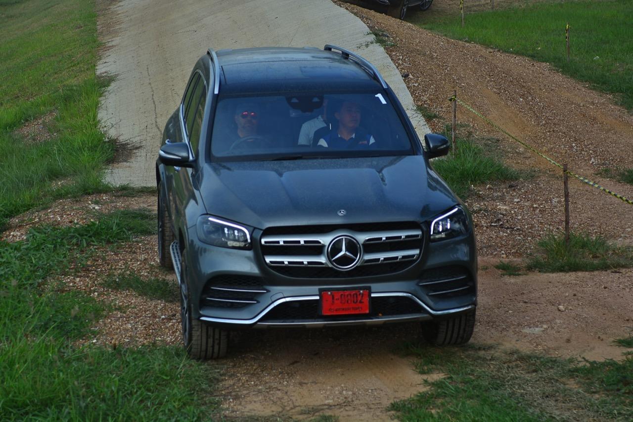 ทักษะการควบคุมบนเส้นทางออฟโรดที่ยากลำบาก มีสองสิ่งที่ต้องควบคู่กันไปกับการขับฝ่าเส้นทางที่เต็มไปด้วยอุปสรรคก็คือ การวางตำแหน่งรถให้ถูกต้องและการใช้คันเร่งอย่างค่อยเป็นค่อยไป Mercedes-Benz Hill Start Assist และการเฉลี่ยแรงบิดไปยังแต่ละล้อของระบบ 4 Matic เข้ามาจัดการให้เกือบทั้งหมด เหลือแค่การคอนโทรลพวงมาลัยให้ถูกต้องกับเส้นทางที่จะมุ่งไปข้างหน้า และการใช้คันเร่งแบบไม่เข่น ค่อยๆ เติมในจังหวะที่รถอยู่ในระนาบที่ผิดปกติ ก็สามารถฟันฝ่าอุปสรรคบนเส้นทางได้อย่างสบายๆ สถานีหลุมลึกสลับไปมาเป็นการใช้เบรกช่วยถ่ายน้ำหนักที่มากถึง 2.4 ตัน โดยค่อยๆ คลายเบรกให้รถไหลอย่างช้าๆ แบบหย่อนลงและไต่ขึ้นโดยใช้ความเร็วต่ำแทบจะคลาน ส่วนสถานีเนินเอียงสลับซ้ายที ขวาที ก็มีสภาพที่ไม่แตกต่างกันนัก นั่นก็คือ ล้อหลังจะยกขึ้นจึงต้องใช้ความระวังในการวางตำแหน่งรถโดยแทบจะไม่ไปยุ่งกับคันเร่ง ส่วนสถานีเนินดินสูงชัน เป็นจุดเดียวที่ต้องกดคันเร่งมากกว่าปกติเพื่อให้รถสามารถไต่ขึ้นเนินไปได้พร้อมระบบ Hill Start Assist ที่ช่วยประคองตอนไหลลงเนิน ส่วนการลุยน้ำลึก 50 เซนติเมตร ก็ไม่ใช่ปัญหาของเจ้ายักษ์เอสยูวีคันนี้ แค่แตะคันเร่งเบาๆ ประคองความเร็วให้อยู่ในระดับต่ำแค่ 10 กิโลเมตรต่อชั่วโมง GLS สามารถวิ่งผ่านแอ่งน้ำลึกได้อย่างสบาย เครื่องยนต์ 6 สูบดีเซลยังมาพร้อมกับความประหยัดและมีมลพิษต่ำ รวมถึงควมประณีตของงานประกอบภายใน บวกกับความสามารถในการฝ่าฟันอุปสรรคบนเส้นทางออฟโรด แต่จะมีเศรษฐีสักกี่คนที่กล้าเอารถราคาเฉียดๆ 10 ล้านไปลุยโหดแบบนี้!