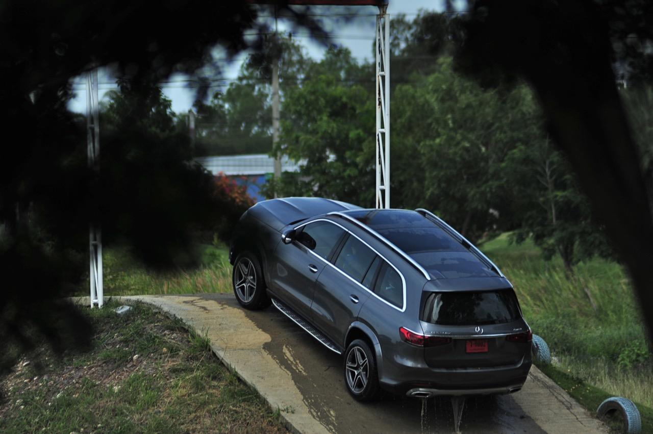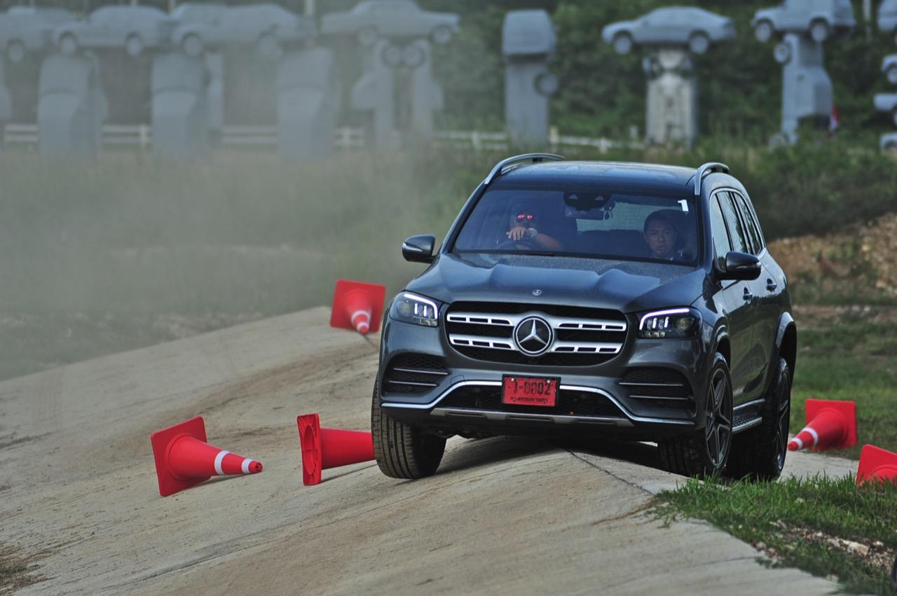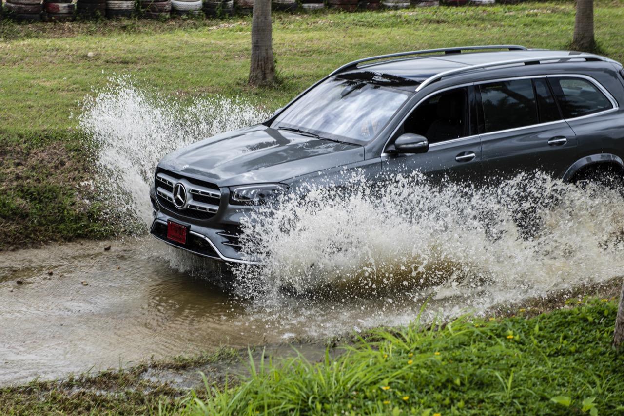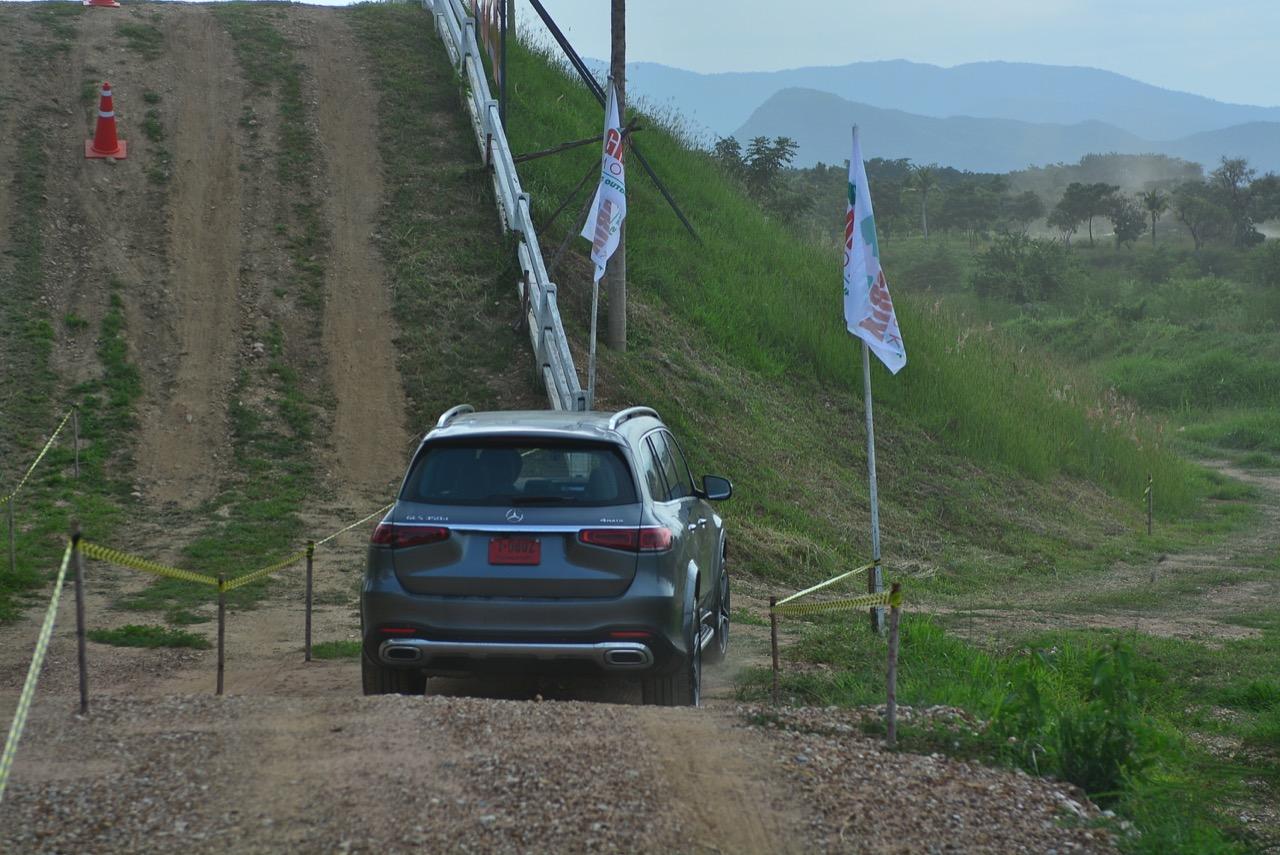 ทักษะการควบคุมบนเส้นทางออฟโรดที่ยากลำบาก มีสองสิ่งที่ต้องควบคู่กันไปกับการขับฝ่าเส้นทางที่เต็มไปด้วยอุปสรรคก็คือ การวางตำแหน่งรถให้ถูกต้องและการใช้คันเร่งอย่างค่อยเป็นค่อยไป Mercedes-Benz Hill Start Assist และการเฉลี่ยแรงบิดไปยังแต่ละล้อของระบบ 4 Matic เข้ามาจัดการให้เกือบทั้งหมด เหลือแค่การคอนโทรลพวงมาลัยให้ถูกต้องกับเส้นทางที่จะมุ่งไปข้างหน้า และการใช้คันเร่งแบบไม่เข่น ค่อยๆ เติมในจังหวะที่รถอยู่ในระนาบที่ผิดปกติ ก็สามารถฟันฝ่าอุปสรรคบนเส้นทางได้อย่างสบายๆ สถานีหลุมลึกสลับไปมาเป็นการใช้เบรกช่วยถ่ายน้ำหนักที่มากถึง 2.4 ตัน โดยค่อยๆ คลายเบรกให้รถไหลอย่างช้าๆ แบบหย่อนลงและไต่ขึ้นโดยใช้ความเร็วต่ำแทบจะคลาน ส่วนสถานีเนินเอียงสลับซ้ายที ขวาที ก็มีสภาพที่ไม่แตกต่างกันนัก นั่นก็คือ ล้อหลังจะยกขึ้นจึงต้องใช้ความระวังในการวางตำแหน่งรถโดยแทบจะไม่ไปยุ่งกับคันเร่ง ส่วนสถานีเนินดินสูงชัน เป็นจุดเดียวที่ต้องกดคันเร่งมากกว่าปกติเพื่อให้รถสามารถไต่ขึ้นเนินไปได้พร้อมระบบ Hill Start Assist ที่ช่วยประคองตอนไหลลงเนิน ส่วนการลุยน้ำลึก 50 เซนติเมตร ก็ไม่ใช่ปัญหาของเจ้ายักษ์เอสยูวีคันนี้ แค่แตะคันเร่งเบาๆ ประคองความเร็วให้อยู่ในระดับต่ำแค่ 10 กิโลเมตรต่อชั่วโมง GLS สามารถวิ่งผ่านแอ่งน้ำลึกได้อย่างสบาย เครื่องยนต์ 6 สูบดีเซลยังมาพร้อมกับความประหยัดและมีมลพิษต่ำ รวมถึงควมประณีตของงานประกอบภายใน บวกกับความสามารถในการฝ่าฟันอุปสรรคบนเส้นทางออฟโรด แต่จะมีเศรษฐีสักกี่คนที่กล้าเอารถราคาเฉียดๆ 10 ล้านไปลุยโหดแบบนี้!