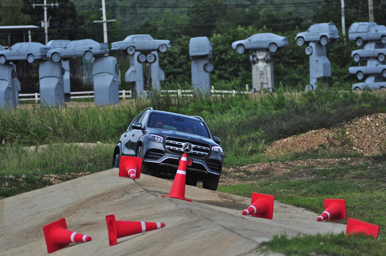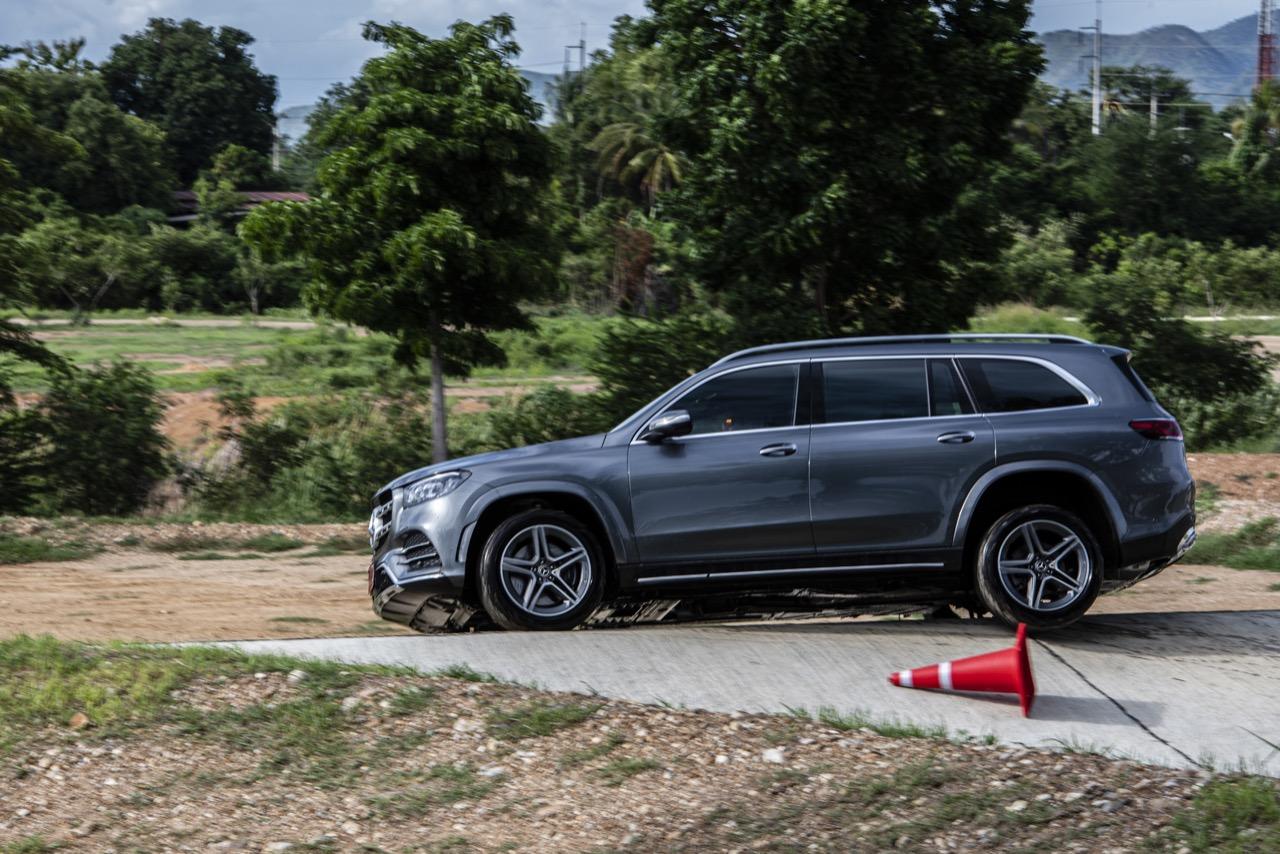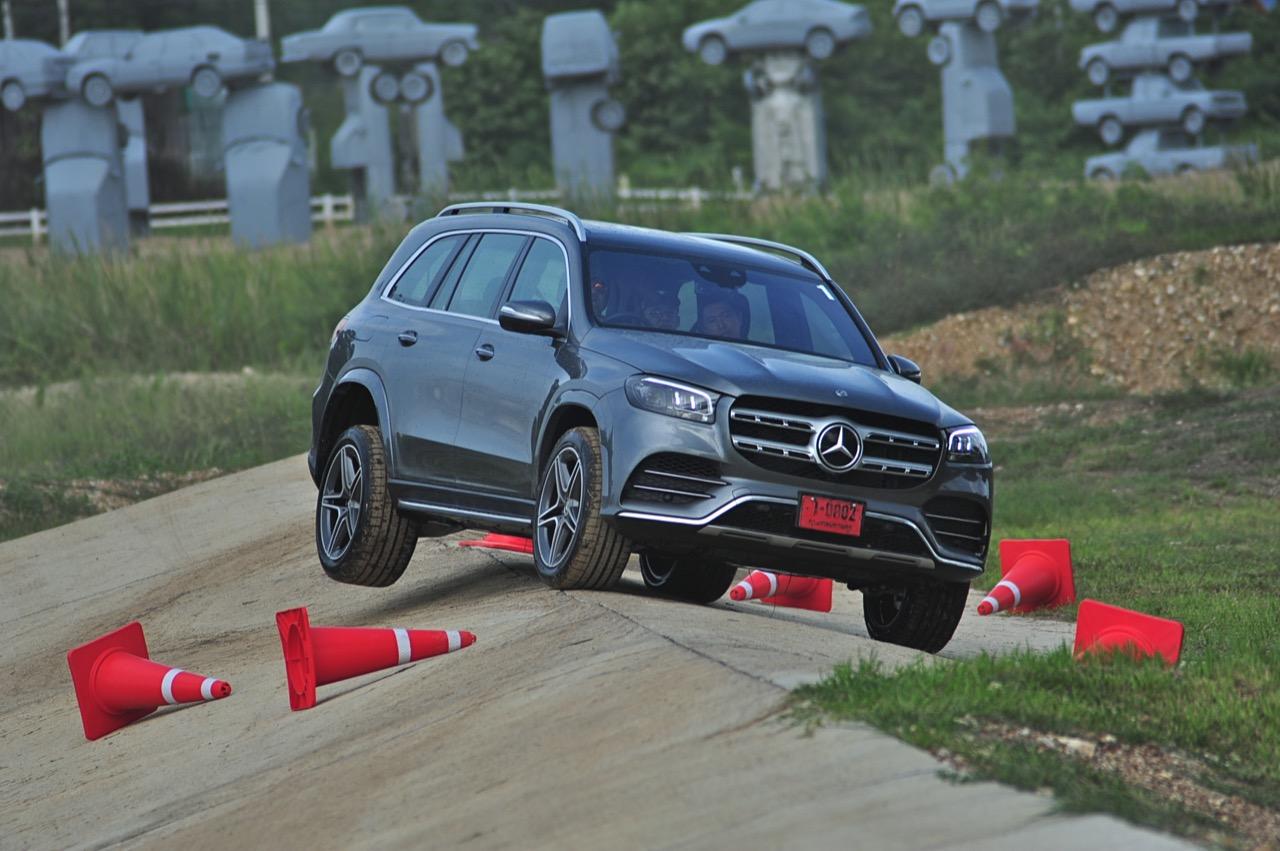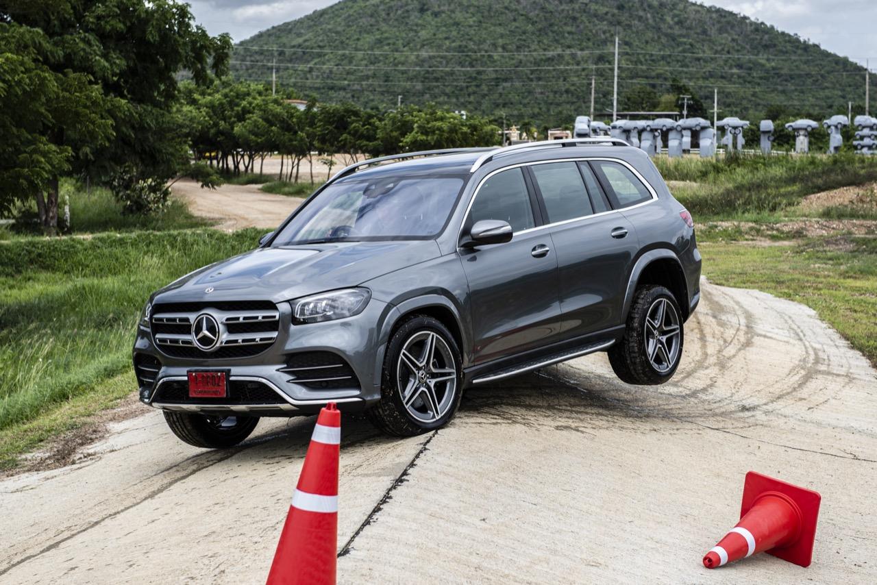 ทักษะการควบคุมบนเส้นทางออฟโรดที่ยากลำบาก มีสองสิ่งที่ต้องควบคู่กันไปกับการขับฝ่าเส้นทางที่เต็มไปด้วยอุปสรรคก็คือ การวางตำแหน่งรถให้ถูกต้องและการใช้คันเร่งอย่างค่อยเป็นค่อยไป Mercedes-Benz Hill Start Assist และการเฉลี่ยแรงบิดไปยังแต่ละล้อของระบบ 4 Matic เข้ามาจัดการให้เกือบทั้งหมด เหลือแค่การคอนโทรลพวงมาลัยให้ถูกต้องกับเส้นทางที่จะมุ่งไปข้างหน้า และการใช้คันเร่งแบบไม่เข่น ค่อยๆ เติมในจังหวะที่รถอยู่ในระนาบที่ผิดปกติ ก็สามารถฟันฝ่าอุปสรรคบนเส้นทางได้อย่างสบายๆ สถานีหลุมลึกสลับไปมาเป็นการใช้เบรกช่วยถ่ายน้ำหนักที่มากถึง 2.4 ตัน โดยค่อยๆ คลายเบรกให้รถไหลอย่างช้าๆ แบบหย่อนลงและไต่ขึ้นโดยใช้ความเร็วต่ำแทบจะคลาน ส่วนสถานีเนินเอียงสลับซ้ายที ขวาที ก็มีสภาพที่ไม่แตกต่างกันนัก นั่นก็คือ ล้อหลังจะยกขึ้นจึงต้องใช้ความระวังในการวางตำแหน่งรถโดยแทบจะไม่ไปยุ่งกับคันเร่ง ส่วนสถานีเนินดินสูงชัน เป็นจุดเดียวที่ต้องกดคันเร่งมากกว่าปกติเพื่อให้รถสามารถไต่ขึ้นเนินไปได้พร้อมระบบ Hill Start Assist ที่ช่วยประคองตอนไหลลงเนิน ส่วนการลุยน้ำลึก 50 เซนติเมตร ก็ไม่ใช่ปัญหาของเจ้ายักษ์เอสยูวีคันนี้ แค่แตะคันเร่งเบาๆ ประคองความเร็วให้อยู่ในระดับต่ำแค่ 10 กิโลเมตรต่อชั่วโมง GLS สามารถวิ่งผ่านแอ่งน้ำลึกได้อย่างสบาย เครื่องยนต์ 6 สูบดีเซลยังมาพร้อมกับความประหยัดและมีมลพิษต่ำ รวมถึงควมประณีตของงานประกอบภายใน บวกกับความสามารถในการฝ่าฟันอุปสรรคบนเส้นทางออฟโรด แต่จะมีเศรษฐีสักกี่คนที่กล้าเอารถราคาเฉียดๆ 10 ล้านไปลุยโหดแบบนี้!