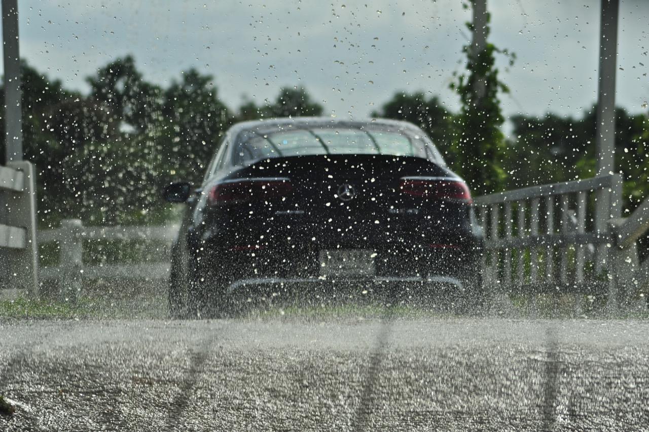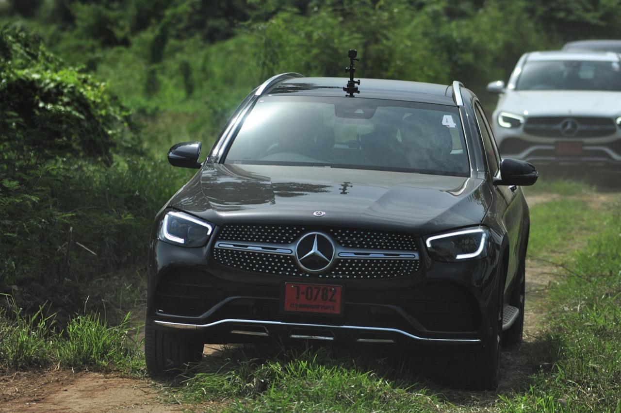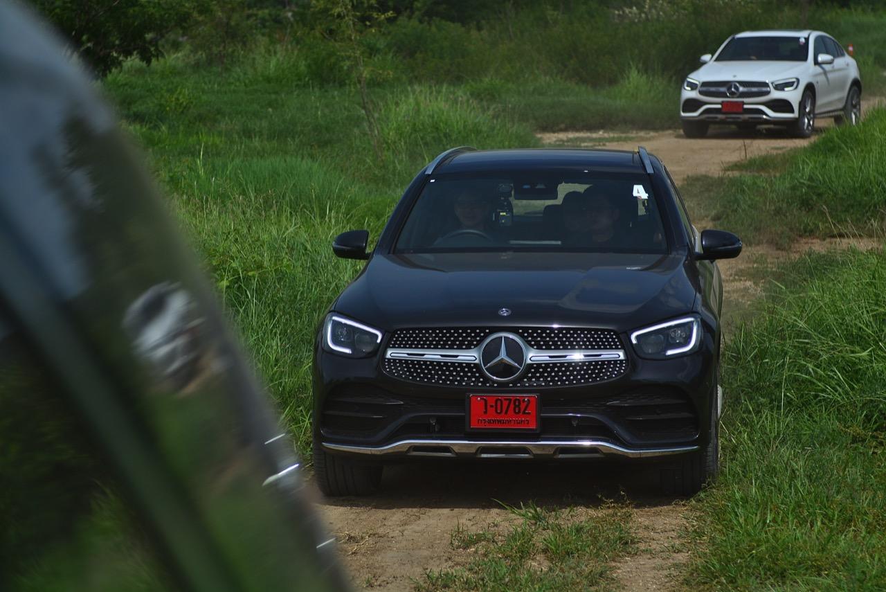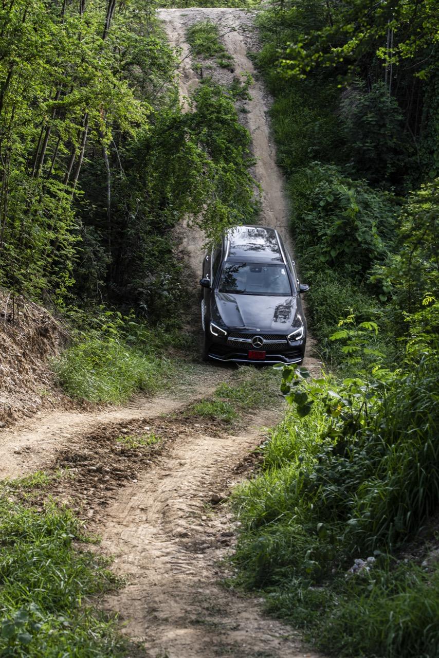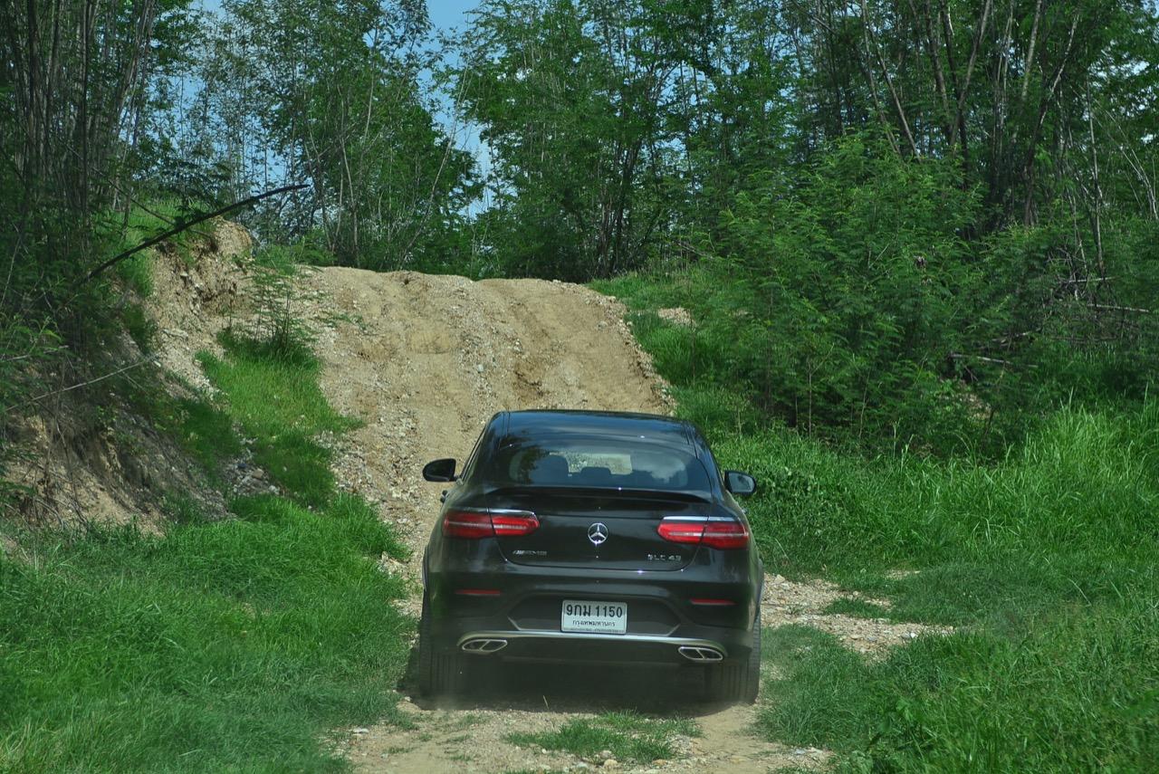 งาน Mercedes-Benz SUV Driving Experience ที่สนามทดสอบการขับขี่แบบออฟโรดของกรังด์ปรีซ์ในอำเภอบ่อพลอย กาญจนบุรี มีความโหดหินเอาเรื่อง สถานีต่างๆ ที่จำลองพื้นที่โหดบนเส้นทางออฟโรด ถูกออกแบบให้ผังและรูปแบบของสนามเหมาะกับรถกระบะขับเคลื่อน 4 ล้อ มากกว่าจะเอาเอสยูวีหรูราคาแพงลงไปลุยแบบจัดหนัก สถานีแรกกับการขับ Mercedes-Benz New GLE300d 4Matic นั่นก็คือ การขับแบบ 4x4 Adventure ความยาวรวม 4.5 กิโลเมตร จำลองสถานการณ์โหดของการขับลุยทุ่งลุยป่า ฝ่าเนินดินที่มีความสูงชัน พื้นที่รอบๆ สนามทดสอบที่เป็นเนินดินสลับป่าละเมาะถูกสร้างขึ้นเพื่อการลุยโดยเฉพาะ เมื่ออยู่บนเส้นทางออฟโรด GLE รุ่นเครื่องยนต์เล็กสุดทำหน้าที่ได้ดี ฮาร์ดแวร์ของระบบขับเคลื่อน 4 ล้อ 4Matic ที่ปรับปรุงใหม่ทำให้ระบบขับเคลื่อนตอบสนองได้เร็วขึ้น ระบบไต่ลงจากเนินสูงชันทำงานไวช่วยประคับประคองไม่ให้ส่วนหน้าของ GLE ทิ่มลงไปบนดินแข็งๆ ซึ่งอาจทำให้เกิดความเสียหาย การปิดระบบควบคุมการทรงตัว ทำให้แรงบิดขณะเร่งขึ้นเนินสูงไหลออกมาเต็มๆ การตะกายไต่ขึ้นเนินเขาสูงชันทำได้ดี ส่วนการถ่ายทอดกำลังและการวางตำแหน่งรถให้ถูกต้อง เป็นหน้าที่ของสื่อมวลชนที่ต้องทำให้ดีเพื่อเอาตัวรอดและหลีกเลี่ยงอุบัติเหตุที่อาจเกิดขึ้นได้หากวางตำแหน่งรถผิดพลาด GLE มีจุดอ่อนที่ใต้ท้องรถ เมื่อเจอทางวิบากหนักข้อก็อาจทำให้ท้องรถติด ระบบขับเคลื่อนทำหน้าที่ได้ดีมากเมื่อลุยฝ่าทางที่เต็มไปด้วยดินและหิน ในชีวิตจริง การขับลุยน้ำท่วมหรือขับฝ่าทางขรุขระมีบ่อโคลนเล็กๆ ไม่ใช่ปัญหาของมัน แต่อย่าหวังว่ามันจะลุยได้หนักกว่านี้ เป็นรถที่ดีและมีบุคลิกตามแบบฉบับของรถอเนกประสงค์ ความใหญ่โตของห้องโดยสาร ให้ความรู้สึกสะดวกสบาย แถมยังควบคุมได้ง่ายจากระบบต่างๆ ที่คอยประคับประคองทั้งบนทางเรียบและทางวิบาก