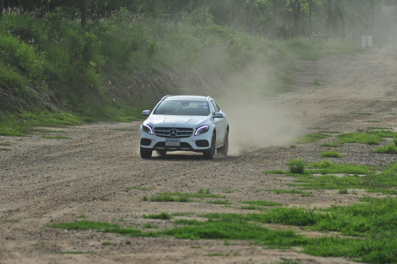 สถานีสุดท้ายของวันทดสอบและเรียนรู้การขับขี่ออฟโรด Mercedes-Benz SUV Driving Experience เป็นสถานีแก้เสี้ยน จำลองการขับในสนามทดสอบด้วยสปีดความเร็วสูงสไตล์ Rally Cross ด้วยรถ Mercedes-Benz GLC / GLA และ ครอสโอเวอร์ขับหน้ารุ่นใหม่ประกอบต่างประเทศ Mercedes-Benz GLB ผมเดินไปที่ GLA200 Urban แบบไม่ลังเล เนื่องจากความคล่องตัวและขนาดที่เล็กกะทัดรัด เหมาะกับการสาดโค้งทำความเร็วในสนามที่มีผิวทางที่เต็มไปด้วยหินก้อนโตและฝุ่นลูกรังสีแดง Twin Track Speed Circuit ความยาว 3,000 เมตร เป็นการขับที่เต็มไปด้วยความสนุกสนาน ท้ายรถที่บานออกด้านข้างทำให้ต้องแต่งพวงมาลัยและคันเร่งไปตลอดทาง สถานีนี้มีรถยางแหกไปหลายคัน เนื่องจากเป็นยางสปอร์ตทางเรียบ แต่โดนเอามาทรมานด้วยการบดลงไปบนหินและกรวด เมื่อจบสเตชั่นสุดท้ายรถทดสอบก็มีทั้งลมรั่วและดอกยางร่อน แต่สิ่งที่ได้รับกลับมาก็คือ ทั้ง GLC GLA และ GLB นั้นวิ่งในสนาม Rally Cross ได้อย่างเมามัน ทั้งๆที่เป็นรถขับเคลื่อนล้อหน้าแต่สไลส์ราวกับรถขับเคลื่อนล้อหลังยังไงยังงั้นเลยทีเดียว