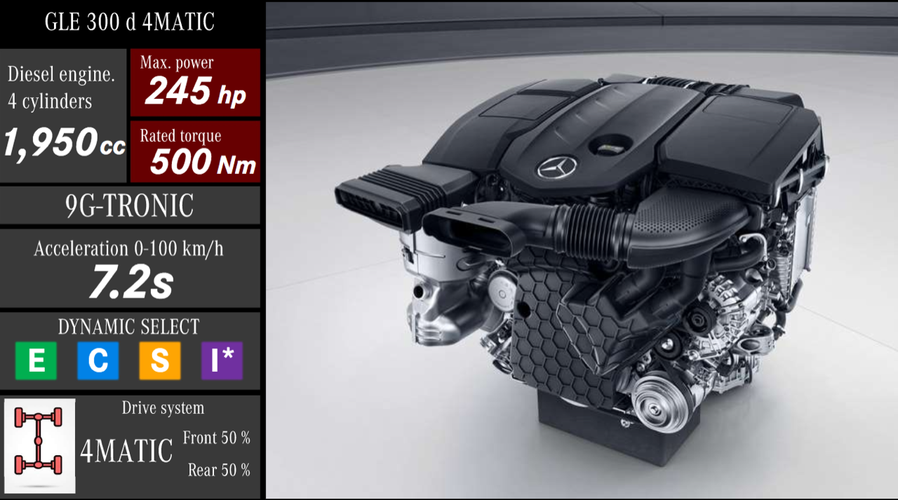 เครื่องยนต์ใหม่รหัส OM656 แบบดับเบิลโอเวอร์เฮดแคมชาร์ป 4 วาล์วต่อสูบ มีปริมาตรความจุ 2,925 ซีซี ความกว้างกระบอกสูบ 82.0 มิลลิเมตร ช่วงชัก 92.4 มิลลิเมตร อัตราส่วนกำลังอัด 15.5:1 จ่ายเชื้อเพลิงด้วยระบบ Common rail Direct injection ให้กำลังสูงสุด 210 กิโลวัตต์ หรือ 286 แรงม้า แรงบิดสูงสุดมากถึง 600 นิวตัน-เมตร เครื่องยนต์ดีเซลตัวใหม่ใช้เชื้อเพลิงน้อยลง 6% มีคุณสมบัติพิเศษของเครื่องยนต์ระดับสูงในตระกูลดีเซลตราดาว เช่น กระบวนการเผาไหม้ที่สมบูรณ์แบบ เทอร์โบชาร์จเจอร์แบบ two-stage turbocharging ควบคุมระบบวาล์วแปรผันด้วย CAMTRONIC การออกแบบประกอบด้วยการรวมกันของบล็อกเครื่องยนต์อะลูมิเนียมและลูกสูบเหล็ก รวมทั้งการเคลือบสารหล่อลื่น NANOSLIDE® ที่ผนังกระบอกสูบ ระบบส่งกำลังใช้เกียร์อัตโนมัติ 9G-Tronic automatic transmission พร้อมระบบเปลี่ยนเกียร์ที่พวงมาลัย (Steering-wheel Gearshift Paddles) ช่วงล่างแบบปรับความสูง-ต่ำ Adaptive airmatic suspension พร้อมระบบควบคุมระดับความสูง-ต่ำอัตโนมัติ ทำงานกับระบบกันสะเทือนแบบถุงลม ควบคุมการทรงตัวได้ในทุกสภาวะ ทำงานด้วยความรวดเร็วและแม่นยำ ระบบกันสะเทือนแบบถุงลมยังสามารถปรับให้เหมาะกับการขับขี่และโหมดของการขับเคลื่อนที่ถูกเลือกโดยคนขับ ความแข็งแกร่งของช่วงล่างถุงลมถูกปรับใหม่เพื่อเพิ่มความนุ่มนวลและเพิ่มการยึดเกาะถนนเมื่อขับด้วยความเร็วสูง ในโหมด Comfort และ Sport โดยความสูงจะเพิ่มแบบอัตโนมัติเมื่อเลือกใช้โหมด off road ระบบกันสะเทือนควบคุมด้วยไฟฟ้าจะถูกปรับใช้งานให้สอดคล้องในแต่ละโหมดและสภาพถนน โดยสามารถปรับยกตัวรถได้สูงถึง 30 มิลลิเมตร เมื่อขับขี่บนถนนที่ขรุขระหรือมีหลุมบ่อ ระบบจะปรับตัวรถลง 20 มิลลิเมตร โดยอัตโนมัติเมื่อขับด้วยความเร็วสูง เพื่อลดอาการโคลงตัวและเพิ่มการยึดเกาะจากค่า CG ที่ลดลง