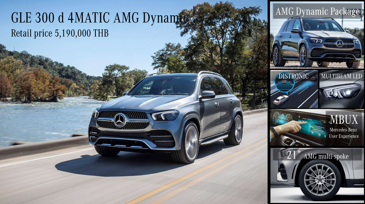 กระโดดขึ้นไปเล่นรถเบอร์ใหญ่ และมีไซส์เทียบเคียงกับ BMW X5 นั่นก็คือ Mercedes-Benz GLE300d 4Matic AMG Dynamic แม้ว่าดูแล้วจะเป็นเอสยูวีที่มีหน้าตาแปลกๆ แต่ปฏิเสธไม่ได้ว่ามันพกพาความหรูหรามาเต็มพิกัด ผสมกับรูปทรงที่ได้รับการออกแบบตามแบบฉบับของรถออฟโรด 5 ที่นั่งไซส์ค่อนข้างใหญ่ เครื่องยนต์เทอร์โบดีเซลแถวเรียง 2.0 ลิตร ในรุ่น GLE220d AMG Dynamic ซึ่งเป็นเครื่องรุ่นเด็กเล็กในตระกูล GLE มันมาพร้อมชุดแต่ง AMG ล้อขอบ 21 นิ้วกับยางราคาแพง ระบบมัลติมีเดียแบบล่าสุด MBUX ระบบช่วยขับและระบบความปลอดภัยเยอะแยะบรรยายไม่ไหว ที่เจ๋งก็คือ ออปชันราคาแพง Multibeam LED ระบบไฟอัตโนมัติที่ดีงามในยามค่ำคืนอันปราศจากแสงไฟบนถนน ทำงานด้วยระบบอัตโนมัติราวกับนักมายากล เพิ่มมุมมองในที่มืดมิดได้ดีโดยเฉพาะการส่องไหล่ทาง กำลังในการส่องสว่างมากกว่า 600 เมตร เครื่องยนต์ดีเซลแถวเรียง 4 สูบ ความจุ 2.0 ลิตร อัดอากาศด้วยเทอร์โบ กำลังสูงสุด 245 แรงม้า แรงบิดถูกปรับให้มากตามขนาดและน้ำหนักของรถที่ 500 นิวตันเมตร นับเป็นเครื่องยนต์ดีเซล 2 ลิตร ที่แบรนด์ตราดาวใช้ความพยายามจูนอย่างแสนสาหัสจนมีแรงบิดตามที่ต้องการ อัตราเร่งของเจ้ายักษ์หนัก 2.1 ตันคันนี้ ทำ 0-100 ได้ใน 7.2 วินาที ถือว่าเร็วเอาเรื่อง ระบบส่งกำลังใช้เกียร์อัตโนมัติ 9-G Tronic พ่วงระบบขับเคลื่อน 4 ล้อ 4 Matic เฉลี่ยแรงบิดหน้า-หลัง เท่ากันที่ 50-50 หรือผกผันเฉลี่ยแรงบิดลงไปในล้อทั้ง 4 ตามสภาพการณ์ของเส้นทางและผิวถนน Mercedes-Benz GLE220d AMG Dynamic มีราคา 5,190,000 บาท