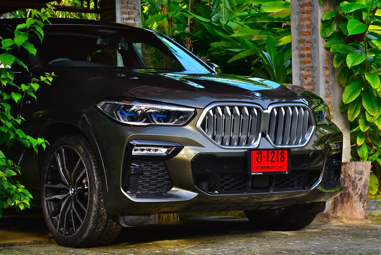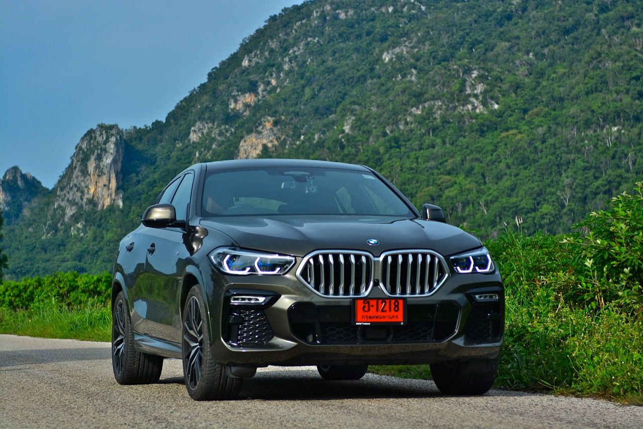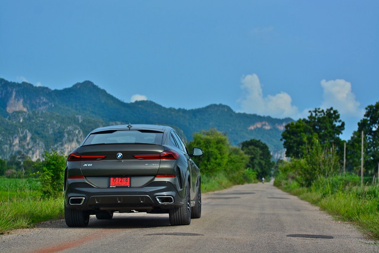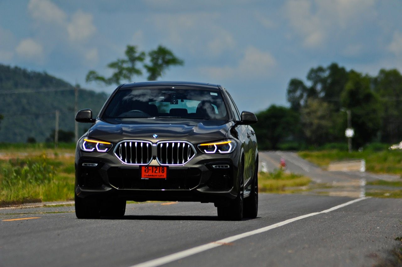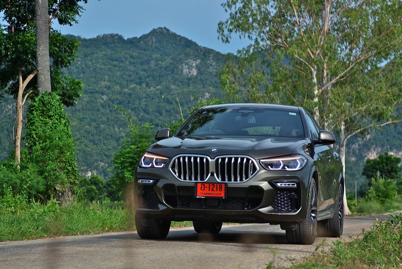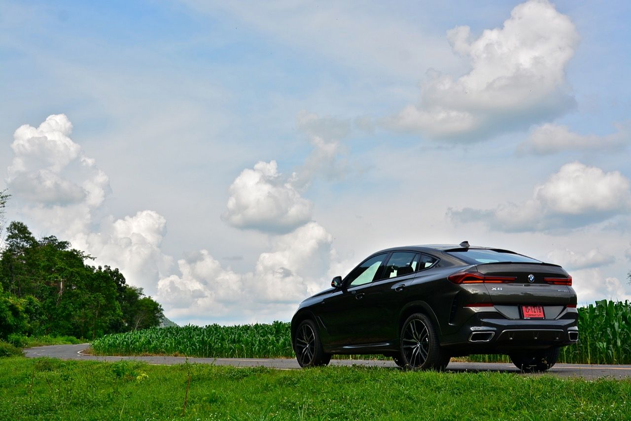 ชุดแต่ง M Sport ทำให้ X6 ที่ใหญ่ขึ้นในทุกมิติยกเว้นความสูง หน้าตาที่ดูดุดันเกินความเป็นรถ SAV ออกแบบคล้ายกับเครื่องจักรขนาดใหญ่ที่พร้อมจะกระโจนไปข้างหน้า กระจังหน้าที่มีไฟอยู่ข้างในทำให้มันคล้ายหุ่น transformers และทำให้รถที่วิ่งอยู่ข้างหน้าในช่องทางด้านขวาหลบเข้าซ้ายกันอย่างจ้าละหวั่น ล้อ 22 นิ้วใหญ่โตสมกับขนาดความกว้างของซุ้มล้อ บั้นท้ายมีชิ้นส่วนของระบบ Aero Dynamic อยู่เต็มไปหมดแต่ไม่ยักกะรกรุงรัง คุณสามารถมองเห็นช่องระบายอากาศที่แก้มข้าง ซึ่งทำหน้าที่ให้อากาศไหลผ่าน (อย่างราบรื่น) ราวกับซุปเปอร์คาร์ กระจังหน้าที่ปิดได้เอง ทำหน้าที่ลดแรงต้านของอากาศให้เหลือน้อยที่สุด เช่นเดียวกับห้องโดยสารที่อุดมไปด้วยของเล่นไฮเทค เครื่องยนต์ดีเซล 3.0 ลิตร ตัวเดียวกับ X5 30d มีแรงบิดเหลือเฟือสำหรับการใช้งาน ทั้งขับปกติและขับเร็วจี๋ การที่มันเป็นรถนำเข้า ทำให้ค่าตัวเมื่อบวกกับอัตราภาษีที่ร้อนแรงทะยานไปถึง 7,299,000 บาท น้ำหนัก 2.2 ตัน ส่งผลให้มันมีความอวบเกือบจะเท่ากับ Mercedes-G Wagon แชสซีอะลูมิเนียม กับกันโคลง Active Roll Stabilization พิสูจน์แล้วว่าเกาะถนนเป็นเยี่ยม ซึ่งเดี๋ยวได้รู้กันตอนขับทางไกล