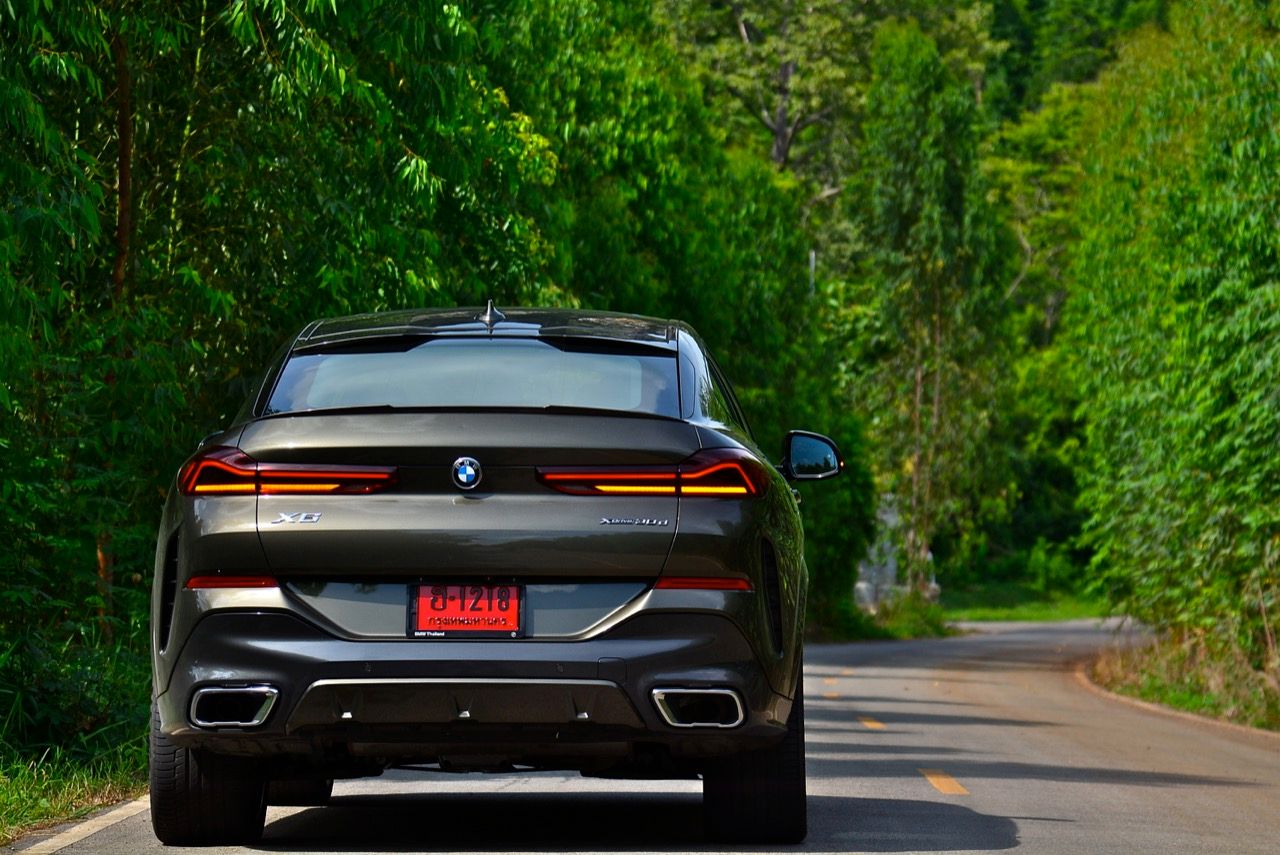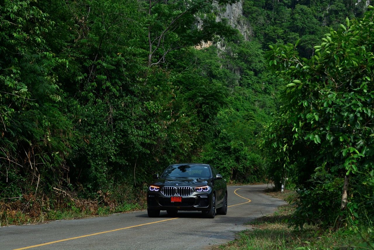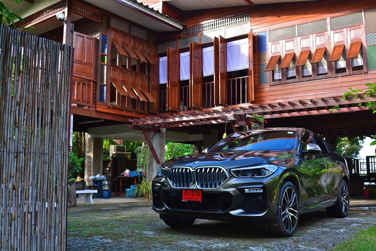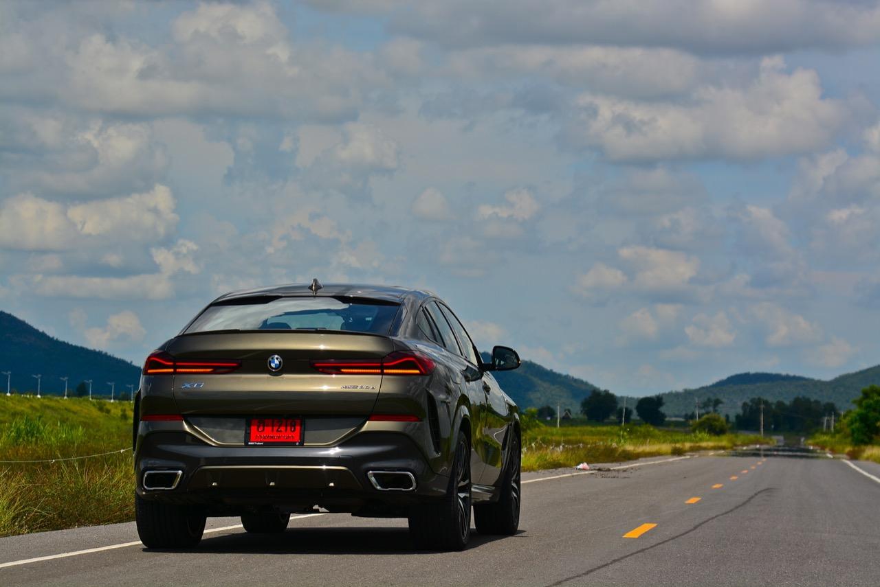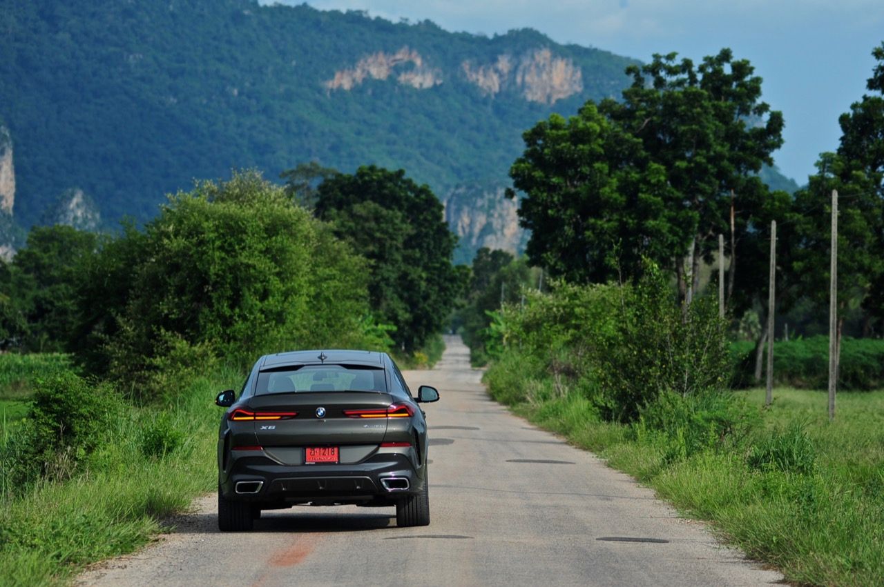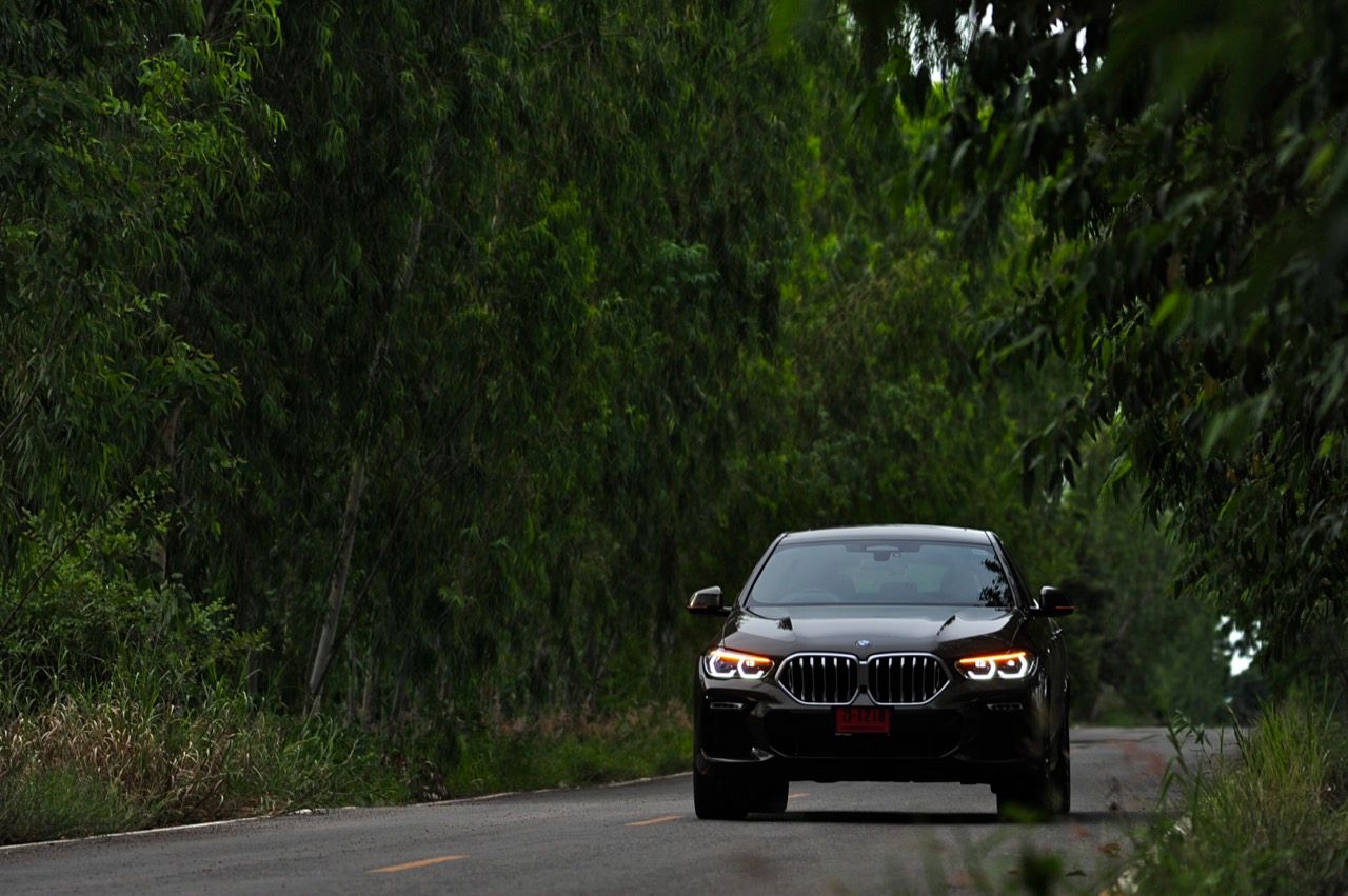 ชุดแต่ง M Sport ทำให้ X6 ที่ใหญ่ขึ้นในทุกมิติยกเว้นความสูง หน้าตาที่ดูดุดันเกินความเป็นรถ SAV ออกแบบคล้ายกับเครื่องจักรขนาดใหญ่ที่พร้อมจะกระโจนไปข้างหน้า กระจังหน้าที่มีไฟอยู่ข้างในทำให้มันคล้ายหุ่น transformers และทำให้รถที่วิ่งอยู่ข้างหน้าในช่องทางด้านขวาหลบเข้าซ้ายกันอย่างจ้าละหวั่น ล้อ 22 นิ้วใหญ่โตสมกับขนาดความกว้างของซุ้มล้อ บั้นท้ายมีชิ้นส่วนของระบบ Aero Dynamic อยู่เต็มไปหมดแต่ไม่ยักกะรกรุงรัง คุณสามารถมองเห็นช่องระบายอากาศที่แก้มข้าง ซึ่งทำหน้าที่ให้อากาศไหลผ่าน (อย่างราบรื่น) ราวกับซุปเปอร์คาร์ กระจังหน้าที่ปิดได้เอง ทำหน้าที่ลดแรงต้านของอากาศให้เหลือน้อยที่สุด เช่นเดียวกับห้องโดยสารที่อุดมไปด้วยของเล่นไฮเทค เครื่องยนต์ดีเซล 3.0 ลิตร ตัวเดียวกับ X5 30d มีแรงบิดเหลือเฟือสำหรับการใช้งาน ทั้งขับปกติและขับเร็วจี๋ การที่มันเป็นรถนำเข้า ทำให้ค่าตัวเมื่อบวกกับอัตราภาษีที่ร้อนแรงทะยานไปถึง 7,299,000 บาท น้ำหนัก 2.2 ตัน ส่งผลให้มันมีความอวบเกือบจะเท่ากับ Mercedes-G Wagon แชสซีอะลูมิเนียม กับกันโคลง Active Roll Stabilization พิสูจน์แล้วว่าเกาะถนนเป็นเยี่ยม ซึ่งเดี๋ยวได้รู้กันตอนขับทางไกล