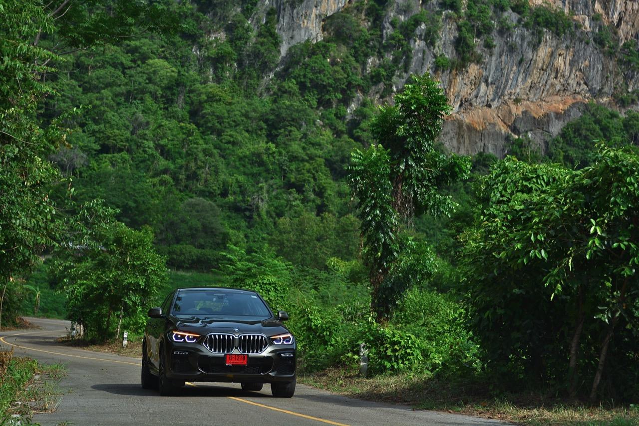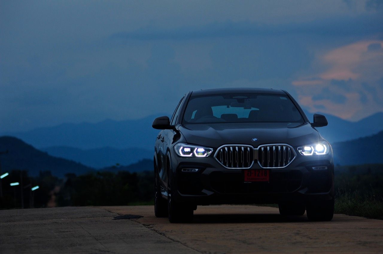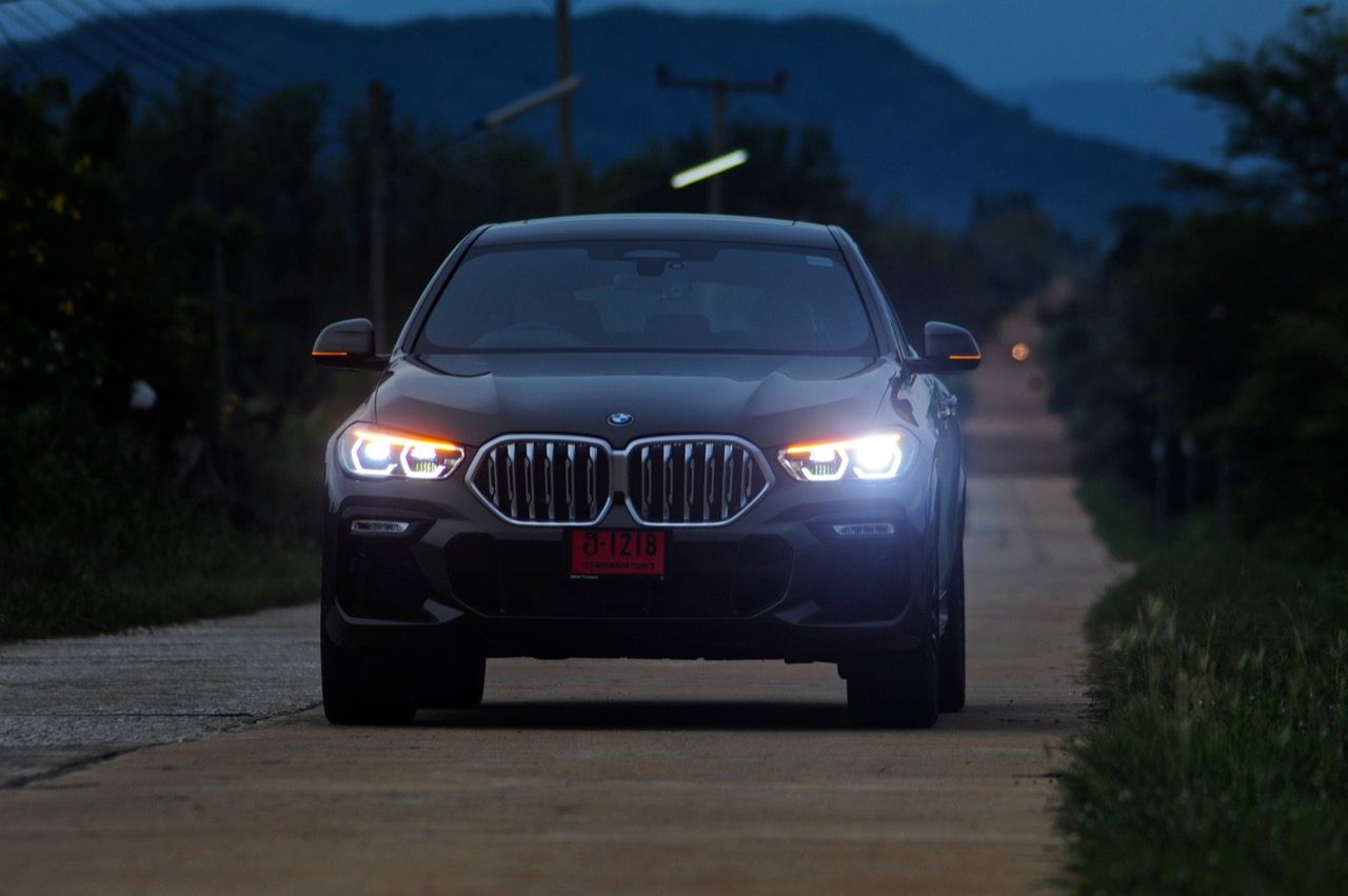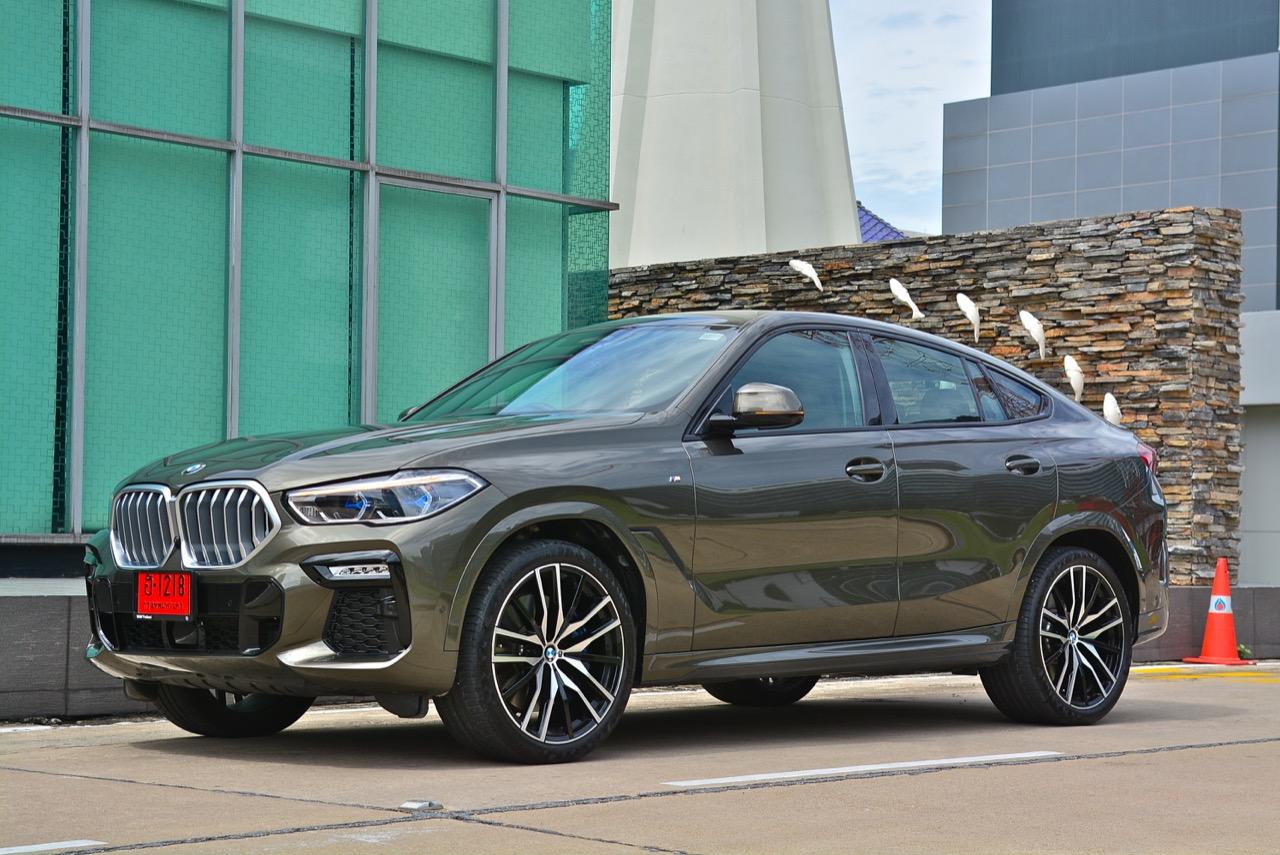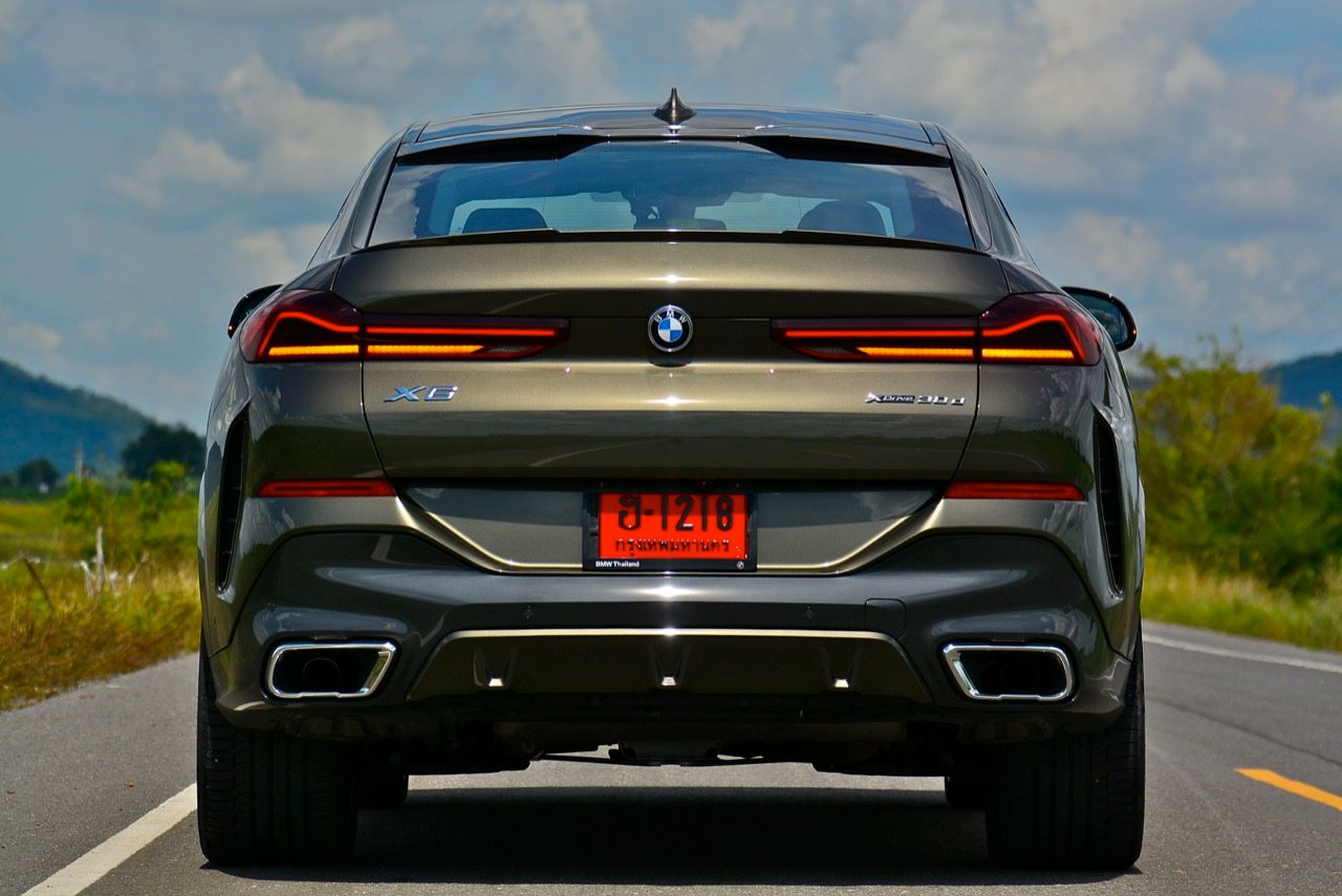 ชุดแต่ง M Sport ทำให้ X6 ที่ใหญ่ขึ้นในทุกมิติยกเว้นความสูง หน้าตาที่ดูดุดันเกินความเป็นรถ SAV ออกแบบคล้ายกับเครื่องจักรขนาดใหญ่ที่พร้อมจะกระโจนไปข้างหน้า กระจังหน้าที่มีไฟอยู่ข้างในทำให้มันคล้ายหุ่น transformers และทำให้รถที่วิ่งอยู่ข้างหน้าในช่องทางด้านขวาหลบเข้าซ้ายกันอย่างจ้าละหวั่น ล้อ 22 นิ้วใหญ่โตสมกับขนาดความกว้างของซุ้มล้อ บั้นท้ายมีชิ้นส่วนของระบบ Aero Dynamic อยู่เต็มไปหมดแต่ไม่ยักกะรกรุงรัง คุณสามารถมองเห็นช่องระบายอากาศที่แก้มข้าง ซึ่งทำหน้าที่ให้อากาศไหลผ่าน (อย่างราบรื่น) ราวกับซุปเปอร์คาร์ กระจังหน้าที่ปิดได้เอง ทำหน้าที่ลดแรงต้านของอากาศให้เหลือน้อยที่สุด เช่นเดียวกับห้องโดยสารที่อุดมไปด้วยของเล่นไฮเทค เครื่องยนต์ดีเซล 3.0 ลิตร ตัวเดียวกับ X5 30d มีแรงบิดเหลือเฟือสำหรับการใช้งาน ทั้งขับปกติและขับเร็วจี๋ การที่มันเป็นรถนำเข้า ทำให้ค่าตัวเมื่อบวกกับอัตราภาษีที่ร้อนแรงทะยานไปถึง 7,299,000 บาท น้ำหนัก 2.2 ตัน ส่งผลให้มันมีความอวบเกือบจะเท่ากับ Mercedes-G Wagon แชสซีอะลูมิเนียม กับกันโคลง Active Roll Stabilization พิสูจน์แล้วว่าเกาะถนนเป็นเยี่ยม ซึ่งเดี๋ยวได้รู้กันตอนขับทางไกล