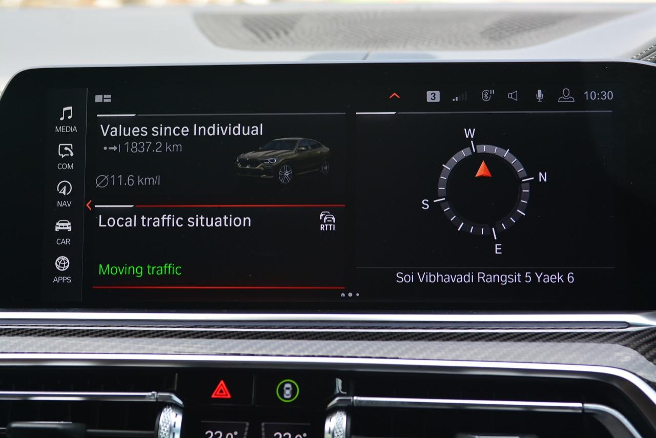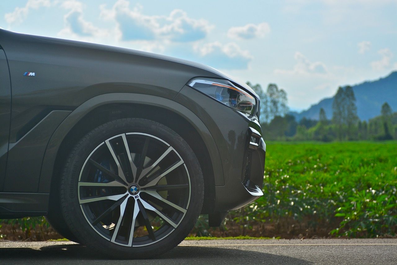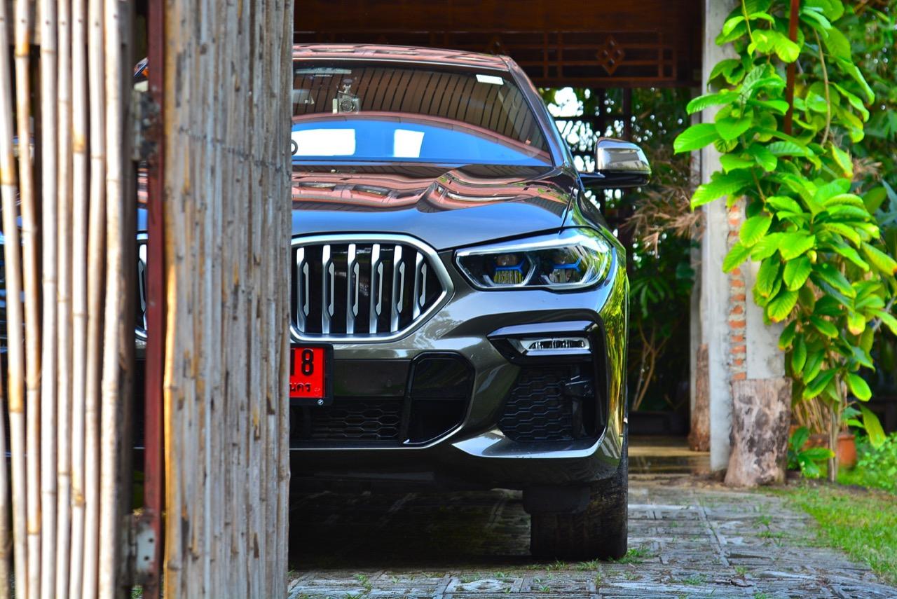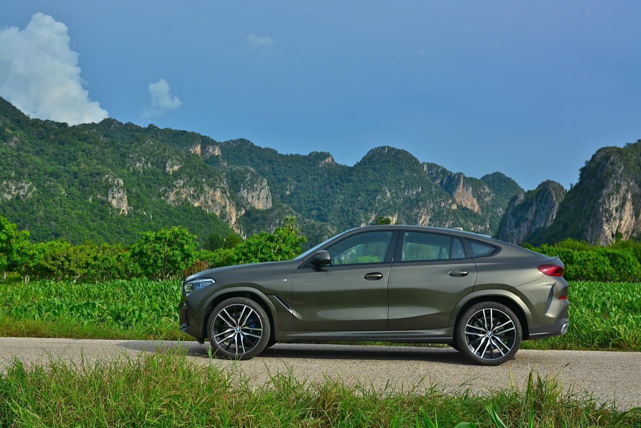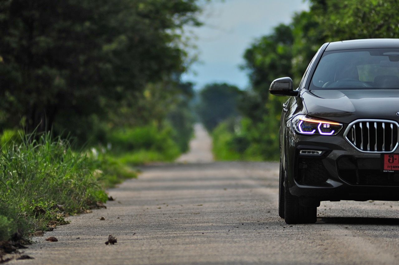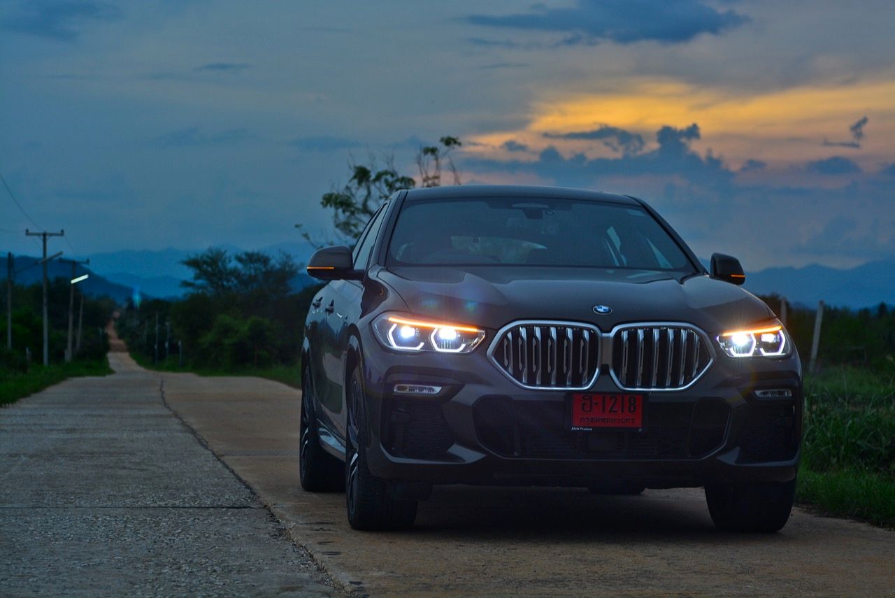 ชุดแต่ง M Sport ทำให้ X6 ที่ใหญ่ขึ้นในทุกมิติยกเว้นความสูง หน้าตาที่ดูดุดันเกินความเป็นรถ SAV ออกแบบคล้ายกับเครื่องจักรขนาดใหญ่ที่พร้อมจะกระโจนไปข้างหน้า กระจังหน้าที่มีไฟอยู่ข้างในทำให้มันคล้ายหุ่น transformers และทำให้รถที่วิ่งอยู่ข้างหน้าในช่องทางด้านขวาหลบเข้าซ้ายกันอย่างจ้าละหวั่น ล้อ 22 นิ้วใหญ่โตสมกับขนาดความกว้างของซุ้มล้อ บั้นท้ายมีชิ้นส่วนของระบบ Aero Dynamic อยู่เต็มไปหมดแต่ไม่ยักกะรกรุงรัง คุณสามารถมองเห็นช่องระบายอากาศที่แก้มข้าง ซึ่งทำหน้าที่ให้อากาศไหลผ่าน (อย่างราบรื่น) ราวกับซุปเปอร์คาร์ กระจังหน้าที่ปิดได้เอง ทำหน้าที่ลดแรงต้านของอากาศให้เหลือน้อยที่สุด เช่นเดียวกับห้องโดยสารที่อุดมไปด้วยของเล่นไฮเทค เครื่องยนต์ดีเซล 3.0 ลิตร ตัวเดียวกับ X5 30d มีแรงบิดเหลือเฟือสำหรับการใช้งาน ทั้งขับปกติและขับเร็วจี๋ การที่มันเป็นรถนำเข้า ทำให้ค่าตัวเมื่อบวกกับอัตราภาษีที่ร้อนแรงทะยานไปถึง 7,299,000 บาท น้ำหนัก 2.2 ตัน ส่งผลให้มันมีความอวบเกือบจะเท่ากับ Mercedes-G Wagon แชสซีอะลูมิเนียม กับกันโคลง Active Roll Stabilization พิสูจน์แล้วว่าเกาะถนนเป็นเยี่ยม ซึ่งเดี๋ยวได้รู้กันตอนขับทางไกล