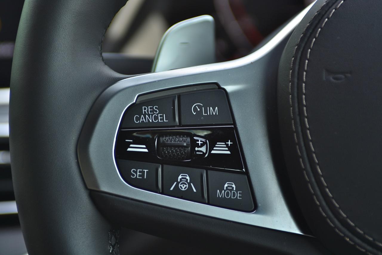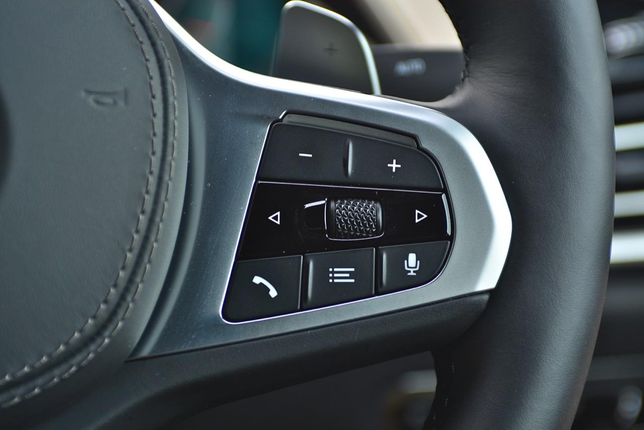 จุดที่คุณจะต้องจับไปตลอดการขับก็คือ พวงมาลัย M แบบสปอร์ต 3 ก้าน หุ้มหนังแท้ เป็นชุดพวงมาลัยในรถ BMW ที่ตกแต่งด้วยอุปกรณ์ M Sport ไม่ว่าจะเป็น Series-3 M Sport / Z4 M40i / Series-5 / Series-7 / Series-8 รวมถึงรถยนต์อเนกประสงค์ในตระกูล X ทั้งหมดที่ตกแต่งด้วยชุดแต่ง M Sport ก็จะใช้พวงมาลัย M แบบเดียวกันทั้งหมด รูปทรงของพวงมาลัยแบบใหม่ มีขนาดที่เท่ากับพวงมาลัย M รุ่นที่แล้ว แต่ออกแบบให้ก้านวงมีขนาดใหญ่ขึ้น จุดที่ใช้งานได้ดีกว่าเดิมก็คือแป้นเปลี่ยนตำแหน่งเกียร์ Paddle Shift ที่มีขนาดใหญ่ขึ้นเมื่อเทียบกับของเดิม ส่วนสวิตช์บริเวณก้านวงด้านขวาเป็นตำแหน่งของปุ่มรับหรือวางสายโทรศัพท์บลูทูธ ปุ่มสั่งงานด้วยเสียง ปุ่มปรับระดับความดังของลำโพงและปุ่มเลือกฟังก์ชั่นการเล่นเพลงผ่านอุปกรณ์ต่างๆ ก้านวงด้านซ้าย เป็นปุ่มควบคุมระบบปรับตั้งความเร็วอัตโนมัติ Adaptive Cruise Control