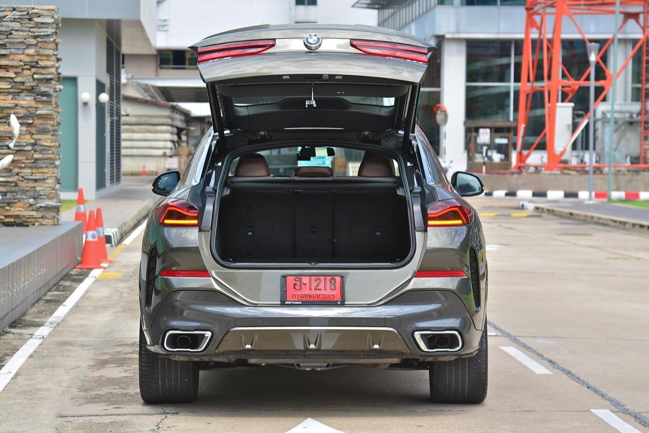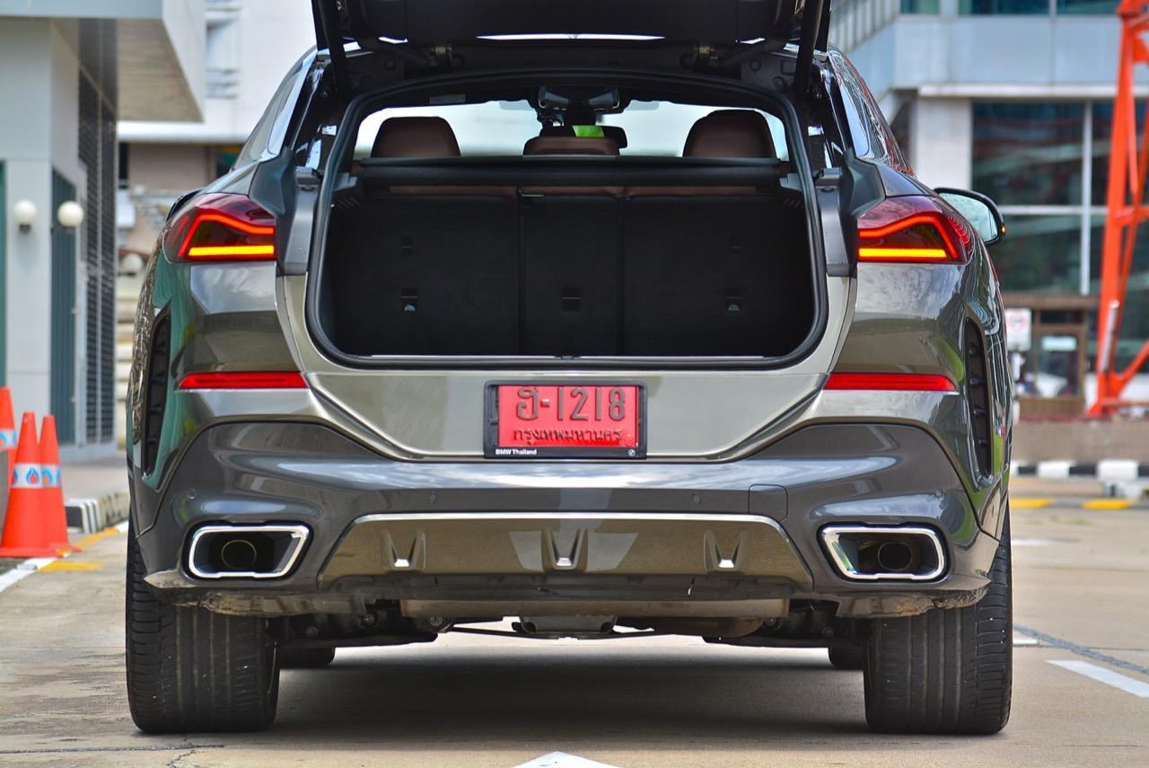 ถ้ารู้สึกว่า การมีแค่ 5 ที่นั่งนั้นน้อยเกินไป ก็ให้ขยับไปที่ยักษ์ใหญ่อย่าง X7 แต่ความคล่องตัวในเมืองก็จะลดลง ผมขับ X6 มาทั้งวัน และมันก็เป็นรถที่เหมาะกับการเดินทาง 4 คน พร้อมสัมภาระ เป็นยานพาหนะที่ทำให้คนขับรู้สึกสนุกและผู้โดยสารก็สบายตัวมากกว่ารุ่นที่แล้ว ฐานล้อที่ขยับเพิ่มเล็กน้อย ตัวรถยาวขึ้นนิดหน่อย และเตี้ยลงอีกพอสมควร พื้นที่เก็บสัมภาระท้ายก็พอเพียง เมื่อพับเบาะหลังก็จะเพิ่มขึ้นอีกเยอะ เบาะหลังนั่งแล้วสบายใช้ได้ แม้หลังคาจะเทลาดลงมา ก็ไม่ทำให้รู้สึกอึดอัดหรือคับแคบ แทนที่จะสูงเหมือนรถรุ่นก่อน X6ใหม่ มีฐานล้อที่ยาวขึ้น ทำให้บาลานซ์ของรถเกือบจะสูสีกับ Audi Q8 พนักพิงศีรษะสอดรับกับท่านั่งและปรับให้เข้ากับต้นคอของแต่ละคนที่ไม่เหมือนกัน ทำให้นั่งเบาะหลังแล้วไม่เมื่อยต้นคอ