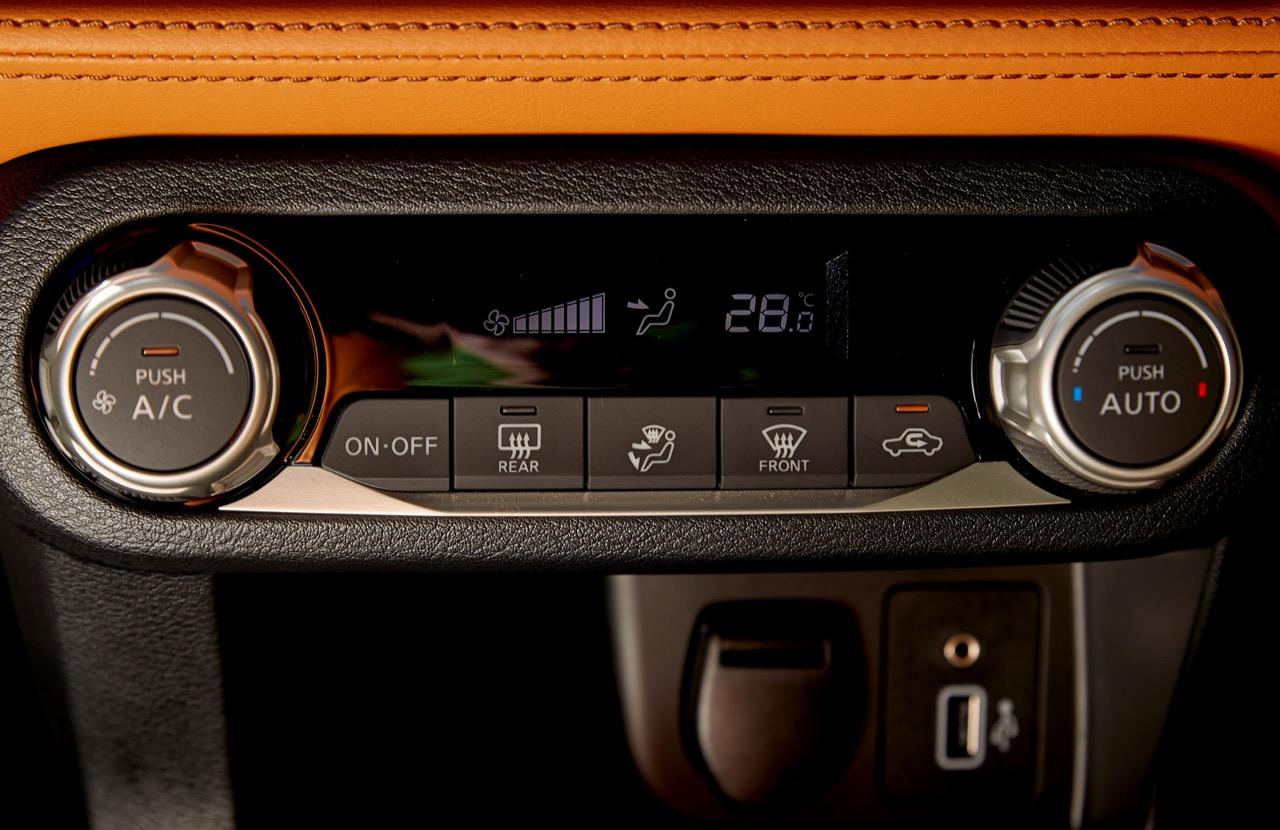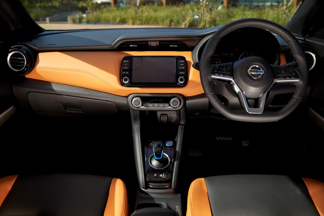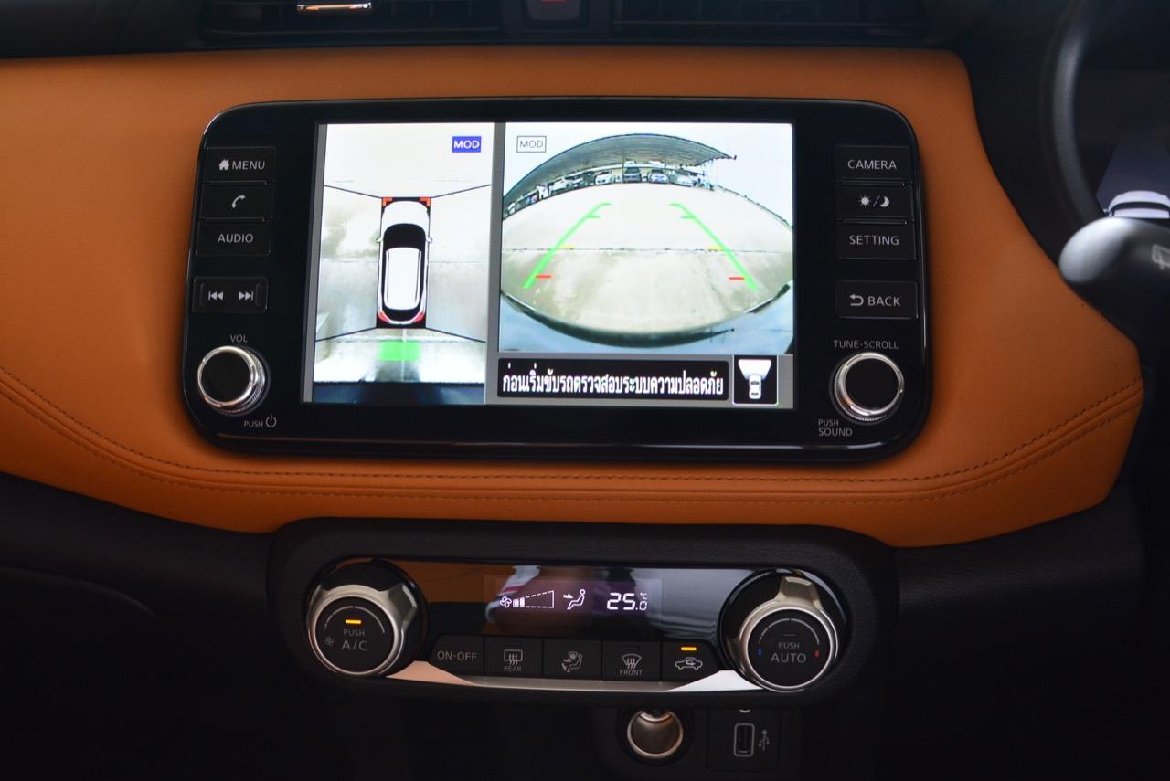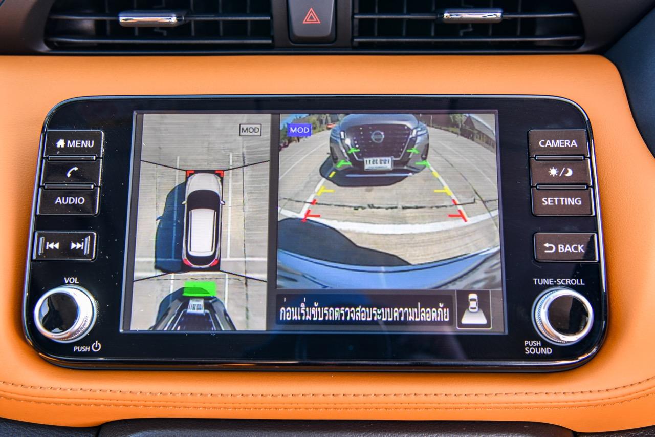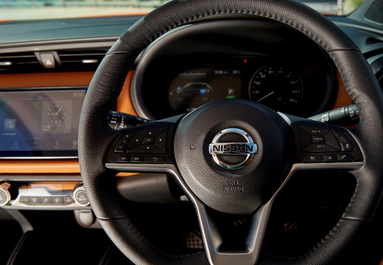 พวงมาลัยสามก้าน หุ้มหนังตกแต่งด้วยสีเงินสไตล์สปอร์ตปรับระดับได้ ก้านวงติดตั้งสวิตช์ควบคุมระบบเครื่องเสียง และระบบโทรศัพท์ กับสวิตช์ควบคุมหน้าจอมาตรวัดแสดงผลข้อมูลการขับขี่แบบ TFT เป็นมาตรวัดแบบเรืองแสง Fine Vision Meter แบบ Digital ผ่านจอ TFT ขนาด 7 นิ้ว ส่วนจอมอนิเตอร์กลางขนาด 8 นิ้ว รองรับระบบข้อมูลและความบันเทิง Nissan Connect หน้าจอสั่งงานด้วยระบบสัมผัส พร้อมช่องเชื่อมต่อ Bluetooth®, USB และ AUX IN สำหรับอุปกรณ์ต่อพ่วง ระบบเชื่อมต่อโทรศัพท์สมาร์ทโฟน Apple CarPlay® (สำหรับระบบปฏิบัติการ iOS) ระบบเชื่อมต่อโทรศัพท์ไร้สายแบบ Bluetooth