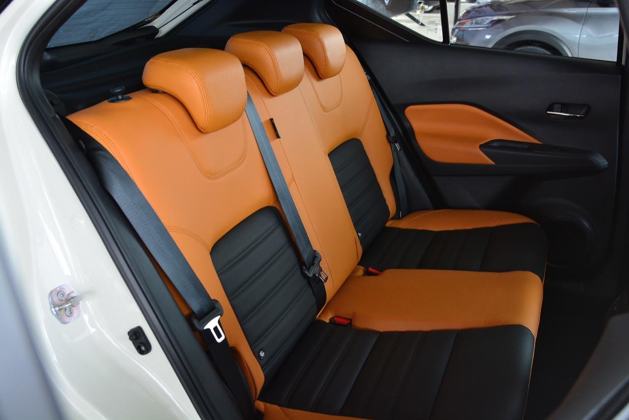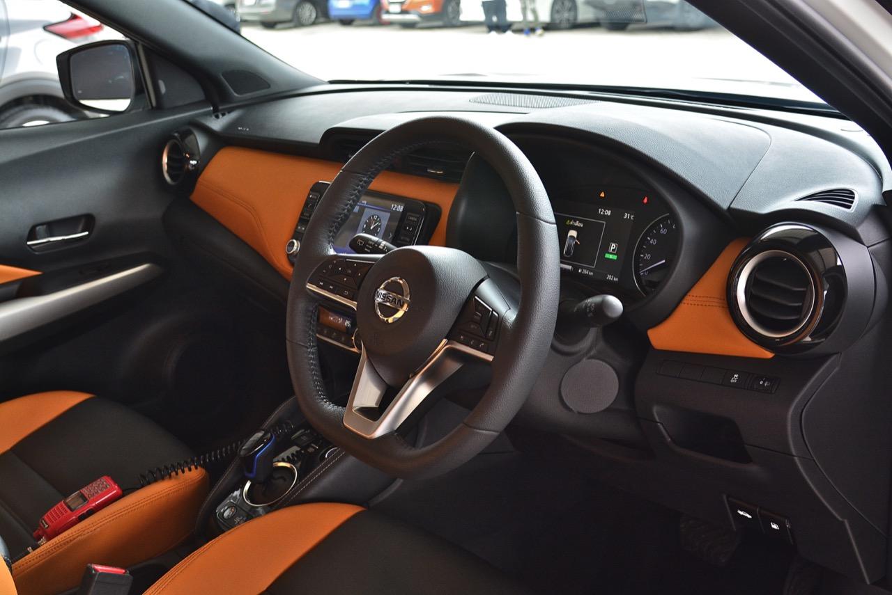 ห้องโดยสารเรียบง่ายน่าใช้งาน แดชบอร์ดและคอนโซลมีความคล้ายคลึงกับ Nissan Almera แต่มีวัสดุที่ดูดีกว่า การออกแบบพื้นที่ใช้สอยภายในของ Kicks เป็นไปในแนวทางของ Nissan ก็คือ เน้นความกว้างขวางนั่งสบายไม่อึดอัด แต่เบาะหลังนั้นตั้งชันไปนิด ถ้าไม่นับคุณภาพของวัสดุ ห้องโดยสารของ Kicks ก็มีอุปกรณ์ครบครัน และมีพื้นที่ภายในค่อนข้างโปร่งโล่ง โดยเฉพาะพื้นที่เบาะคู่หน้า เบาะแบบทูโทนหุ้มหนังสังเคราะห์ที่มีฟองน้ำภายในอย่างนุ่มทำให้นั่งขับไกลๆ ได้สบายตัว ส่วนพื้นที่วางเท้าและพื้นที่เหนือศีรษะก็มีให้อย่างพอเพียง นั่งแล้วไม่ค่อยอึดอัดเท่าไร เบาะหลังพับราบได้เพื่อเพิ่มพื้นที่เก็บสัมภาระ