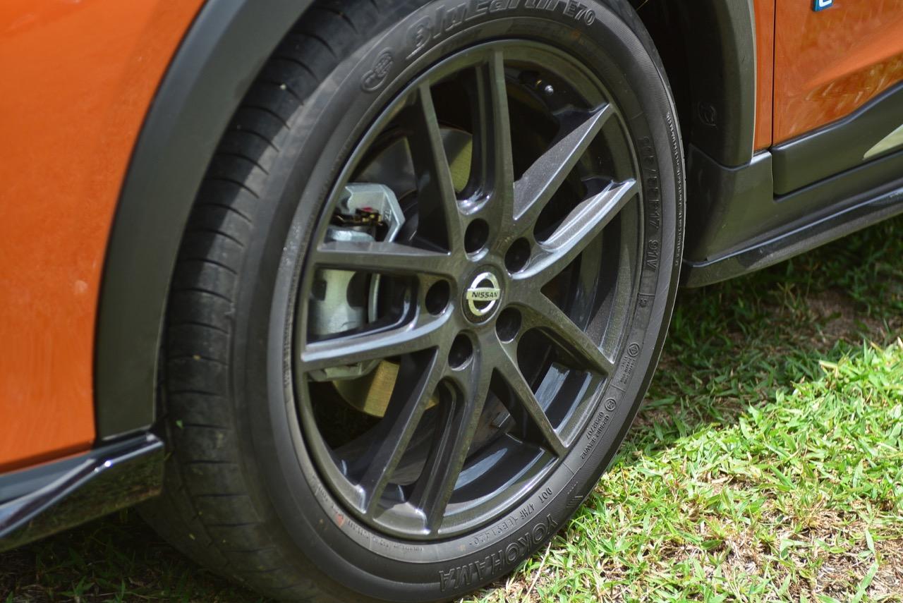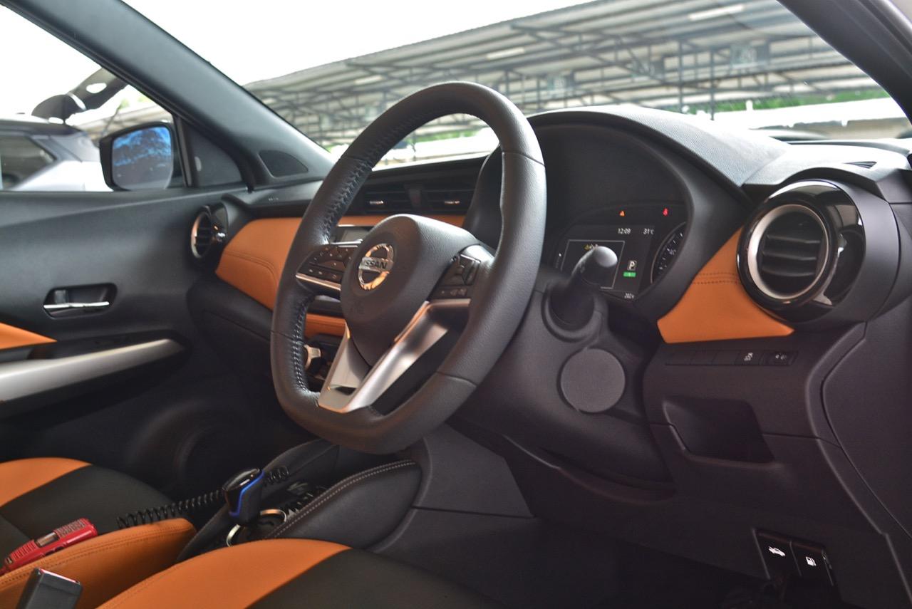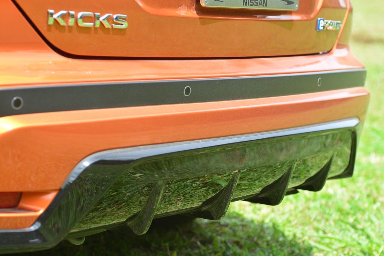 การเซตให้ช่วงล่างทำงานร่วมกับชุดบังคับเลี้ยวได้อย่างกลมกลืน ทำให้ Kicks เป็นรถกึ่งไฟฟ้าที่ควบคุมได้ง่าย ความง่ายของมันทำให้เกิดความสบายในการขับทั้งในและนอกเมือง แม้จะปล่อยมลพิษออกมาบ้าง แต่ไม่มากเท่ากับรถยนต์คู่แข่งที่ใช้เครื่องสันดาปภายในขนาดใหญ่กว่า โดยไม่มีทั้งแบตฯ และมอเตอร์ (ยกเว้น Toyota C-HR Hybrid) Kicks เป็นรถขับเคลื่อนล้อหน้าที่เซตช่วงล่างมาดี เส้นทางในอำเภอสวนผึ้งของจังหวัดราชบุรี เต็มไปด้วยทางโค้งขึ้น-ลงเนินเขาที่เหมาะกับการทดสอบการทรงตัว การถ่ายเทน้ำหนักขณะเข้าโค้งหรือเบรก พวงมาลัยไฟฟ้าอัตราทดแปรผันตามความเร็วมีความเที่ยงตรงแม่นยำใช้ได้ การถ่ายเทน้ำหนัก ทั้งเลี้ยว เร่งและเบรกเร็วๆ อยู่ในเกณฑ์ดี รวมไปถึงการทรงตัวในย่านความเร็วสูงก็ยังทำออกมาได้ดี ไม่ว่าคุณจะขับมันแบบไหน Kicks ก็ให้ความสนุกกับคุณทุกครั้งเมื่ออยู่หลังพวงมาลัย