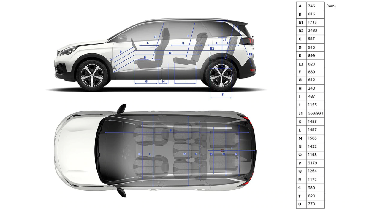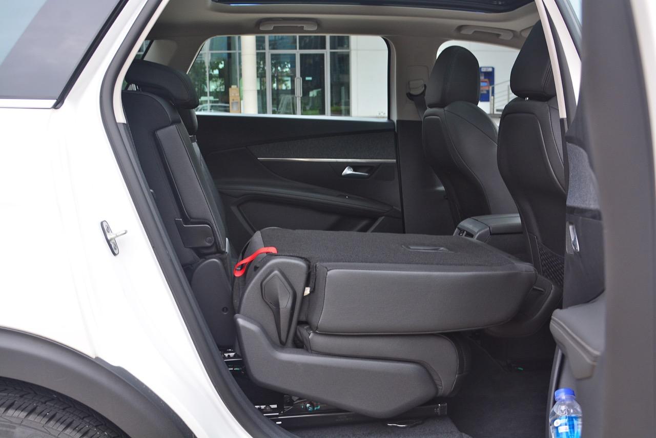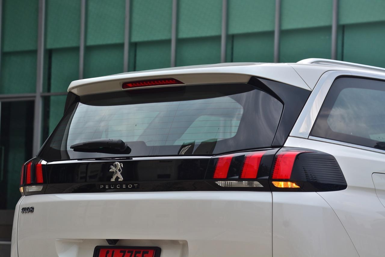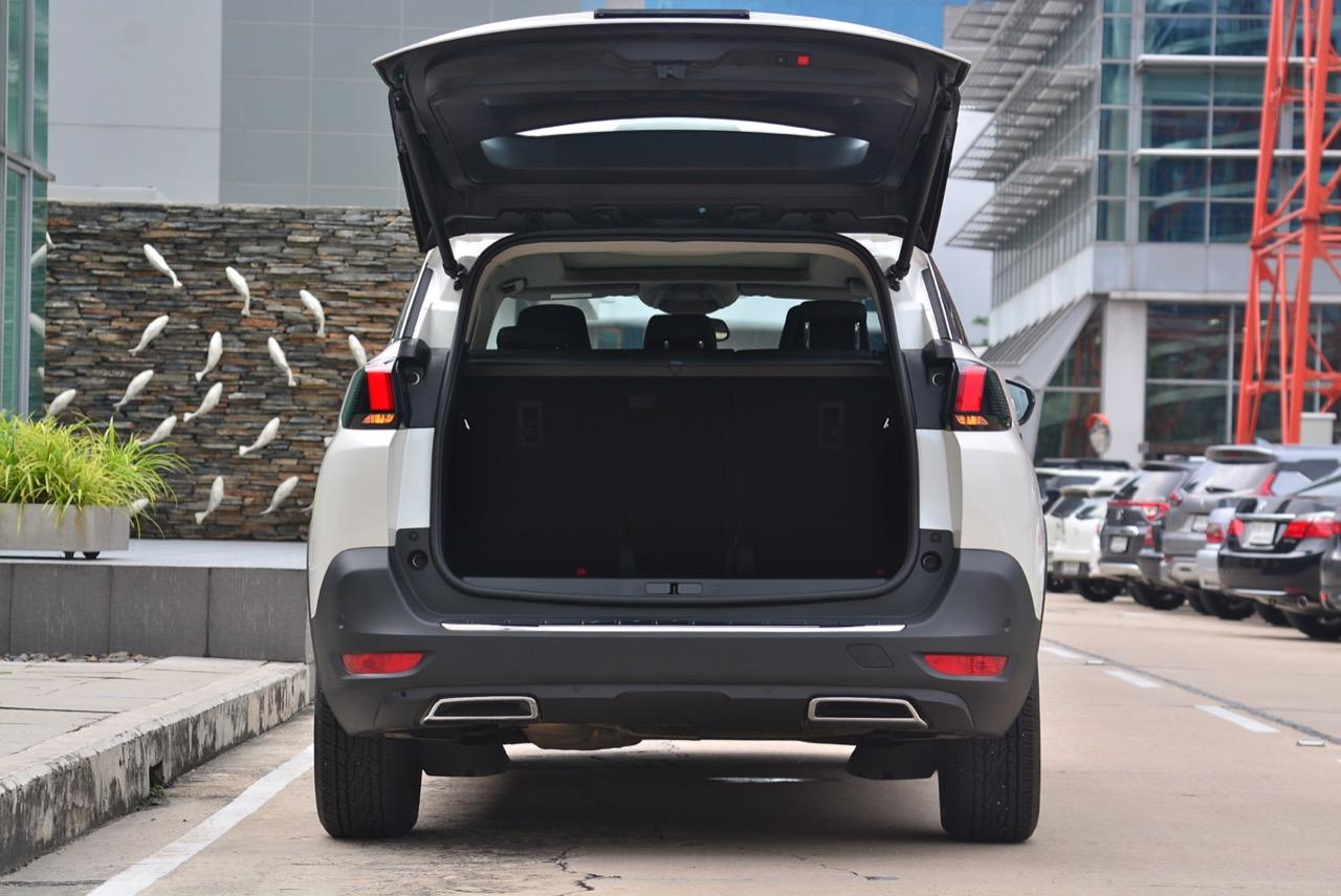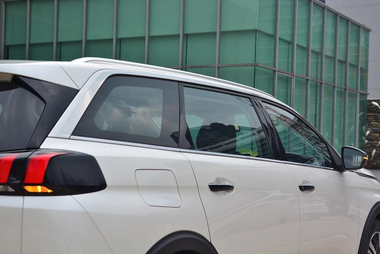 ทรงด้านข้างแสดงออกถึงความเป็นรถ MPV อย่างชัดเจน แต่ความสูงที่เพิ่มมากขึ้นทำให้ Peugeot เรียกรถรุ่นนี้ว่า SUV จุดที่ลงตัวบริเวนด้านข้างตัวรถก็คือ แก้มข้างที่ใช้เส้นโครเมียมลากจนถึงมุมของเสาหน้า กรอบกระจกมองข้างแบบโครเมียมที่คล้ายรถกระบะบางรุ่นในไทย ชายล่างของบานประตูทั้งสองติดตั้งชิ้นงานพลาสติกโครเมียมสีเงิน ซุ้มล้อพลาสติกสีดำลามไปจนถึงขอบของกันชนหลัง กรอบกระจกบานหน้าต่างสีดำที่ตัดกับตัวถังสีขาวมุก Pearl White แรคหลังคาสีเงิน องศาความลาดเอียงของเสาหน้าที่สมบูรณ์แบบเชื่อมโยงแนวหลังคาทั้งผืนที่มีกระจกซันรูฟมาให้ใช้งาน เสาท้ายสไตล์รถแวกอน พร้อมฝาท้ายไฟฟ้า ล้ออัลลอยขอบ 18 นิ้ว ห่อรัดด้วยยาง Continental Conti Cross Contact ไซส์ 255/55R18 V บั้นท้ายทรงเหลี่ยม ดีไซน์ไฟท้ายแปลกตาแบบ LED สามช่อง พร้อมพลาสติกสีดำเงา ตกแต่งคาดกลางเชื่อมโยงไฟท้ายทั้งสองข้าง ฝาท้ายไฟฟ้า เปิดออกได้ด้วยมุมที่กว้างมากกว่าปกติเพื่อการขนสัมภาระ กระจกหลังบานฝาท้ายมีขนาดค่อนข้างเล็ก มีที่ปัดน้ำฝนมาให้ใช้งาน พร้อมกับไฟเบรกดวงที่สามแบบ LED กันชนหลังพลาสติกสีดำด้าน มีชิ้นงานกันกระแทกแปะอยู่บริเวณขอบของกันชนหลัง ท่อระบายไอเสียแบบเหลี่ยม กับแผงพลาสติกมัลติรีเฟลกเตอร์สีแดง