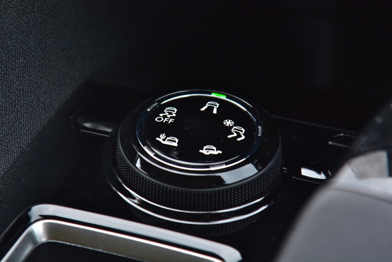 ปุ่มโหมดการขับเคลื่อน 5 รูปแบบ ทั้งแบบปกติ ขับบนผิวถนนที่ลื่นไถล ขับบนทางทราย หรือทางลูกรัง ขับบนทางวิบากแบบออฟโรด และตำแหน่งของการยกเลิกระบบควบคุมการทรงตัว