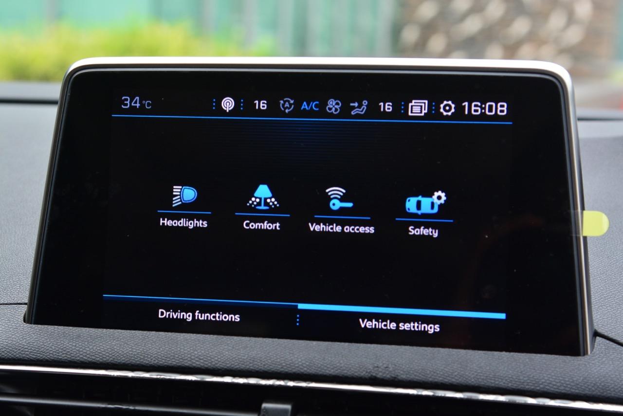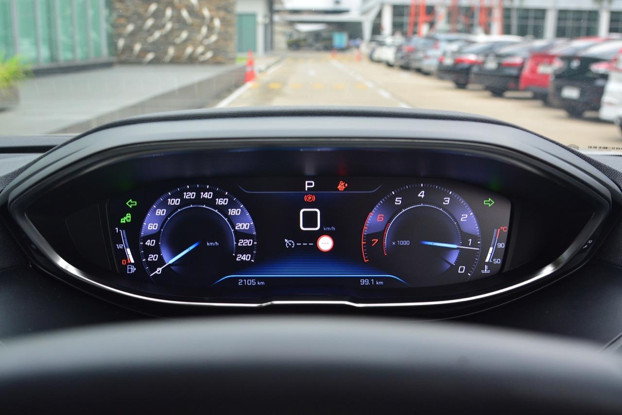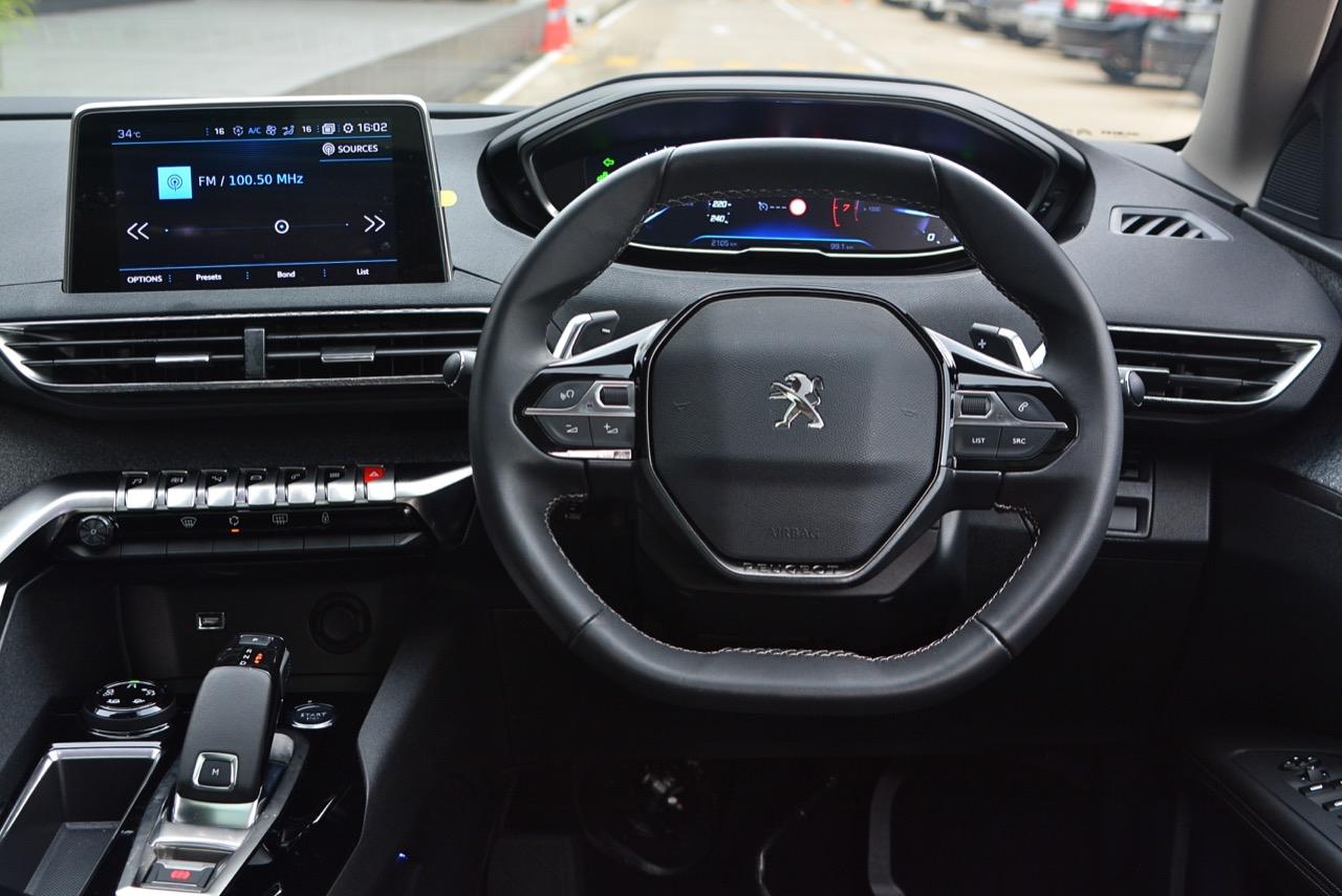 เข้าไปนั่งข้างใน คุณจะพบกับอุปกรณ์แนวๆ ที่มีหน้าตาแปลกประหลาดล้ำสมัย Peugeot i-Cockpit จัดหน้าจอภาพมาตรวัดขนาด 12.3 นิ้ว แทนไมล์แบบเดิมๆ ที่เริ่มจะโบราณ มอนิเตอร์กลางขนาด 8 นิ้วใช้นิ้วแตะเพื่อสั่งงาน หรือถนัดที่จะสั่งงานด้วยภาษาอังกฤษสำเนียงอเมริกันหรืออังกฤษก็ได้ทั้งนั้น (ไม่ยักกะมีระบบสั่งงานด้วยภาษาฝรั่งเศส) พวงมาลัยที่เล็กราวกับไปขโมยพวงมาลัยของรถแข่ง F1 ทุกอย่างถูกจัดวางมาเป็นอย่างดี ยกเว้นหน้าจอภาพมาตรวัด ที่พอปรับระดับพวงมาลัยยังไง มันก็ยังบังส่วนล่างอยู่ดี ตำแหน่งคนขับทำให้นึกถึงการขับรถตู้คันเล็ก เห็นได้อย่างชัดเจนว่าพวกฝรั่งเศสพยายามโน้มน้าวจิตใจของคุณด้วยการทำให้รู้สึกพิเศษเมื่ออยู่ใน 5008 แต่จะเรียกมันว่ารถหรูพรีเมียมก็คงจะเว่อร์ไปเพราะยังมีรถที่หรูกว่านี้อีกมาก
