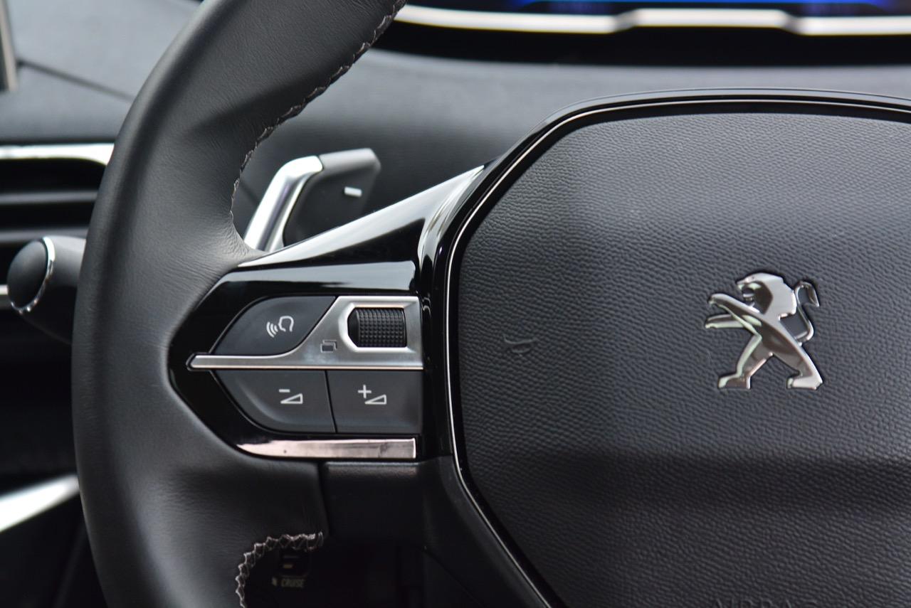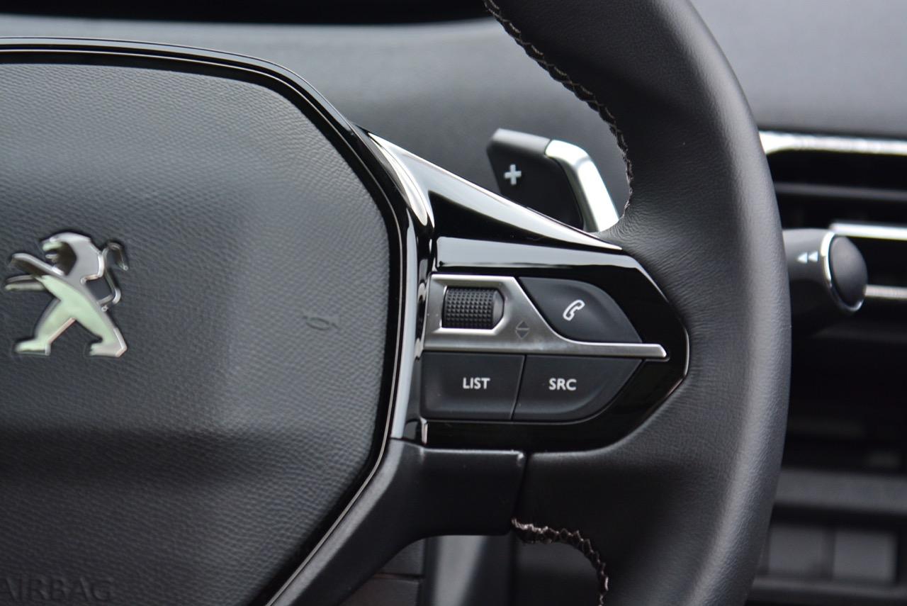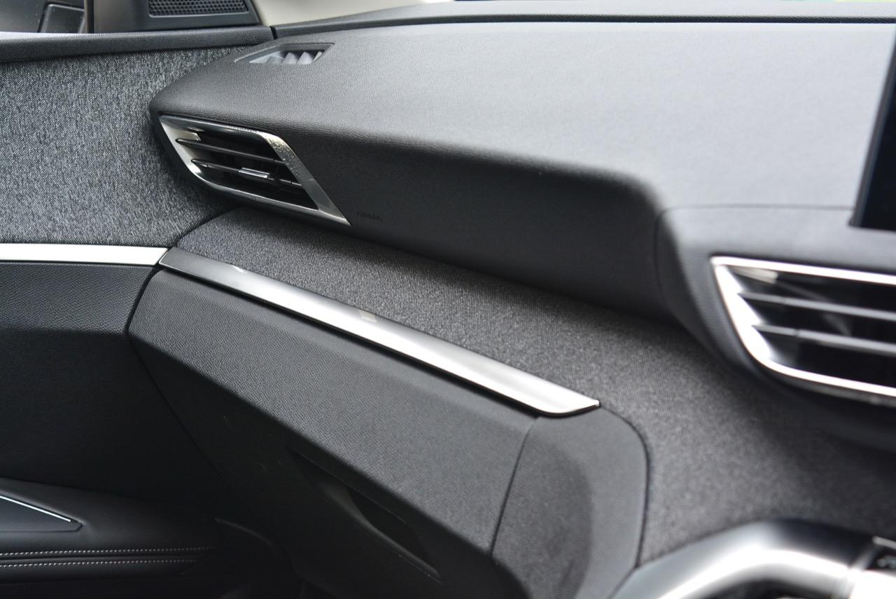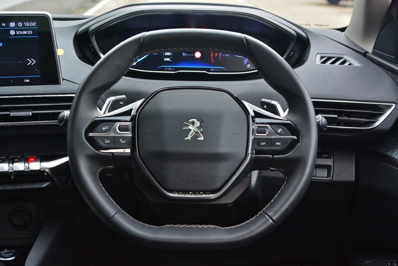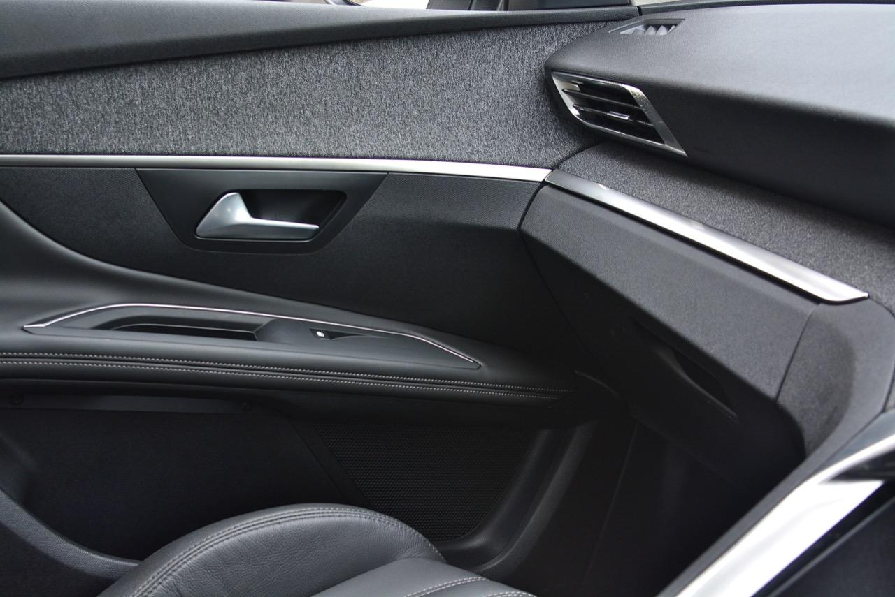 วัสดุที่มีคุณภาพถูกประดับประดาอยู่ทั่วทั้งห้องโดยสารของ Peugeot 5008 ไล่เรียงจากแผงประตูหุ้มหนังและไวนิล พร้อมผ้าสีเทา มือจับประตูพลาสติกสีเงิน แผงประตูคาดด้วยชิ้นงานพลาสติกสีเงินทำออกมาคล้ายกับอะลูมินั่มอัลลอย ช่องแอร์ ล้อมกรอบด้วยพลาสติกโครเมียมสีเงิน จุดที่ชอบมากอีกตำแหน่งและเป็นอุปกรณ์ที่จะต้องจับไปตลอดการขับนั่นก็คือ พวงมาลัยทรงอวกาศแบบสองก้าน พวงมาลัยมีเส้นผ่าศูนย์กลาง 314 มิลลิเมตร หุ้มด้วยหนังแท้ เย็บเดินตะเข็บด้วยด้ายสีขาว มีรอบวงที่กะทัดรัด พร้อมปุ่มและสวิตช์สำหรับควบคุมปรับตั้งค่าต่างๆ ของรถ หลังวงพวงมาลัยยังติดตั้งแป้นเปลี่ยนตำแหน่งเกียร์ Paddle Shift มาให้สับเกียร์เล่น