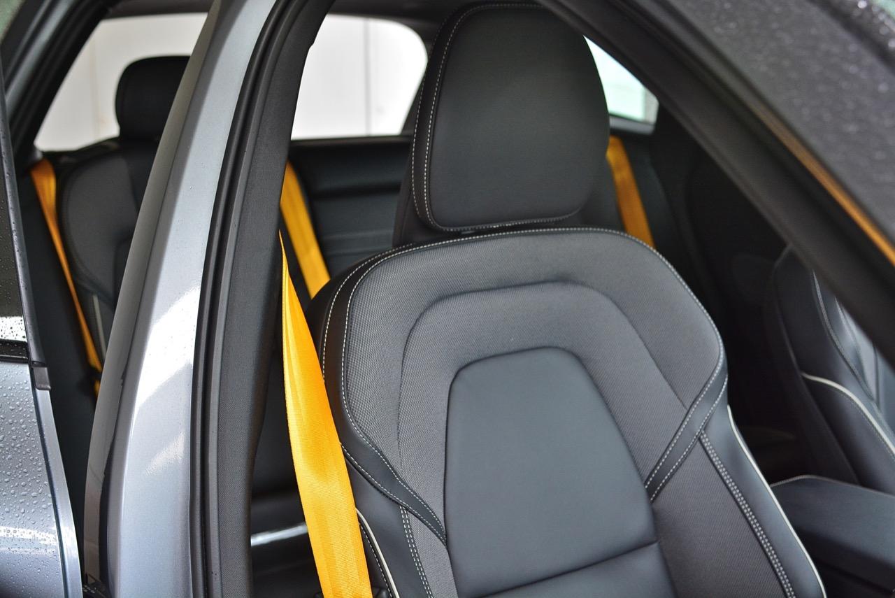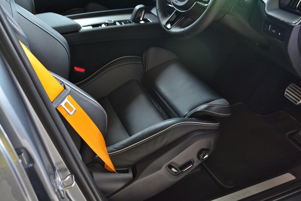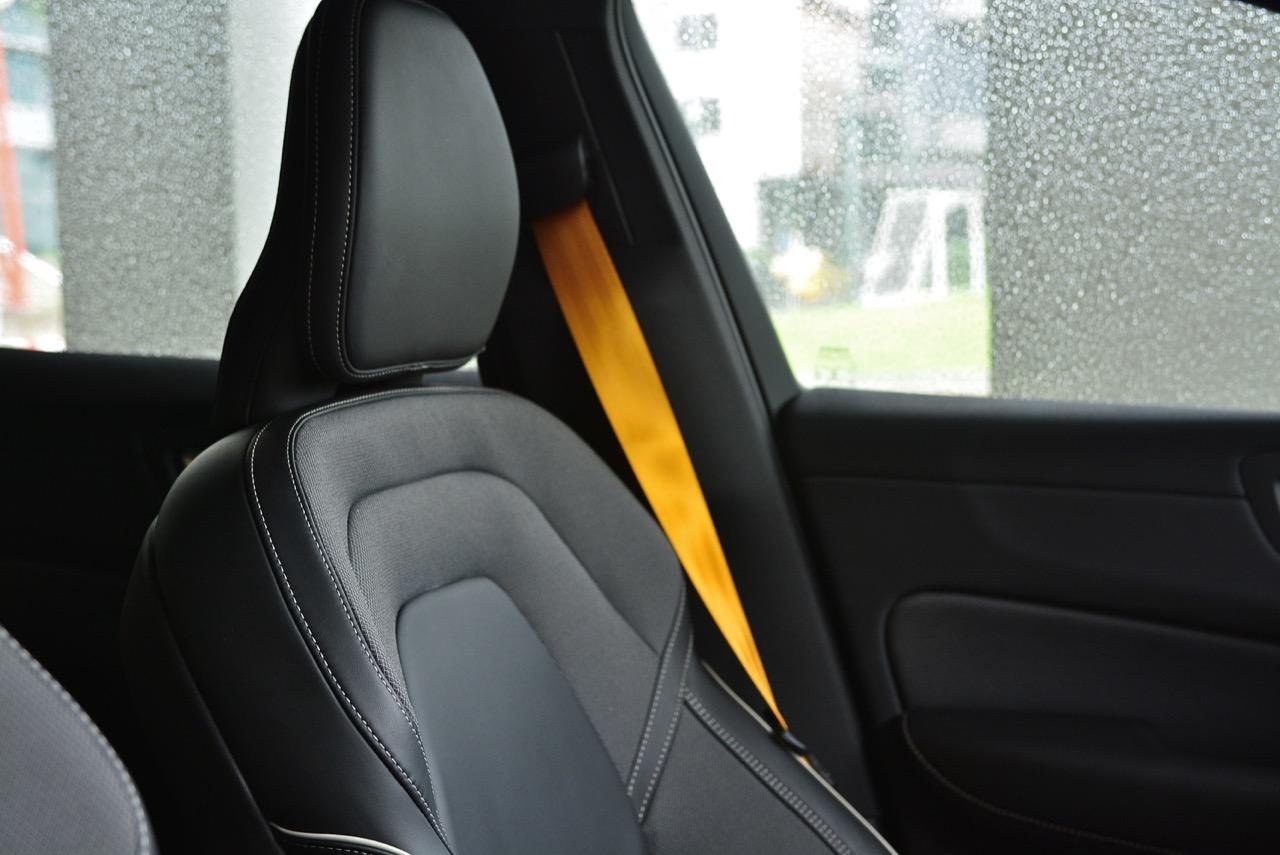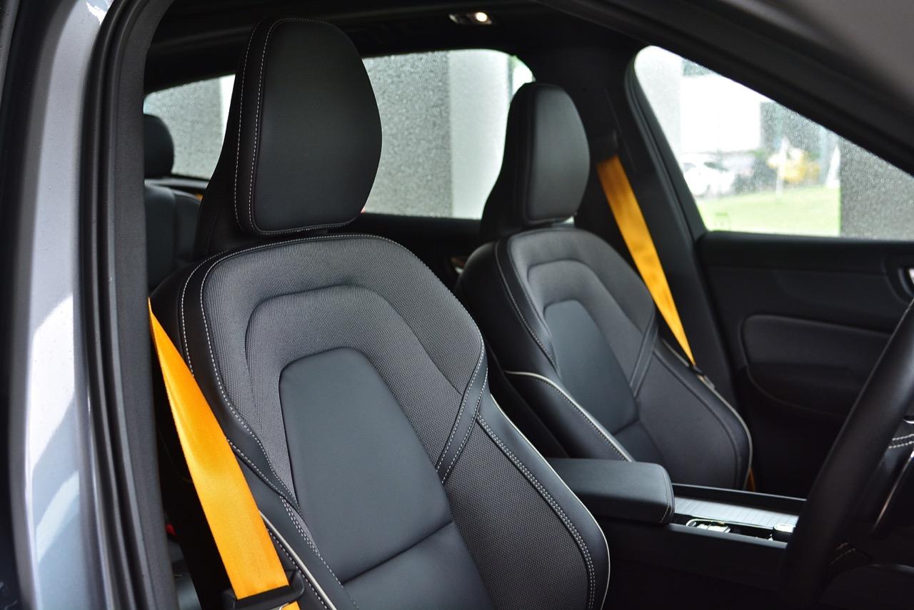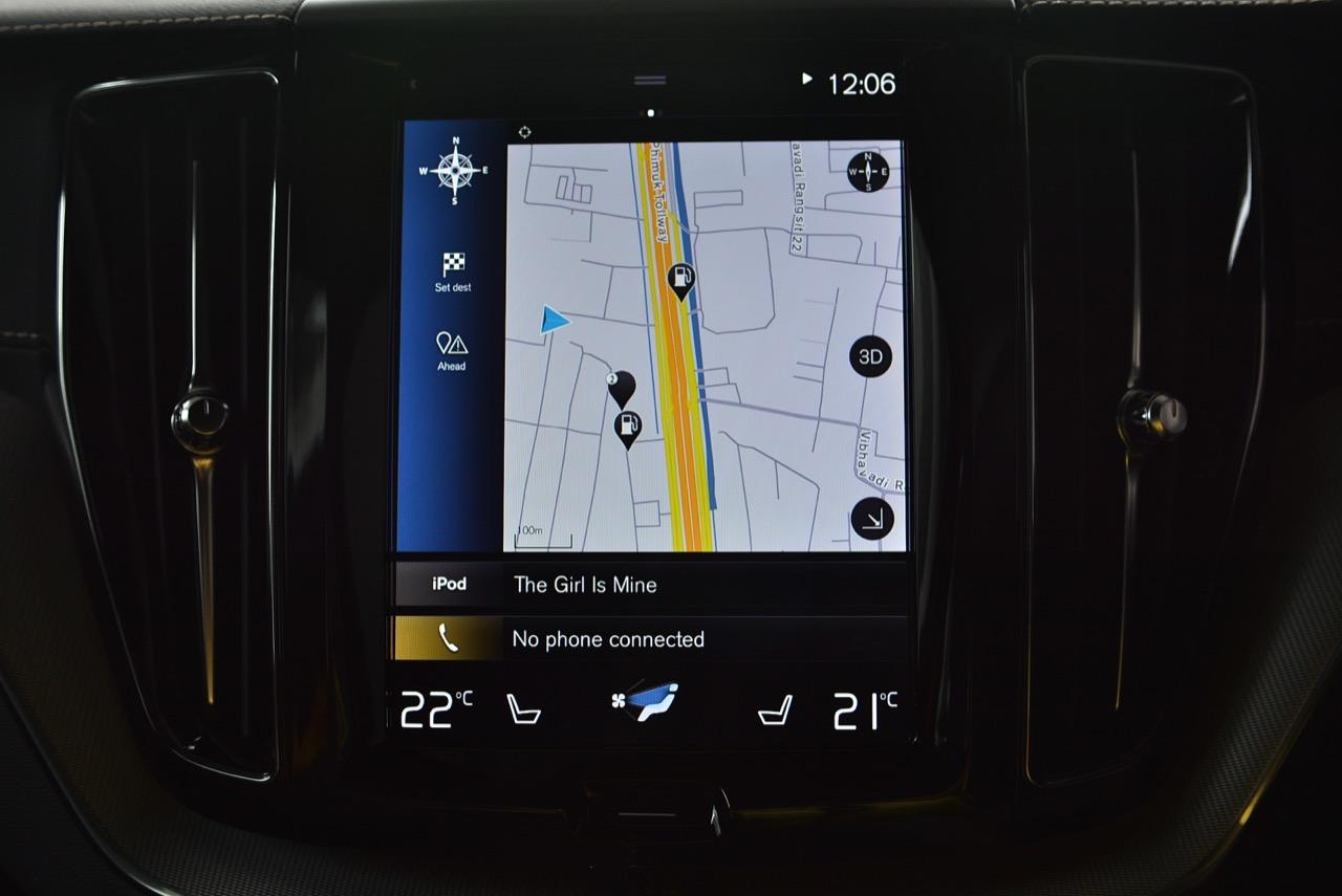 ขับออกทางไกล เดินทางไปทดสอบแถบภูเขาสูงในจังหวัดกาญจนบุรี ท่านั่งที่แสนสบายของ Volvo เกิดจากเบาะนั่งแบบสปอร์ตอย่างนิ่ม พร้อมเข็มขัดนิรภัยสีเหลืองสุดเท่ เบาะหนังหุ้มสองชั้น โชว์ความประณีตด้วยหนังแบบปกติและผ้าเนื้อดีที่มีความคงทน เบาะคู่หน้าปรับไฟฟ้าจัดวางในตำแหน่งที่ดีคล้ายกับท่านั่งใน X3 Lexus RX และ GLC ที่เน้นให้คนขับเป็นจุดศูนย์กลางในการใช้งานอุปกรณ์ภายในบวกกับความสบายของวัสดุที่ใช้รองและห่อหุ้มเบาะ พวงมาลัยทรงสามก้านหน้าตาแบบรถผู้ใหญ่ซึ่งเป็นสไตล์ของรถ Volvo พวงมาลัยมีขนาดที่เหมาะมือ เหมือนจะใหญ่แต่จับแล้วพอเหมาะพอดี พวงมาลัยหุ้มหนังแท้ที่จับได้กระชับมือคือความจำเป็นสำหรับรถหรูราคาแพง เป็นอุปกรณ์สำคัญที่คุณจะต้องจับไปตลอดการขับ ปุ่มควบคุมต่างๆรวมถึงการจัดวางตำแหน่งแป้น Paddle Shift หลังพวงมาลัยที่ช่วยทำให้การเปลี่ยนเกียร์ 8 สปีด ทำได้รวดเร็วมากยิ่งขึ้น