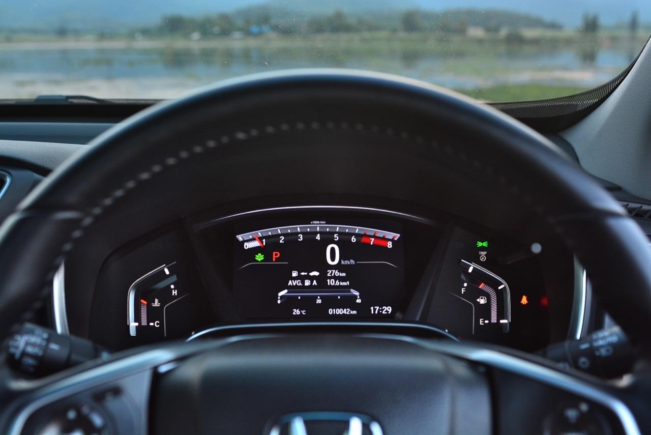 New CR-V 2.4 EL 4WD มีเอกลักษณ์ของรถยนต์อเนกประสงค์ที่ชัดเจน มันจะถ่ายเทประสิทธิภาพของการทรงตัวออกมา เมื่อคุณลองขับไปได้ไม่ไกลมากนักก็จะรู้ได้ทันทีว่ามันถูกออกแบบให้ขับได้ง่ายและสบาย เหมาะกับคุณสุภาพสตรีอย่างที่สุด! อัตราสิ้นเปลืองในเมืองทำได้ที่ 9.4 กิโลเมตรต่อลิตร ขณะที่รุ่นดีเซลทำได้ 11.5 กิโลเมตรต่อลิตร รับประทานน้อยกว่ารุ่น 2.4 เบนซิน ไม่มาก อยู่ที่ฝ่าเท้าของคุณว่าจะขับแบบไปเรื่อยๆ หรือขับเร็วๆ แบบรีบเร่ง เชื้อเพลิง 1 ถัง ของ CR-V Facelift 2020 รุ่น 2.4 เบนซิน จำนวน 57 ลิตร ทำระยะทางไปได้ 400 กิโลเมตรเศษก่อนที่ไฟแจ้งเตือนเชื้อเพลิงในถังจะติดขึ้นมา ส่วนอัตราสิ้นเปลืองนั้นทำได้ 8.7 กิโลเมตร เมื่อลากกันยาวๆ ในตำแหน่งเกียร์ S จากถนนบางบัวทอง สุพรรณบุรี ไปยังอ่างเก็บน้ำลำตะเพินในจังหวัดกาญจนบุรี ไฟเตือนเชื้อเพลิงเหลือน้อยมาติดขึ้น เมื่อผมขับกลับจนถึงอำเภอหนองปรือ เครื่องยนต์เบนซิน 2.4 ลิตร ไม่มีเทอร์โบ อาจไม่ได้ประหยัดเท่ากับเครื่องยนต์ดีเซล แต่เงียบกว่าเยอะ ส่วนอัตราสิ้นเปลือง ถ้าขับปกติ ก็อยู่ในค่าเฉลี่ยกลางๆ พอรับได้ แต่ก็มีแอบคิดเอาเองว่ามันน่าจะประหยัดได้มากกว่านี้ แต่เมื่อไหร่ที่ขับแบบจัดหนัก เข็มวัดเชื้อเพลิงหล่นเห็นๆ และกินเอาเรื่องอยู่เหมือนกัน