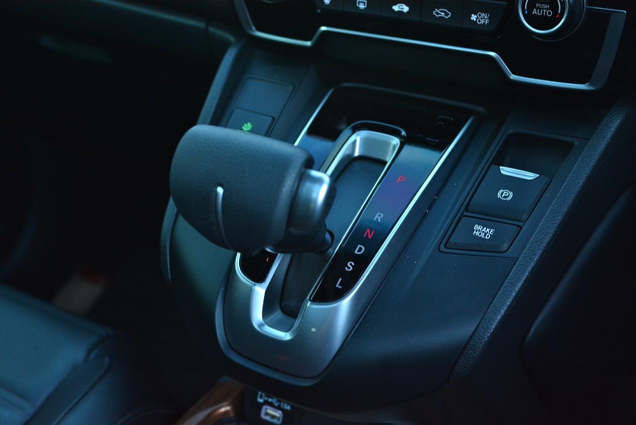 ระบบส่งกำลัง ใช้เกียร์อัตโนมัติแบบแปรผันต่อเนื่อง ไม่มีแป้น Paddle Shift มาให้ ตำแหน่งเกียร์ออโต CVT แบบแปรผัน มีให้ใช้งานแค่ D / S / L ขับแบบปกติก็ยัดเกียร์ D ต้องการให้ตอบสนองเร็วขึ้นก็เลื่อนคันเกียร์ไปที่ S สำหรับทางลาดชัน ทางขึ้น-ลงภูเขา ก็ยังมีตำแหน่ง L ซึ่งจะล็อกเกียร์ 1-2 สำหรับการขับขึ้นลงทางลาดชันให้ใช้งาน อาจไม่สะดวกเท่ากับเกียร์ 9 สปีดของรุ่นดีเซลแต่เกียร์ CVT แบบใหม่ของ Honda ก็มีการทำงานที่ไหลลื่น ปราศจากอาการกระตุก กระชาก แต่ยังคงมีความย้วยและขาดความกระชับรัดกุมอยู่บ้างในบางจังหวะที่คุณต้องการปรับอัตราทดด้วยตัวเอง