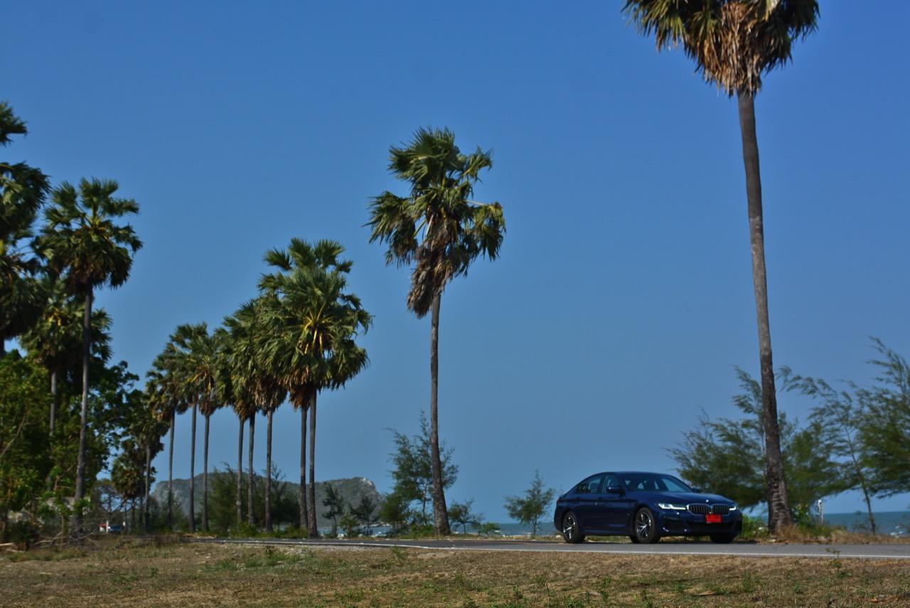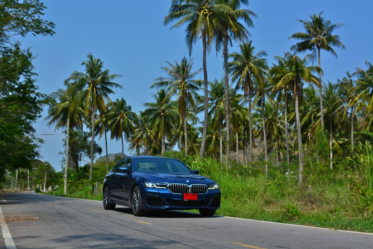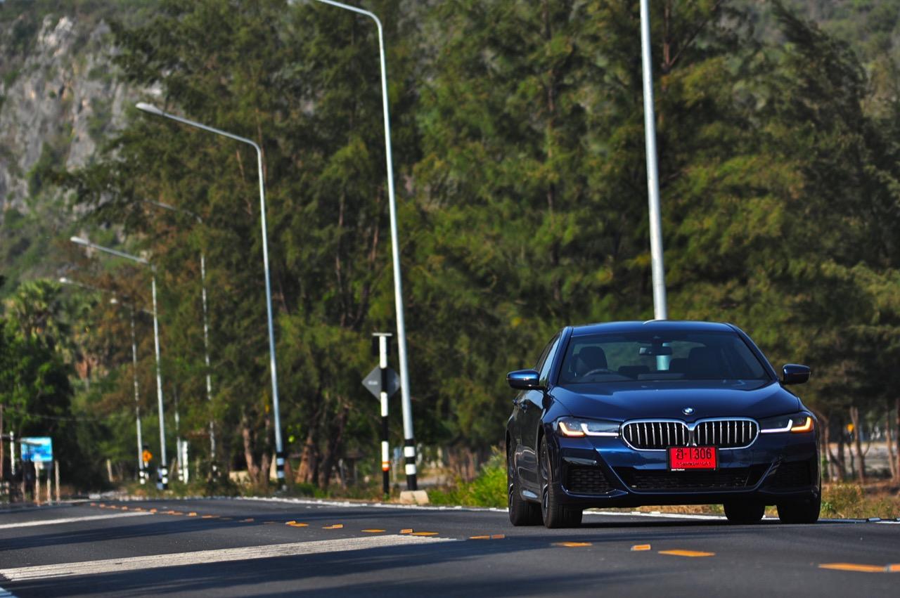 ระยะทางจากกรุงเทพฯไปยังอำเภอปราณบุรีประมาณ 226 กิโลเมตร เจ้า Series-5 520d ใช้เวลาวิ่งตามสายธารจราจร มีเร่งแซงและทำความเร็วต่อเนื่องเมื่อเจอเข้ากับถนนโล่งๆ ในย่านความเร็วเดินทาง BMW 520d M Sport มีความนิ่งและเงียบใช้ได้ เสียงยางรันแฟลตไม่ได้ดังอะไรมากมาย ส่วนเสียงลมปะทะกับกระจกมองข้าง ต้องขับที่ความเร็ว 140 ขึ้นไปถึงจะเริ่มได้ยิน ช่วงล่างที่ปรับใหม่ในเวอร์ชัน LCI นั่งสบายแถมยังให้อารมณ์ความรู้สึกแบบสปอร์ต โช้คกับสปริงทำหน้าที่ได้ดี ทำให้ไม่รู้สึกกระด้าง แม้ช่วงล่างจะไม่ใช่ระบบถุงลมเหมือนรถรุ่นพี่แต่ความนิ่มนวลนั้นไม่เป็นรอง Series-7 รุ่น 745 แม้แต่น้อย การถ่ายเทน้ำหนักในโค้งอยู่ในเกณฑ์ดี ส่วนการเก็บเสียงของรถ Series-5 คันนี้ก็ดีขึ้นเล็กน้อย