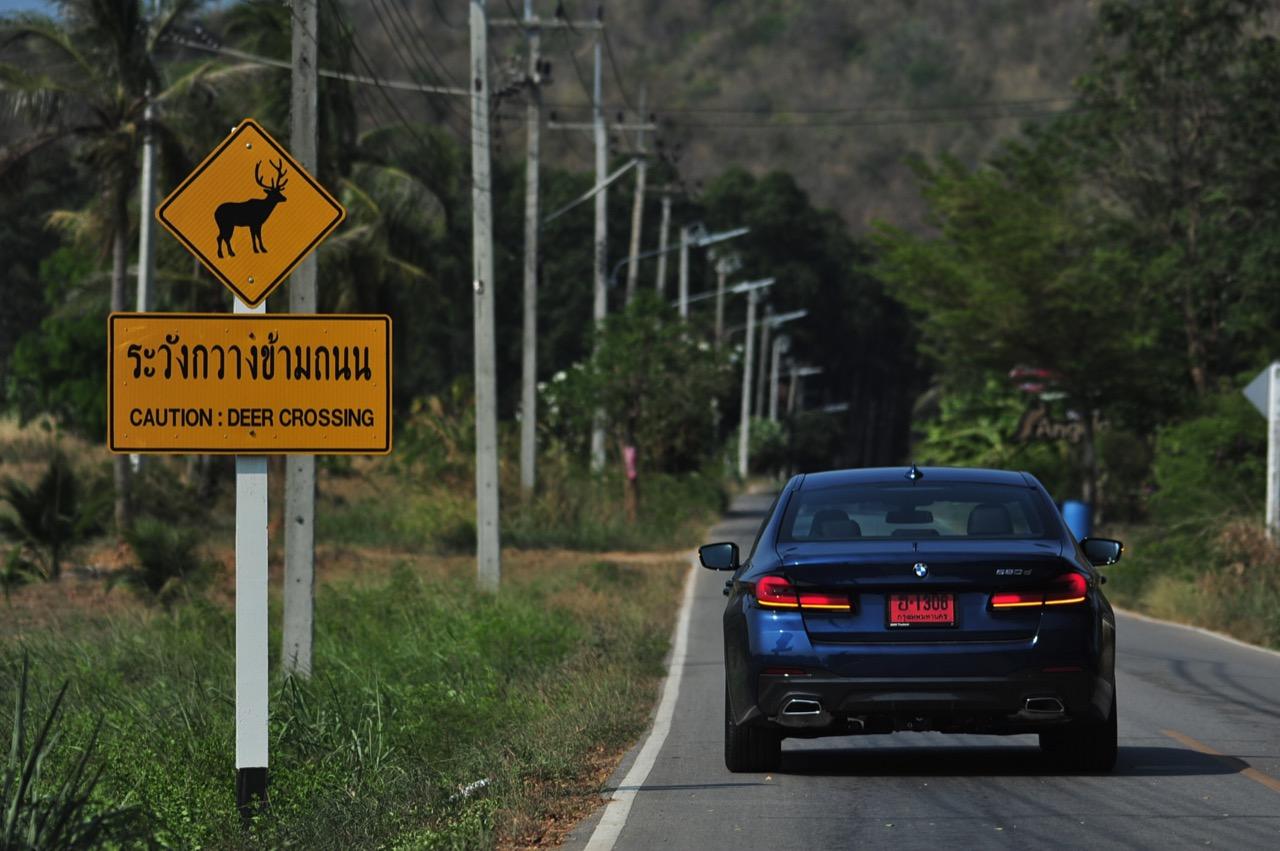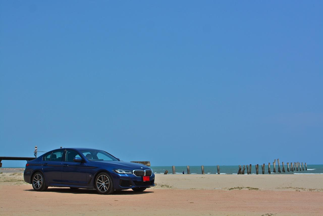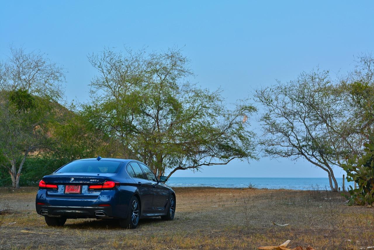 ระยะทางจากกรุงเทพฯไปยังอำเภอปราณบุรีประมาณ 226 กิโลเมตร เจ้า Series-5 520d ใช้เวลาวิ่งตามสายธารจราจร มีเร่งแซงและทำความเร็วต่อเนื่องเมื่อเจอเข้ากับถนนโล่งๆ ในย่านความเร็วเดินทาง BMW 520d M Sport มีความนิ่งและเงียบใช้ได้ เสียงยางรันแฟลตไม่ได้ดังอะไรมากมาย ส่วนเสียงลมปะทะกับกระจกมองข้าง ต้องขับที่ความเร็ว 140 ขึ้นไปถึงจะเริ่มได้ยิน ช่วงล่างที่ปรับใหม่ในเวอร์ชัน LCI นั่งสบายแถมยังให้อารมณ์ความรู้สึกแบบสปอร์ต โช้คกับสปริงทำหน้าที่ได้ดี ทำให้ไม่รู้สึกกระด้าง แม้ช่วงล่างจะไม่ใช่ระบบถุงลมเหมือนรถรุ่นพี่แต่ความนิ่มนวลนั้นไม่เป็นรอง Series-7 รุ่น 745 แม้แต่น้อย การถ่ายเทน้ำหนักในโค้งอยู่ในเกณฑ์ดี ส่วนการเก็บเสียงของรถ Series-5 คันนี้ก็ดีขึ้นเล็กน้อย