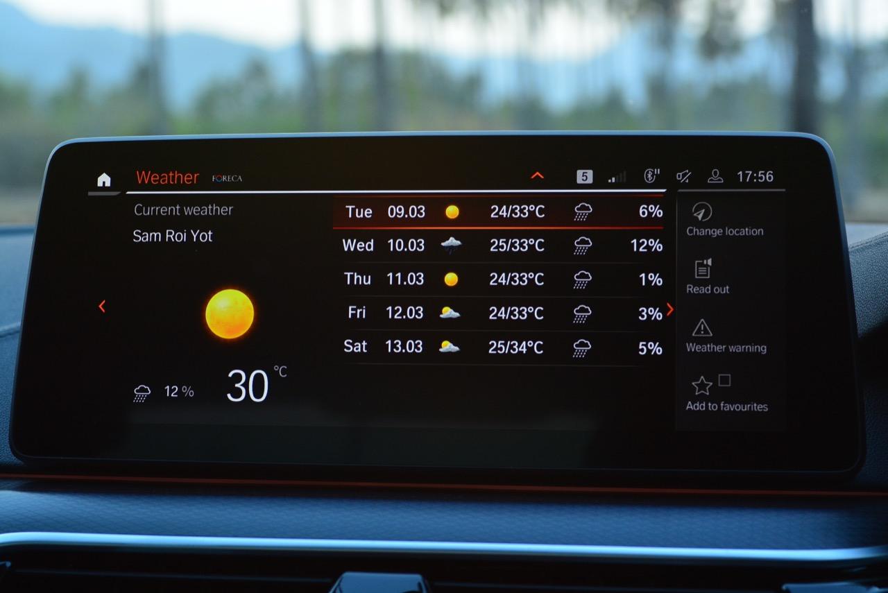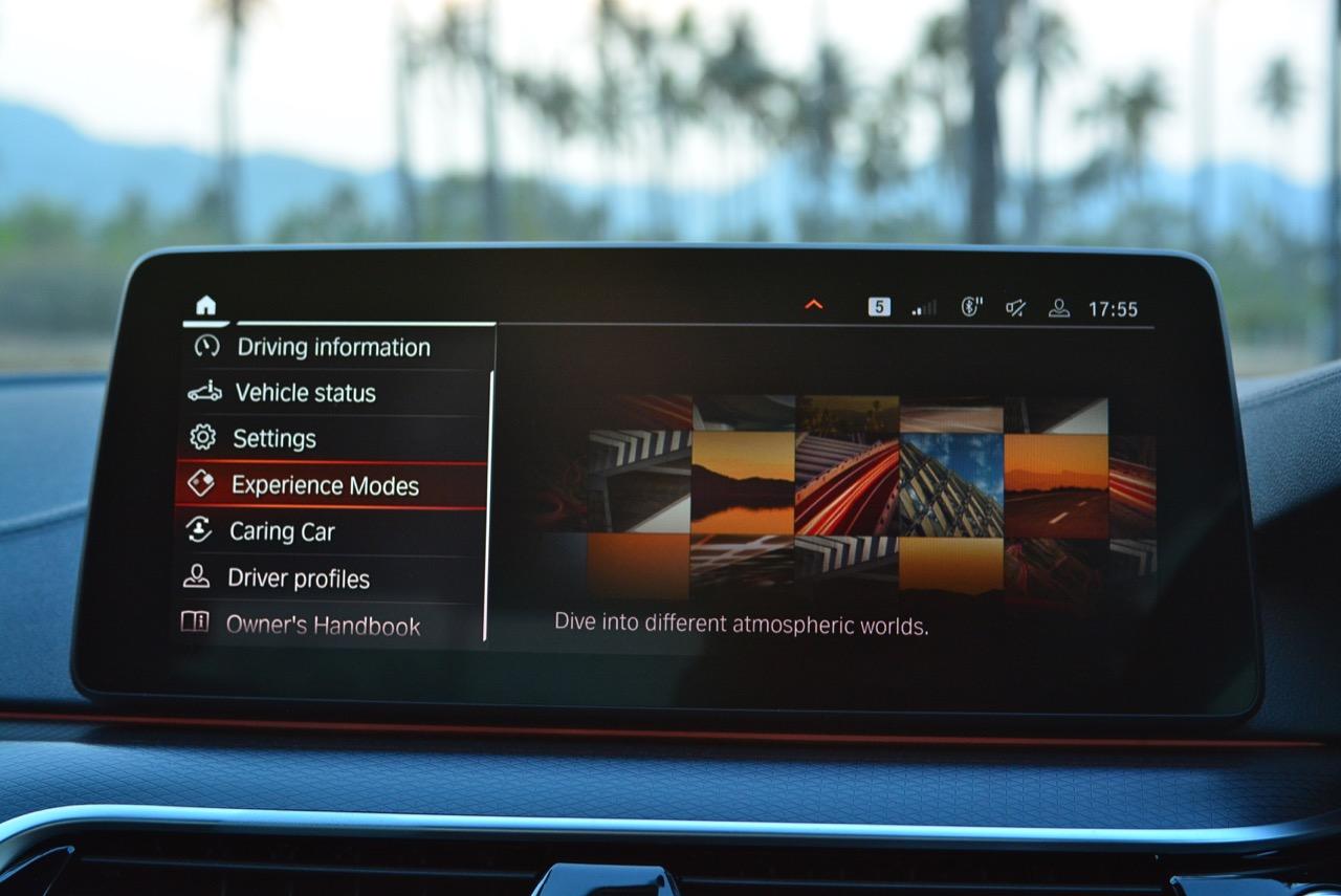 ระดับความคมชัดของหน้าจอมอนิเตอร์ใน New Series-5 G30 ให้รายละเอียดของภาพกราฟิกบนการทำงานของฟังก์ชันใหม่ที่มีการเพิ่มเข้ามาให้ ชุดควบคุม iDRIVE เวอร์ชันใหม่ล่าสุดมาพร้อมหน้าจอมอนิเตอร์ขนาด 10.25 นิ้ว ช่วยให้เจ้าของรถสั่งการผ่านปุ่มควบคุม iDRIVE ได้ง่ายและสะดวกกว่าปุ่มแบบคลิก รวมถึงรูปแบบของการสั่งงานในระบบสาระบันเทิงที่คล้ายการสั่งงานด้วยโทรศัพท์สมาร์ทโฟน พร้อมฟังก์ชัน Message Centre ภายในระบบ iDRIVE สำหรับการพิมพ์ข้อความ ตอบอีเมลหรือข้อมูลอื่นๆ