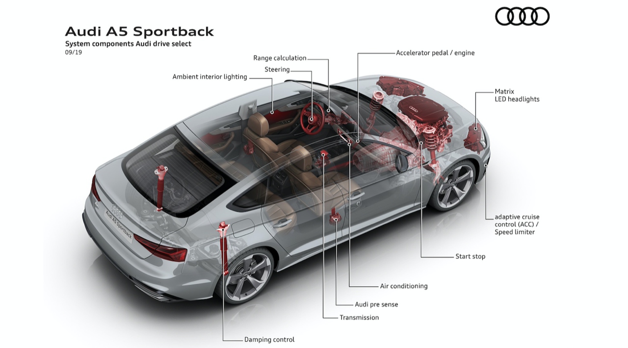 Diver Select ของ Audi สร้างโหมดการขับเคลื่อนที่ครอบคลุมทุกสภาวะการขับขี่ได้ดีที่สุด โดยเฉพาะการทำงานร่วมกับพวงมาลัยไฟฟ้าแบบสปอร์ต โหมด Comfort และ Auto ไม่ได้สร้างความแตกต่างในด้านการตอบสนองมากนัก แต่คุณจะรู้สึกได้อย่างชัดเจนเมื่อขับเร็วในโหมด Dynamic เสียงเครื่องยนต์ดังขึ้นเล็กน้อยเมื่อใช้รอบสูง การตอบสนองของคันเร่งที่เฉียบคมขึ้น พวงมาลัยเมื่อขับเร็วก็หน่วงน้ำหนักให้มากขึ้นจนรู้สึกได้ ไม่มีใครสงสัยในเรื่องของการตอบสนอง โดยเฉพาะการเลือกใช้โหมดขับเคลื่อนให้เหมาะสมกับสไตล์การขับ แม้จะขับเคลื่อนล้อหน้า แต่ A5 Sportback 40TFSI ก็ประพฤติตัวได้ดี อาจรู้สึกจืดชืดอยู่บ้างในด้านของการเทแรงบิดและการพุ่งทะยาน แต่เสถียรภาพในด้านความนิ่งเมื่อขับด้วยความเร็วสูงยังคงเอกลักษณ์ของยานยนต์ Audi เอาไว้อย่างเหนียวแน่น