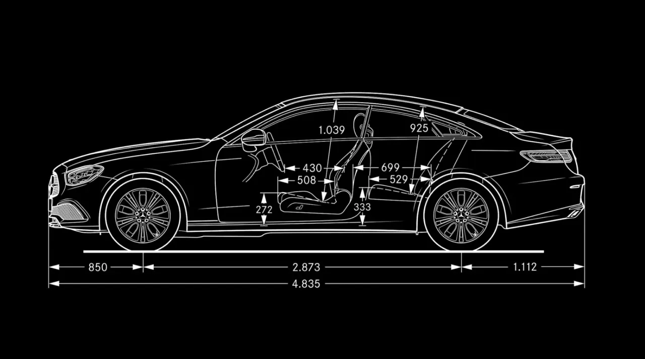 Mercedes Benz E200 Coupe AMG Dynamic Facelift 2021 ตัวถังคูเป้ มีเรือนร่างที่โตเกือบจะเท่ากับ New S-Coupe โดยมีความยาว 4,826 มิลลิเมตร กว้าง 1,860 มิลลิเมตร และสูง 1,430 มิลลิเมตร เรือนร่างของ E-Class Coupé C238 แตกต่างจากบรรพบุรุษของมันในแง่ของความยาวความกว้างและความสูง ฐานล้อแทร็กที่กว้างขึ้นด้วยขนาดความกว้างของล้อหน้าที่ 1,605 มิลลิเมตร และ 1,609 มิลลิเมตรที่ด้านหลัง มอบพลวัตการขับเคลื่อนด้วยความเสถียรมากยิ่งขึ้น ความยาวของตัวถังและฐานล้อที่เพิ่มขึ้น แต่มีโอเวอร์แฮงก์สั้นเพื่อความคล่องตัว ค่าสัมประสิทธิ์แรงเสียดทานอากาศ หรือค่า CD อยู่ที่ 02.5 นับว่าต่ำมากเมื่อเปรียบเทียบกับกลุ่มรถสปอร์ตคูเป้ไซส์กลางของคู่แข่ง