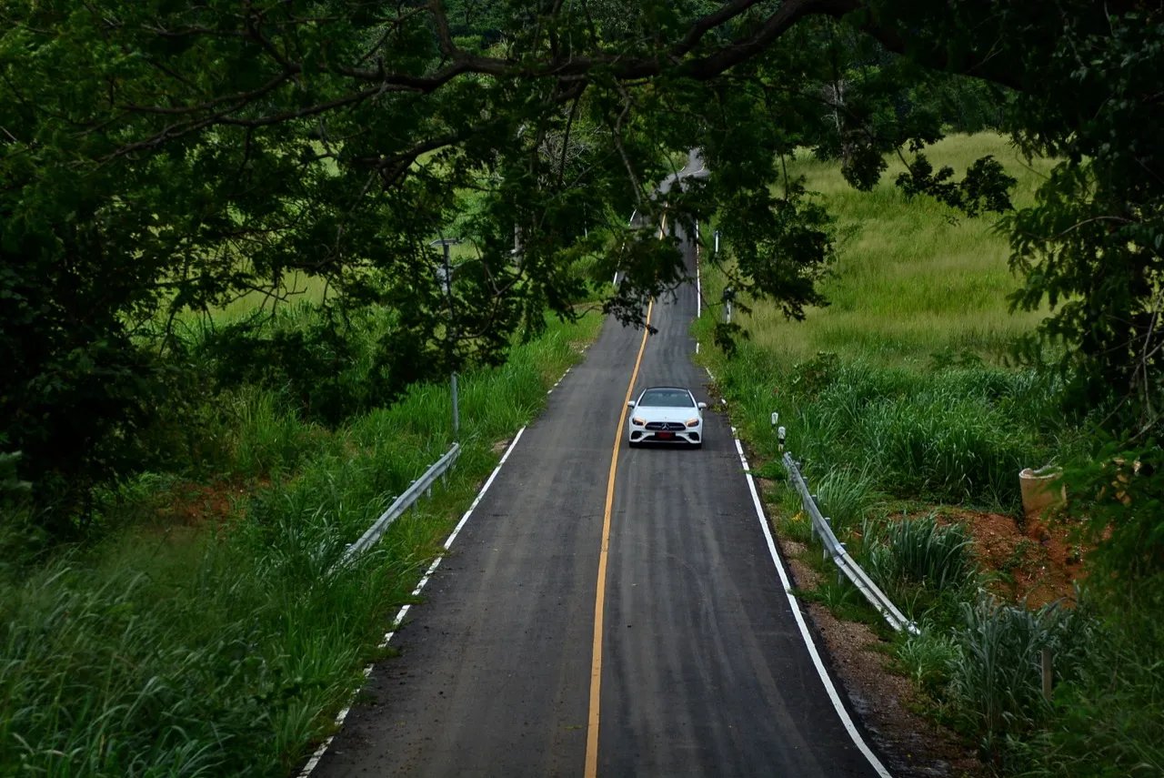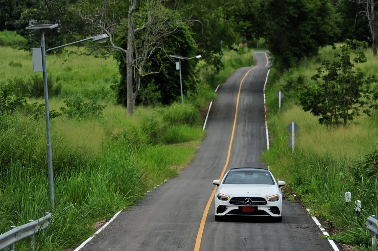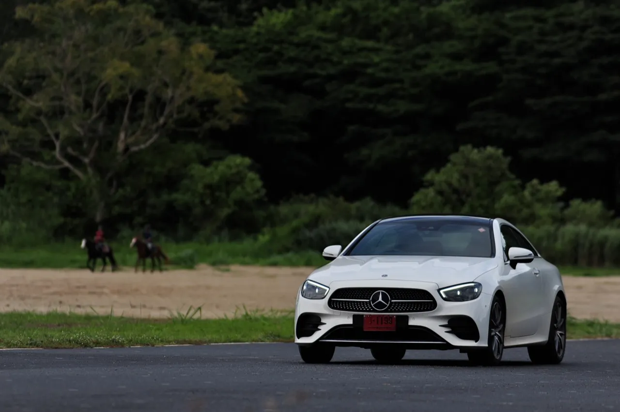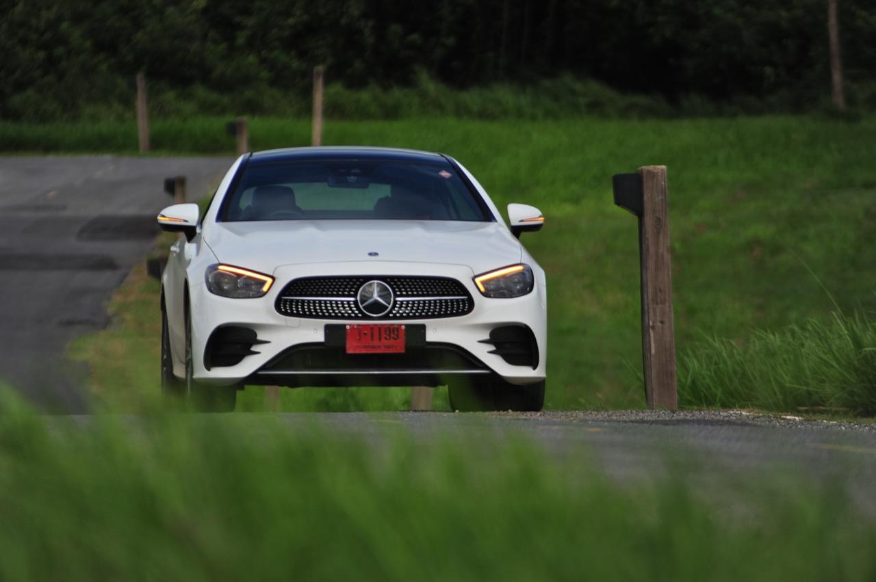 ปัจจุบัน ประสิทธิภาพของช่วงล่างที่เซตมาใกล้เคียงกับรถของคู่แข่ง ทำให้ Dynamic ของ E-Coupe ไม่เป็นรอง Audi A5 45TFSI Quattro หรือ BMW 430i M Sport ระบบรองรับของ E200 Coupe Facelift 2021 เหมาะสมกับการขับบนถนนที่หลากหลายในแถบนี้ การขับหรือนั่งโดยสารในรถสปอร์ตคูเป้แบรนด์ตราดาว ในส่วนของพื้นที่เบาะคนขับและผู้โดยสารตอนหน้า คุณจะนั่งอย่างมั่นคงและสบายเนื้อสบายตัว แทบจะไม่ต่างจาก E-Class รุ่น 4 ประตู เมื่อขับผ่านภูมิประเทศที่เต็มไปด้วยป่าและภูเขา ซึ่งมีความเหมาะสมกับรูปแบบของรถทดสอบ ข้อดีของถนนชนบทคือ ความหลากหลายของเส้นทาง โดยไม่ไปรบกวนรถคันอื่น เนื่องจากเส้นทางที่ผมเลือกใช้ในแถบนี้ ไม่ค่อยจะมีรถวิ่งผ่านมากนัก