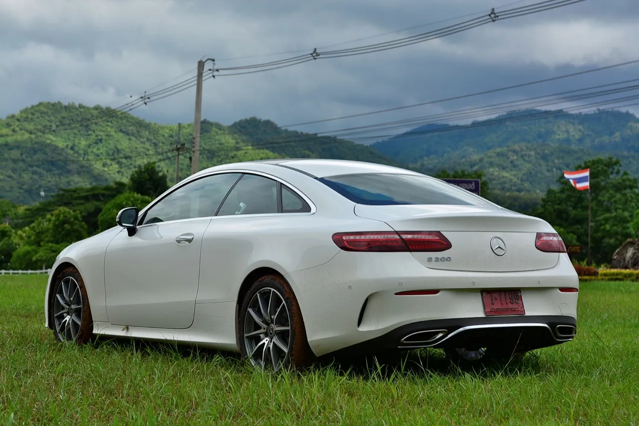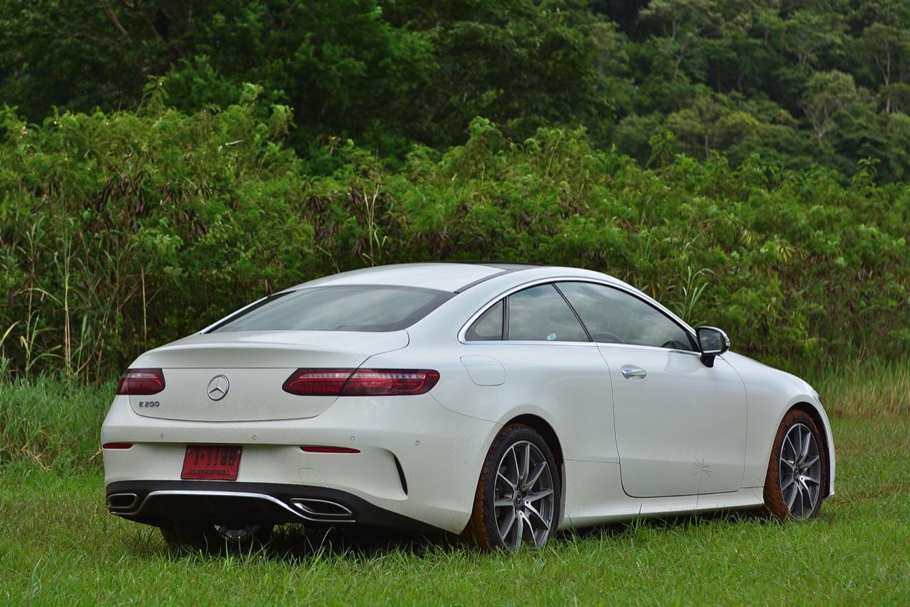 E200 Coupe AMG Dynamic ราคา 4,550,000 บาท เป็นรถสปอร์ตที่ขับได้ดี ไม่ว่าจะเป็นย่านของกำลังที่พอดี ดูเหมือนจะมีเรี่ยวแรงไม่มาก และไม่ได้เป็นรถสปอร์ตที่มีแรงฉุดลากมหาศาล พูดง่ายๆ ก็คือมันขับสบาย เร่งดี ไม่แรงมากจนอาจก่อให้เกิดอันตราย หรือมีกำลังน้อยเกินไปจนทำให้ขับไม่สนุก มันมีขนาดที่ใกล้เคียงกับ S-Class Cabriolet ลำตัวยาวเกือบๆ 5 เมตร กว้างถึง 1,860 มิลลิเมตร สัดส่วนความกว้างสูสีกับ E-Class ซาลูน 4 ประตู ทำให้พื้นที่ของเบาะคู่หน้ามีขนาดเท่ากัน ส่งถ่ายความรู้สึกกว้างขวางโอ่โถง และค่อนข้างจะขัดแย้งกับทรงของรถแบบ 2 ประตู ราคา 4.5 ล้านบาท แพงกว่า BMW 430i ที่มีราคา 3,969,000 บาท อยู่พอสมควร รวมถึงยังแพงกว่า Audi A5 Coupe 45TFSI Quattro ที่มีราคา 3,599,000 บาท ถือว่าพี่สี่ห่วง มีราคาที่ถูกสุดเมื่อเทียบกับรถคู่แข่งสายหล่อทั้งสองยี่ห้อ ระบบช่วยเหลือต่างๆ เหนือชั้นกว่า C-Coupe เนื่องจาก E200 เป็นรถสปอร์ตในตระกูล E-Class Coupe ที่คลอดออกมาในปี 2017 และเพิ่งจะเปิดตัวรุ่นปรับโฉมในงานบางกอก อินเตอร์เนชั่นแนล มอเตอร์โชว์ เมื่อเดือนเมษายนที่ผ่านมา ความทันสมัยเฉพาะอุปกรณ์มาตรฐานที่ให้มาก็ใช้แทบไม่หมด ออกจากกรุงเทพฯมุ่งหน้าไปยังอำเภอปากช่องและมวกเหล็ก เมื่อวิ่งอยู่บนทางหลวงชนบท เสียงเครื่องยนต์ในโหมด Sport ออกมาแบบสุภาพเรียบร้อย ต้องกดคันเร่งลากรอบมากหน่อย คุณถึงจะได้ยินเสียงคำรามจากการทำงานในรอบสูงของเครื่องยนต์ 2 ลิตร เทอร์โบ จุดเด่นของตราดาวสองประตูรุ่นนี้ อย่างที่บอกเอาไว้ตั้งแต่ต้นก็คือ ความสบาย จากช่วงล่างที่ผ่อนสั้นผ่อนยาว พวงมาลัยไฟฟ้า Direct steering มีความเที่ยงตรงแม่นยำ โดยเฉพาะในโหมดสปอร์ตที่ซอฟต์แวร์ควบคุมการทำงานของชุดบังคับเลี้ยวจะปรับน้ำหนักของพวงมาลัยให้สอดคล้องกับความเร็วในขณะนั้น