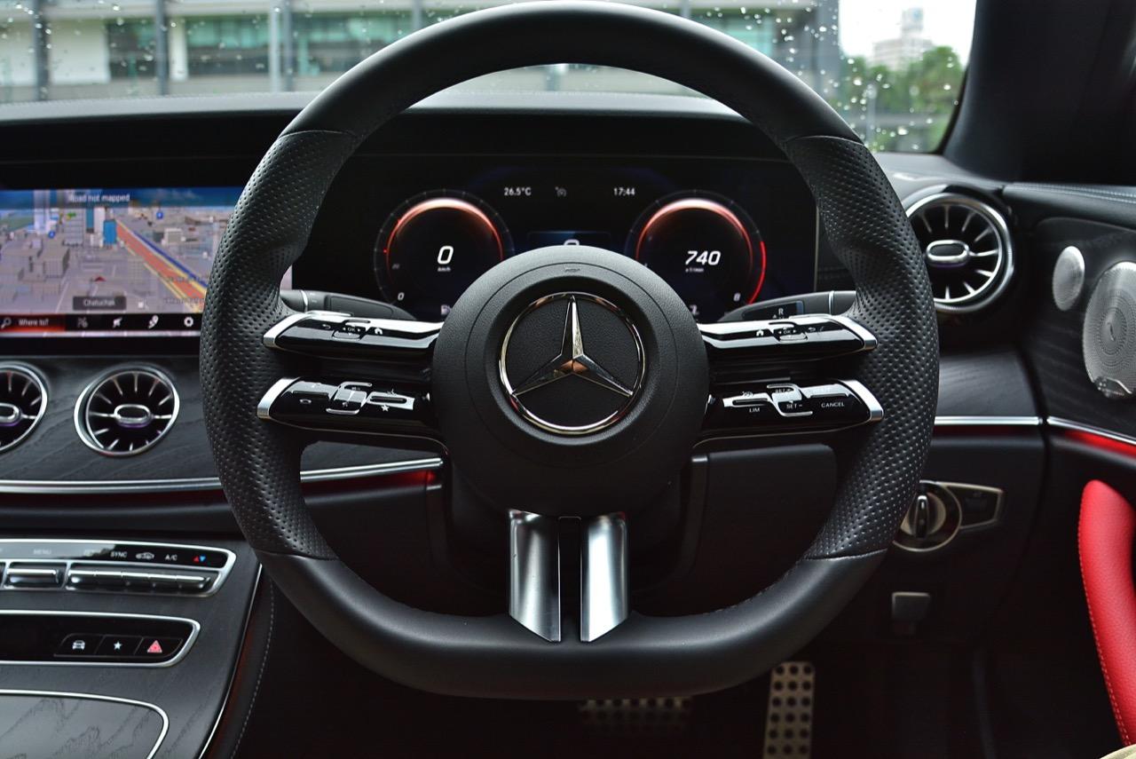 Mercedes-Benz E200 Coupe AMG Dynamic รุ่นปรับโฉม Facelift เป็นรถที่มีช่วงล่างดี เมื่อเทียบกับคู่แข่งในกลุ่มรถคูเป้เยอรมันราคาแพง มันถูกปรับมาให้เงียบและมีแรงสั่นสะเทือนน้อยลง จนทำให้รู้สึกแปลกใจ ช่วงล่างรัดกุมกว่ารุ่น 4 ประตูเล็กน้อย ส่วนรุ่นที่แรงกว่าอย่าง E53 Coupe 4MATIC มีราคาที่พุ่งทะยานเป็นดาวหาง! คุณสามารถใช้งานรถ Benz 2 ประตูในชีวิตประจำวันได้อย่างสบาย โดยไม่สร้างความยากลำบากในด้านพื้นที่ใช้สอย การขับทดสอบตลอด 14 วัน ทั้งในกรุงเทพฯ สระบุรีไปจนถึงชายขอบของโคราช บ่งบอกว่ามันเป็นรถสปอร์ตที่ขับเนียนใช้ได้ เครื่องยนต์มีกำลังพอตัว เกียร์ 9G-Tronic ไหลลื่น แม้จะชิฟเกียร์ผ่าน Paddle Shift ในโหมดสูงสุด Sport + มันก็ยังทำงานในแบบอัตโนมัติอยู่ดี