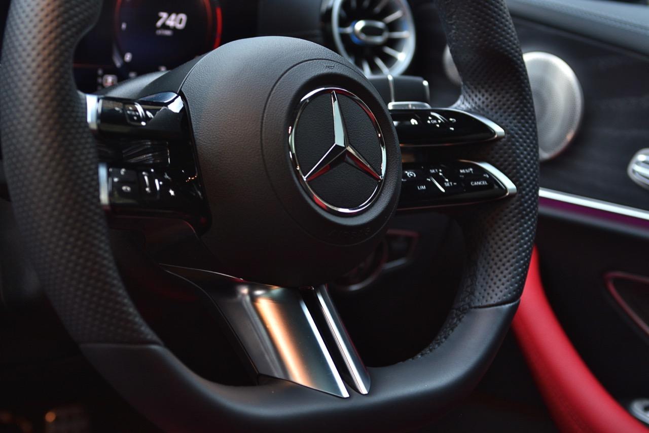 Direct-Steer speed sensitive steering บนพวงมาลัย AMG แบบใหม่ ผสานการทำงานกับโหมดขับเคลื่อนผ่าน DYNAMIC SELECT ครอบคลุมโหมด ECO, Comfort, Sport, Sport+ และ Individual ส่งมอบความรู้สึกของพวงมาลัยที่หลากหลายผสมปนเปไปบนโหมดการขับเคลื่อน 5 รูปแบบ โหมด Comfort พวงมาลัยไฟฟ้าปรับน้ำหนักไปตามความเร็วของรถ โดยพยายามทำตัวเองให้เบาเข้าไว้ในย่านความเร็วต่ำ ไม่ว่าจะถอยออกจากที่จอดอันคับแคบ หรือหักเลี้ยวไปตามทางโค้งก็สามารถควบคุมทิศทางของเจ้า E300 Cabriolet รุ่นใหม่ด้วยความมั่นใจ เมื่อลองขับเร็วขึ้น พวงมาลัยไฟฟ้าชื่อยาวเหยียด Direct-Steer speed sensitive steering ผ่องถ่ายน้ำหนักไปตามความเร็วทันที โดยปรับน้ำหนักของพวงมาลัยให้หนักขึ้นอีกนิด เพื่อความกระชับรัดกุมเมื่อใช้ความเร็ว