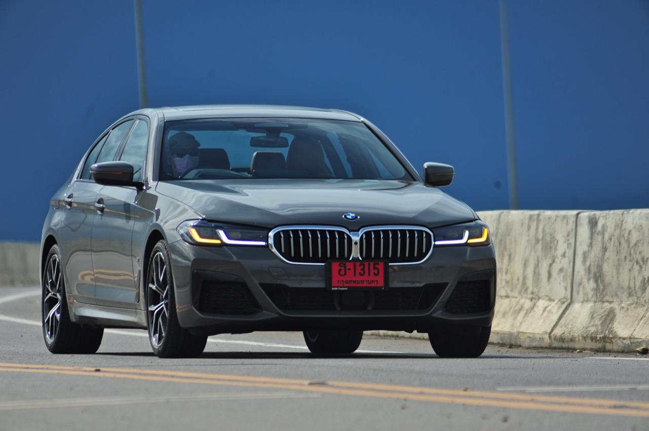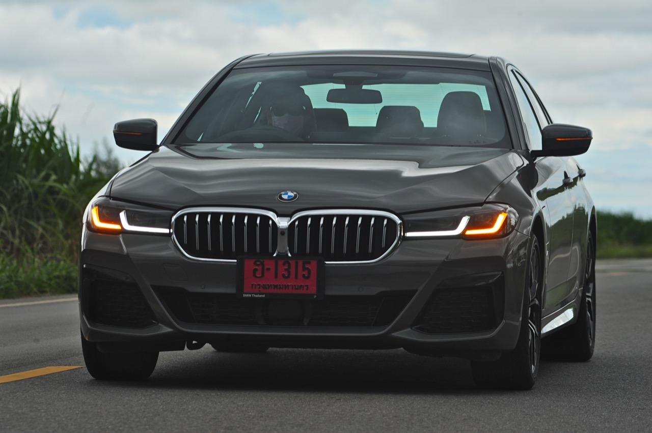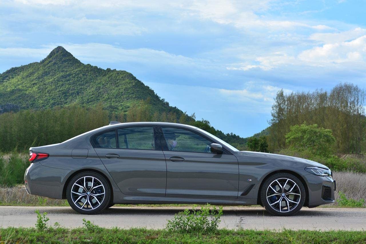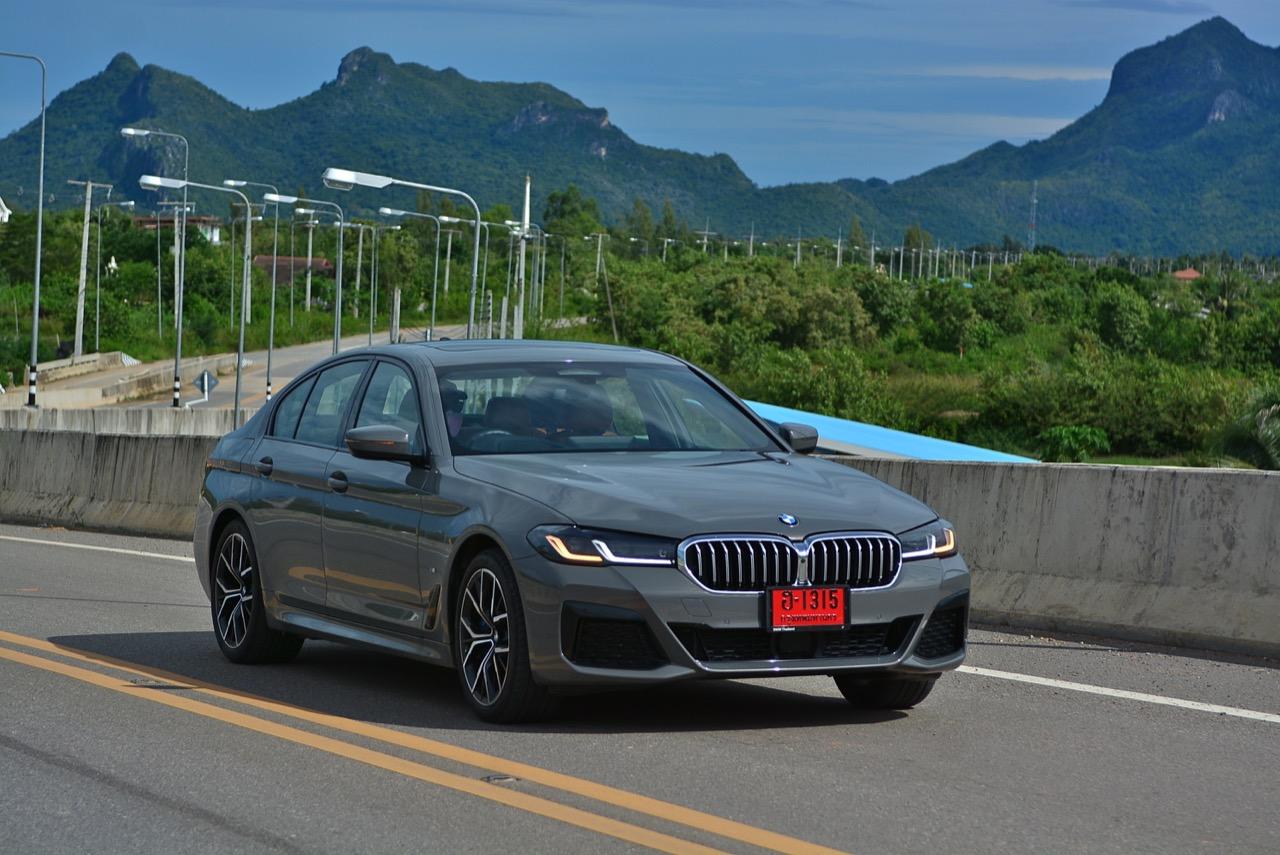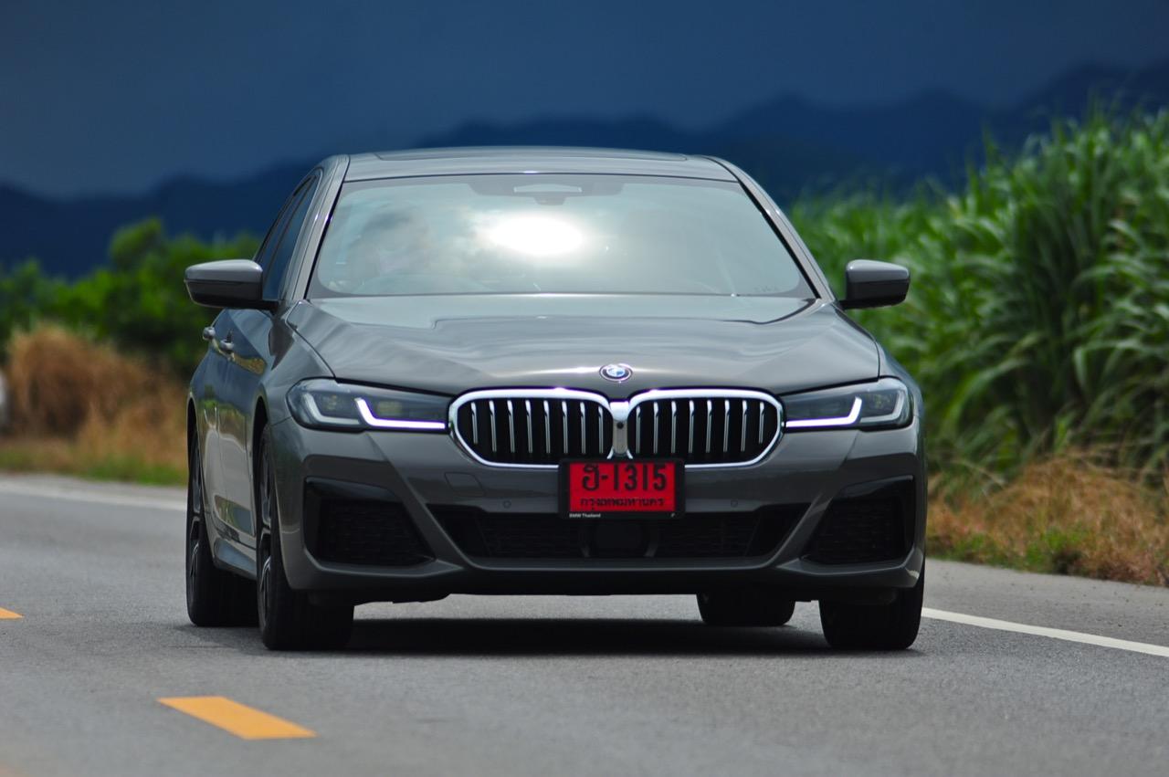 BMW 530e M-Sport LCI สิ่งที่เปลี่ยนไปก็คือ หน้าตาที่ลงตัว โดยเฉพาะสีเทาที่กำลังฮิต เป็นรถที่เงียบ เมื่อวิ่งในโหมด Hybrid หรือ Electric การสตาร์ทเครื่องยนต์เริ่มต้นจากการทำงานของมอเตอร์ไฟฟ้าทำให้เครื่องยนต์ยังคงหลับใหลหากขับในย่านความเร็วต่ำหลังจากชาร์จไฟมาทั้งคืนคุณจะวิ่งด้วยมอเตอร์เพียวๆ โดยไม่ใช้น้ำมันไกล 30 กิโลเมตร เป็นระยะทาง 30 กิโลเมตรที่ไม่มีมลพิษใดๆ ทั้งสิ้น มันทั้งเงียบและแน่น แถมยังนุ่มนวลสุดๆ เมื่อเคลื่อนตัวผ่านผิวถนนที่ขรุขระจากการก่อสร้างทางยกระดับแถบพระรามสอง ราคาเฉียดๆ 4 ล้านบาทของ 530e M-Sport รุ่นปรับโฉม คุณจะได้ซาลูนที่มีความยาวเฉียดๆ 5 เมตร พร้อมการขับที่เน้นความนุ่มมากเป็นพิเศษ โช้คอัพไฟฟ้า Adaptive แปรผันความหนืดไปตามสภาพทางและโหมดของการขับเคลื่อน นักเลง BMW ที่ชอบขับเร็วๆ อาจรู้สึกย้วยนิดๆ เมื่อลองขับรถรุ่นก่อนปรับโฉม พอมาถึงตัว LCI มีการล้วงเข้าไปแก้ใขระบบรองรับ เปลี่ยนมาใช้โช้คอัพไฟฟ้าที่ตอบสนองและผ่อนสั้นผ่อนยาวได้เร็วกว่าเดิม ในจุดนี้ ถือว่าระบบรองรับที่ถูกปรับจูนมาใหม่ ทำออกมาได้ดีเลยทีเดียว เมื่อใช้โหมดประหยัด ช่วงล่างของมันโอนอ่อนผ่อนคลาย แม้จะขับบนผิวถนนที่เป็นปูนซีเมนต์ก็ยังนุ่มกว่ารถคู่แข่ง ความรู้สึกดังกล่าวถูกส่งถ่ายออกมาจากช่วงล่างอัลลอยที่มีการเซ็ตอัพมาเป็นอย่างดี พอเปลี่ยนมาใช้โหมด Sport โช้คอัพไฟฟ้าก็มีการปรับการทำงานเพื่อสอดรับกับการใช้ความเร็ว นี่ดีขึ้นอย่างชัดเจนเลยทีเดียว